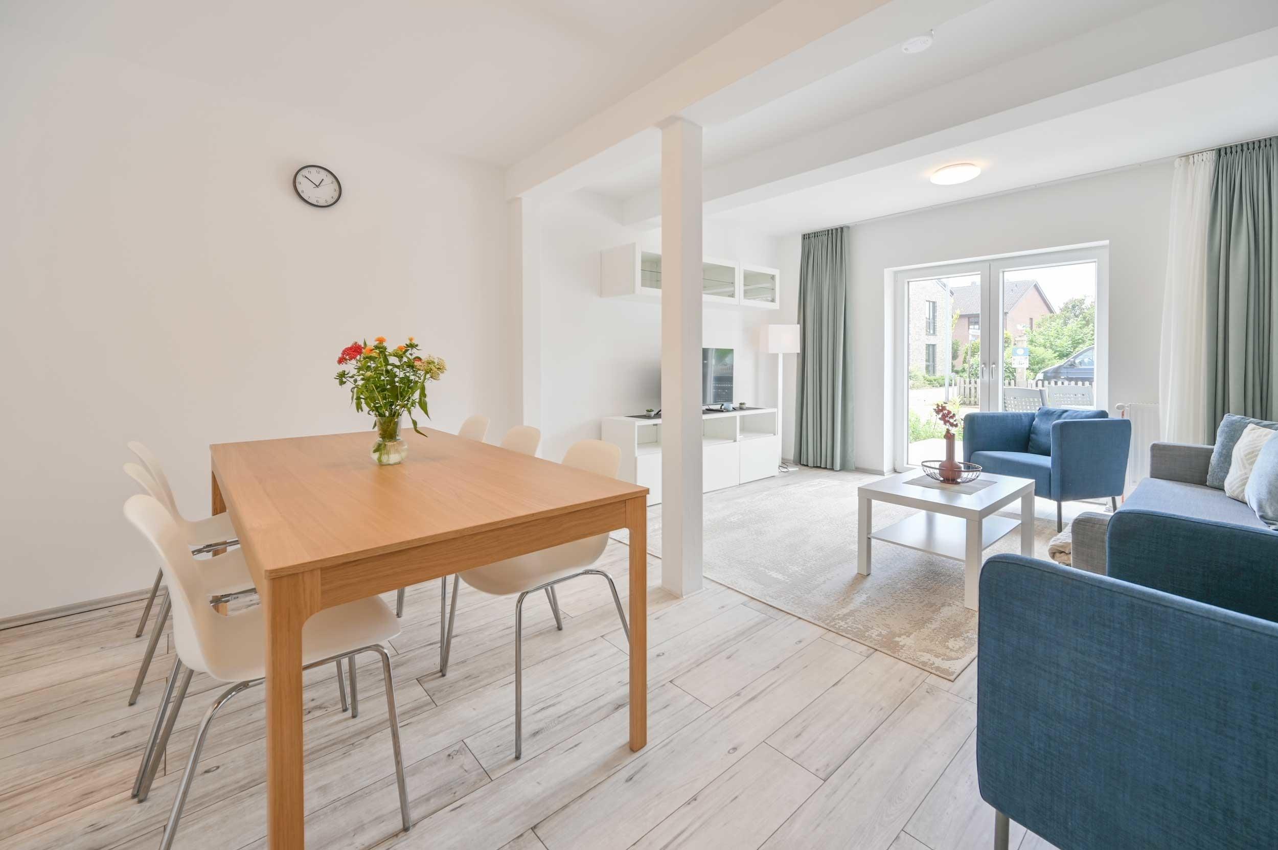 Helle 3-Zimmer-Ferienwohnung mit Terrasse und strandnaher Lage in Kellenhusen, ideal für Familien und Gruppen.