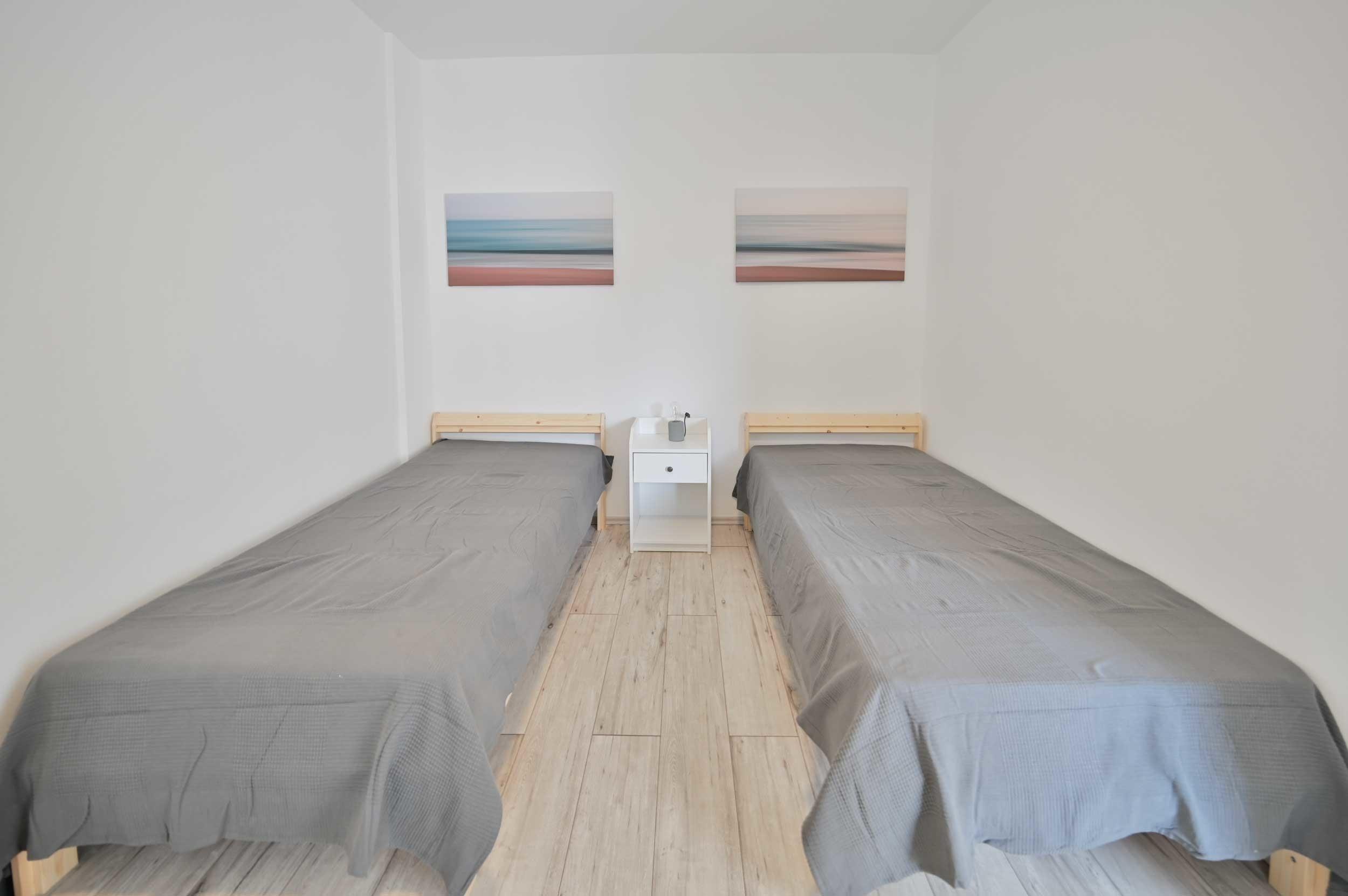 Ein weiteres Schlafzimmer ist mit zwei Einzelbetten eingerichtet und Kleiderschrank.