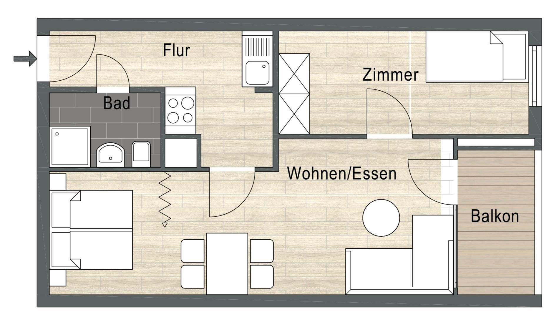 Wohnfläche 44 m²