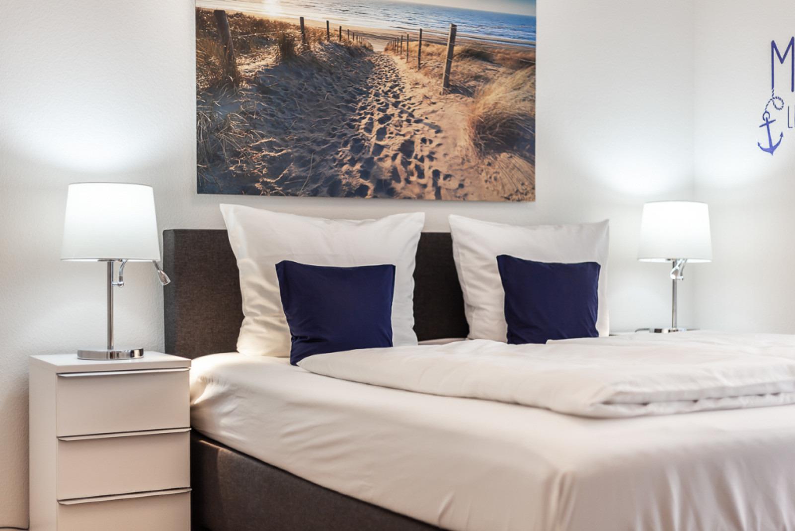 In 2 Schlafzimmern finden bis zu vier Personen Platz zum Schlafen. Das erste Schlafzimmer ist mit einem gemütlichen Boxspringbett (180x200) und einem zusätzlichen TV ausgestattet. Schlafzimmer 2 verfügt über ein weiteres Doppelbett (160x200).