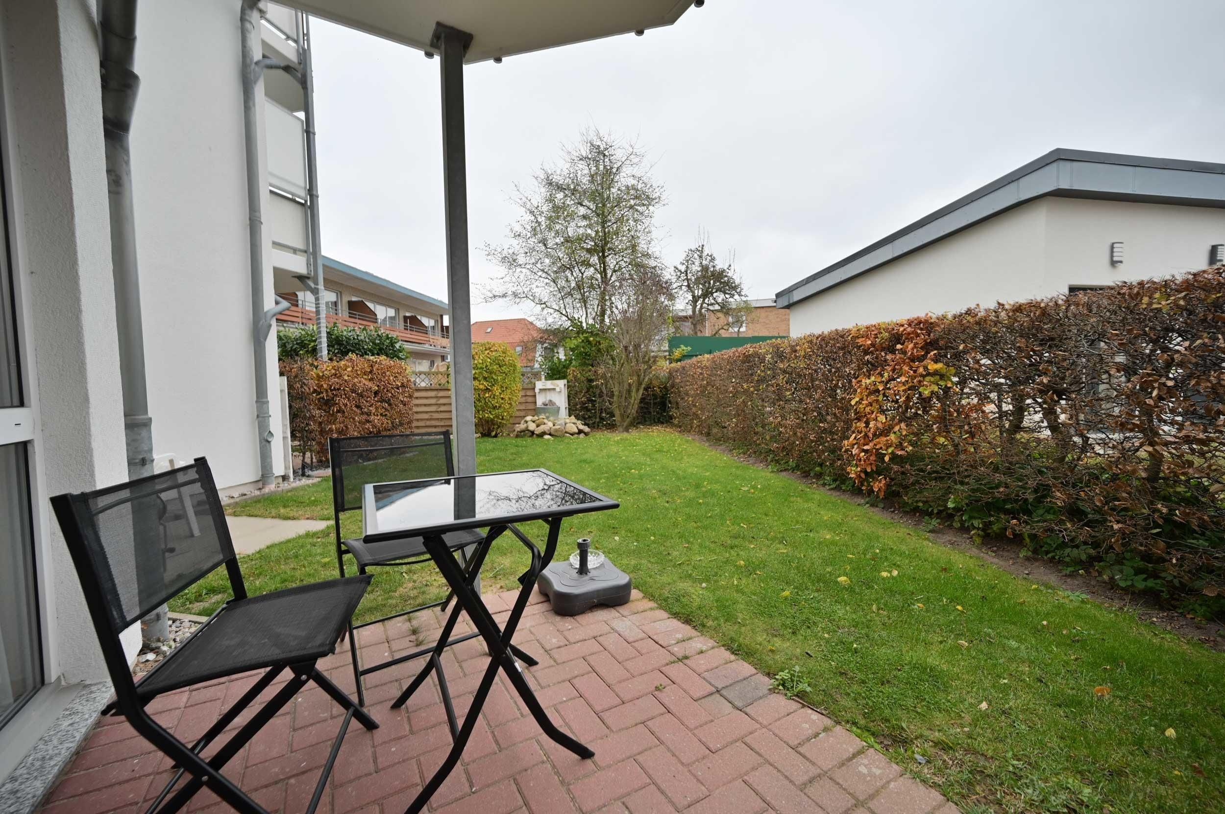 hübsche 2 Raum Ferienwohnung mit sonniger Terrasse und Garten für bis zu 4 Personen an der Ostsee.