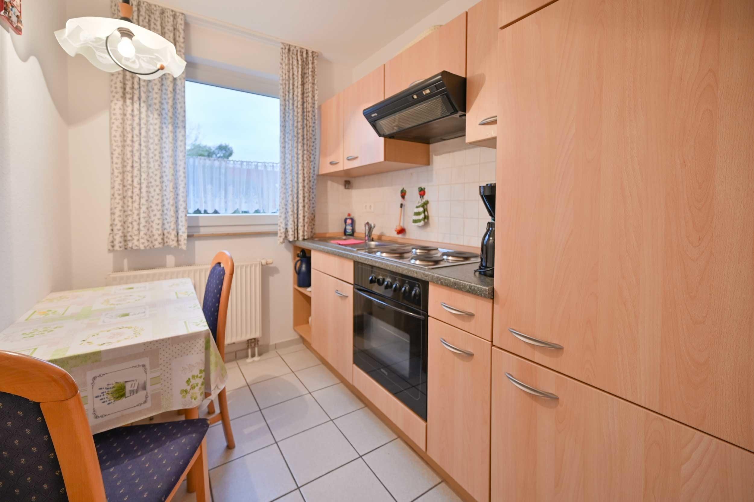 Die separate Küche ist für den Ostseeurlaub ordentlich ausgestattet.