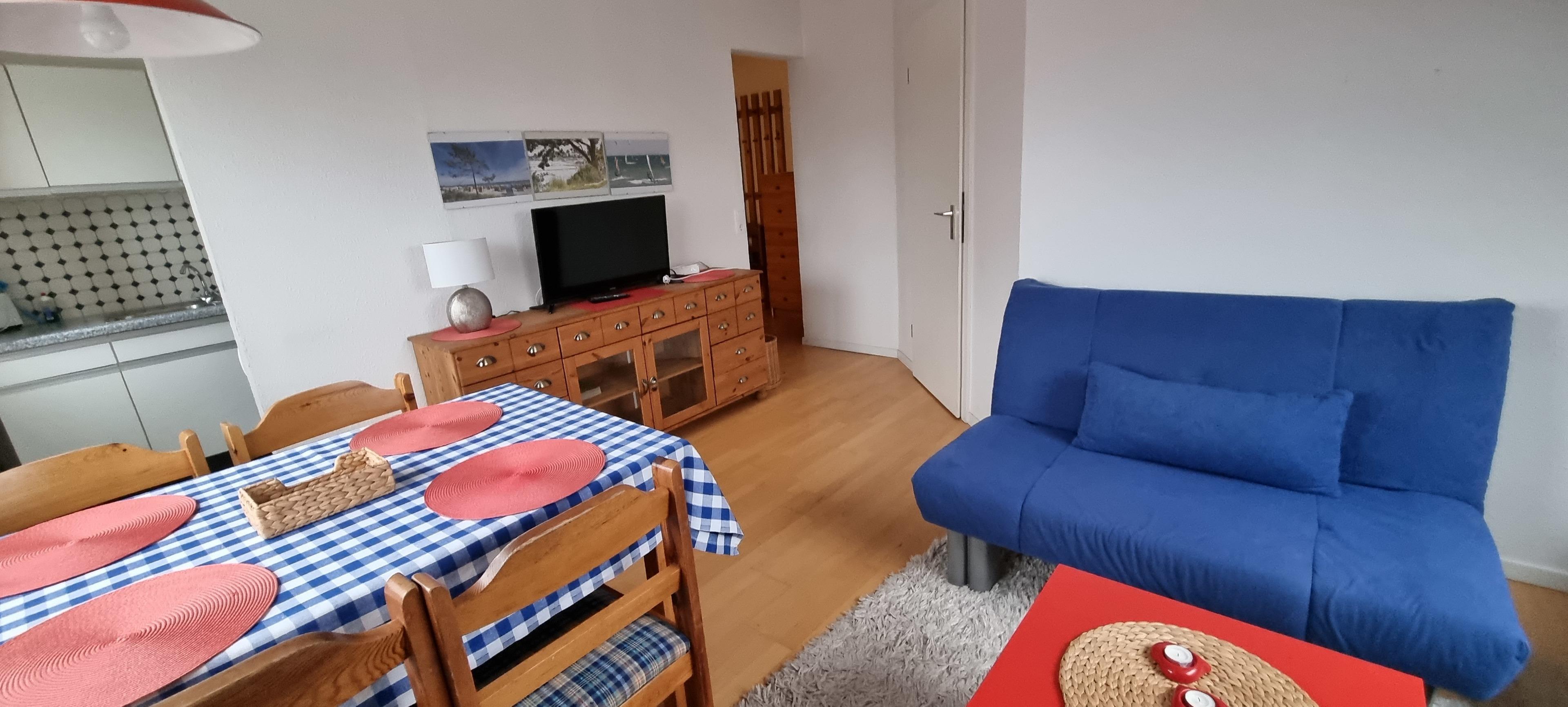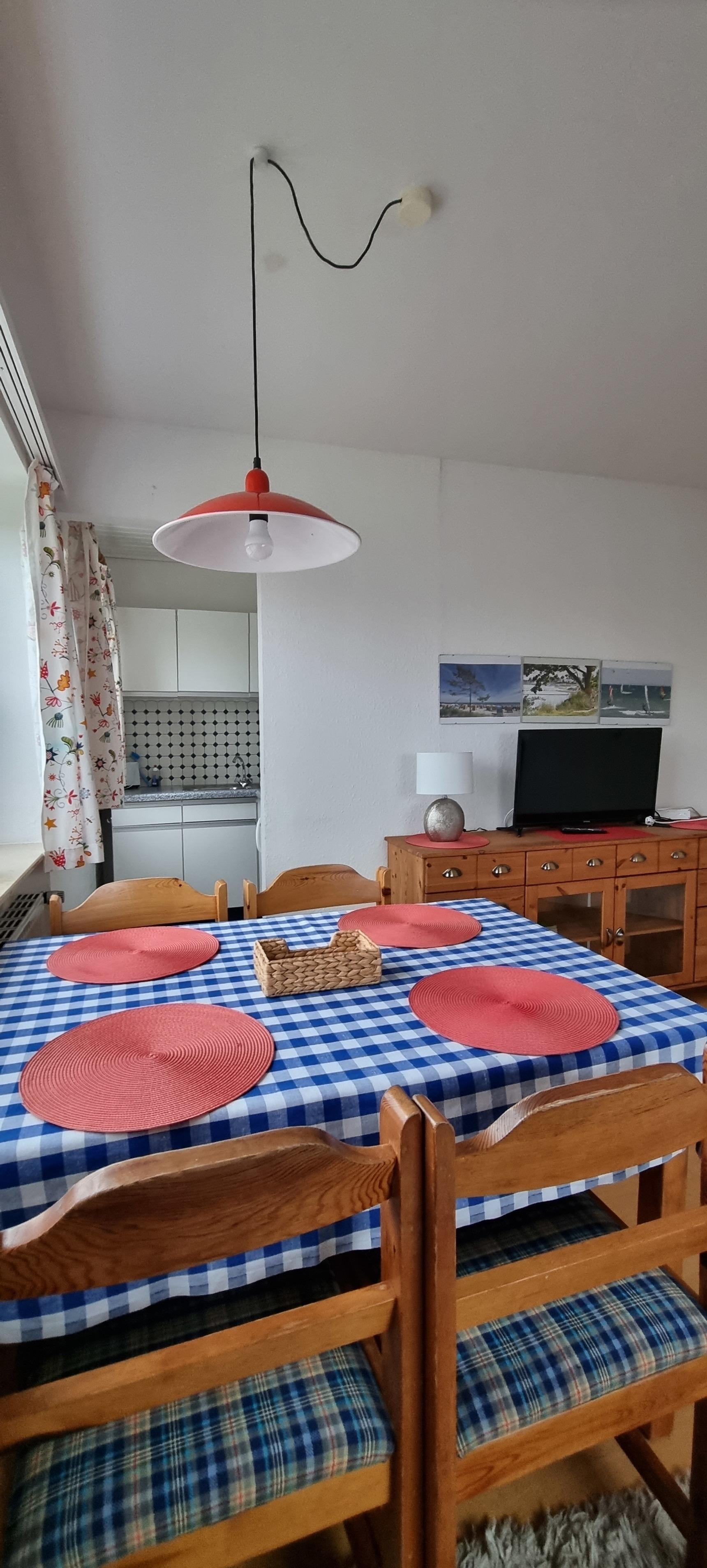 Dreizimmerwohnung (42 qm) im 1. Stock, ca. 200 m vom Hundestrand und ca. 400 m vom allgemeinen Strand entfernt, für 5 Personen und ein Kleinkind.