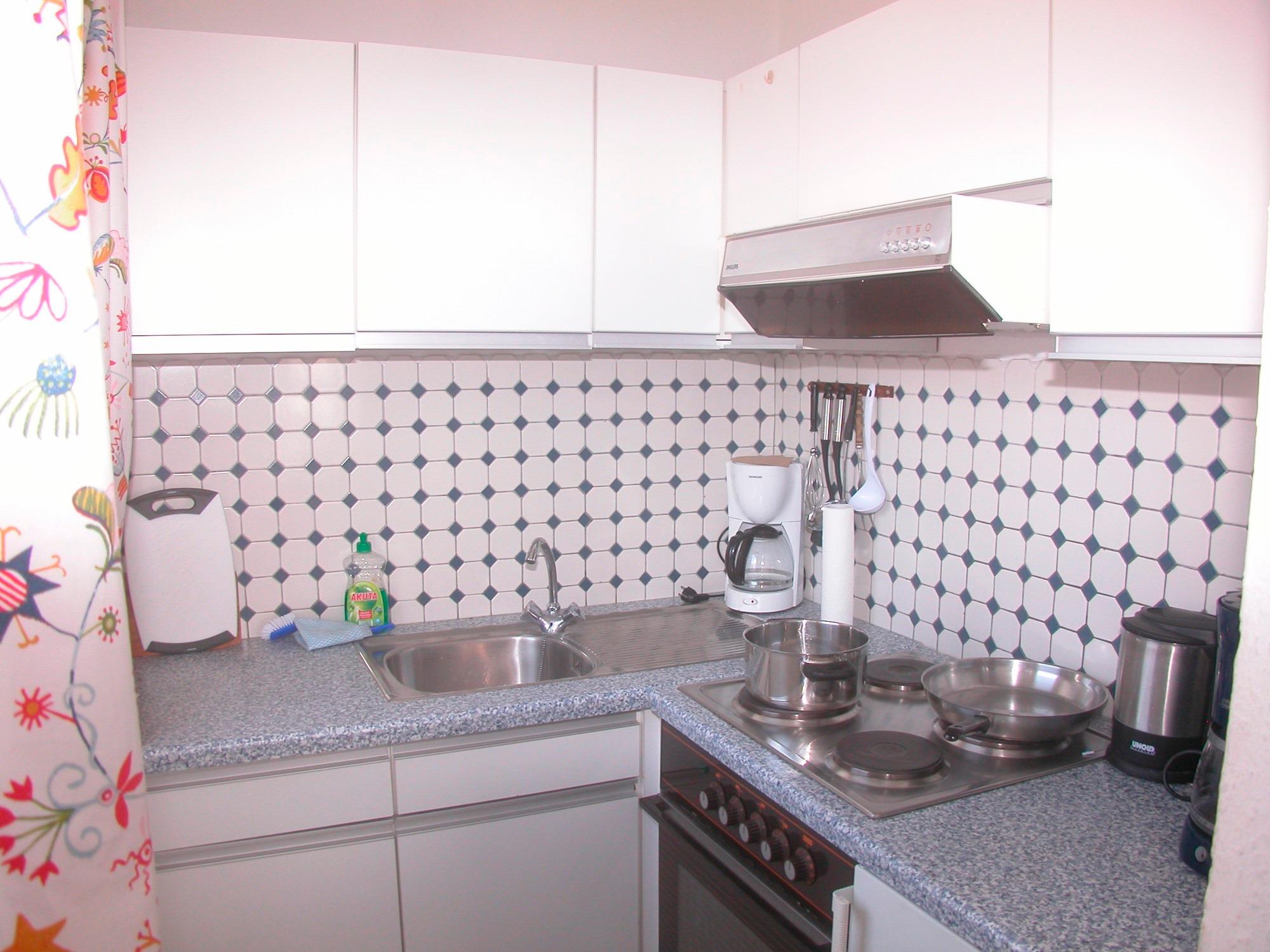 und Küche, (mit Kühlschrank, Gefrierfach und E-Herd mit Backofen). Auf Wunsch stellen wir Ihnen eine Mikrowelle,