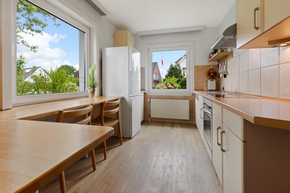 Unsere Ferienwohnung bietet des Weiteren zwei helle Duschbäder mit Fenstern und eine einladende Küche mit weiterer Sitzmöglichkeit.