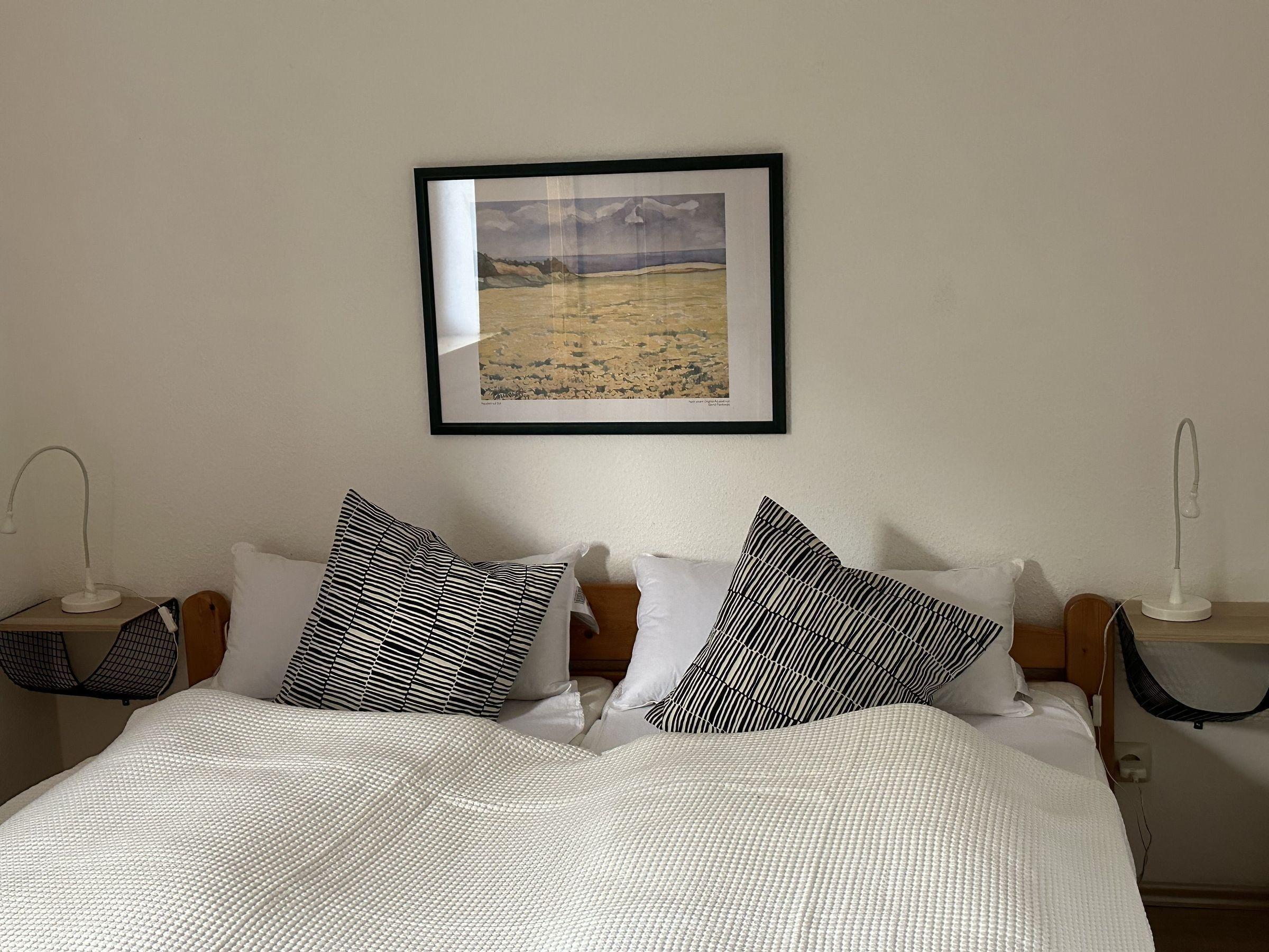 Der Schlafraum ist mit Doppelbett (2 Einzelmatratzen 90 x 200 cm) und Kleiderschrank ausgestattet.