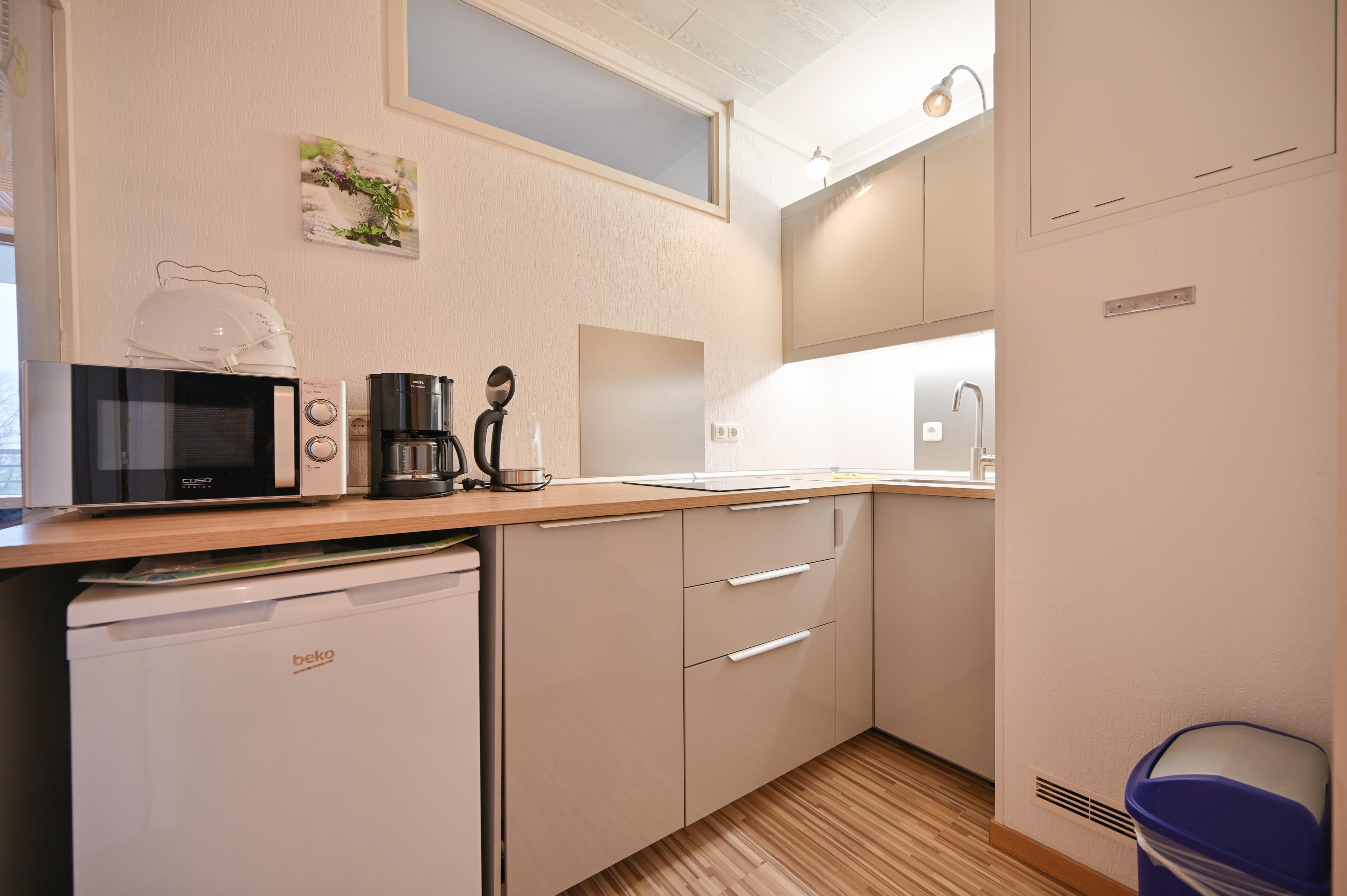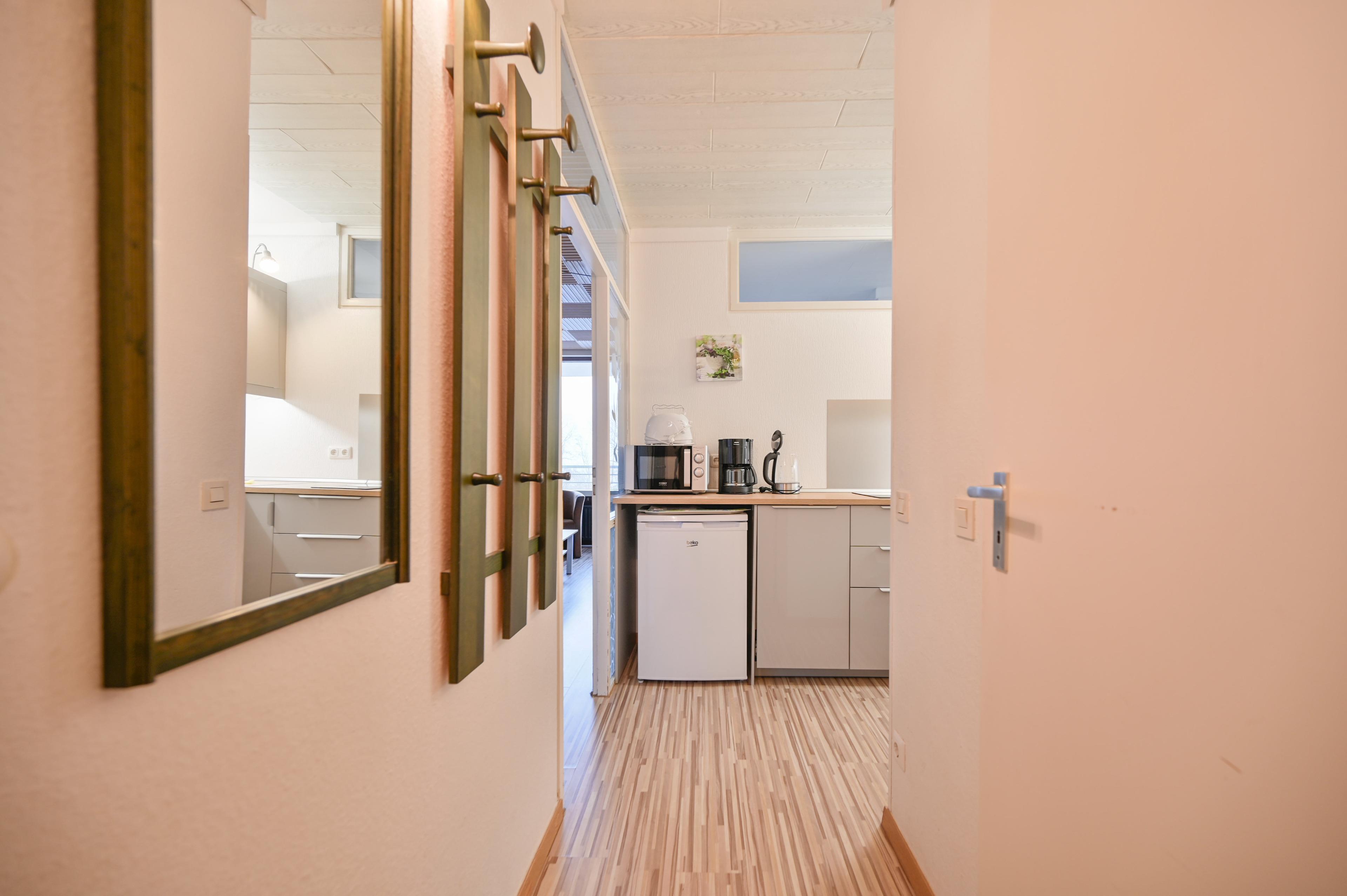 Die seperate Küche mit allen alltäglichen Geräten vervollständigt das Angebot. Außerdem gibt es ein Badezimmer mit Dusche und einen geräumigen Flur.