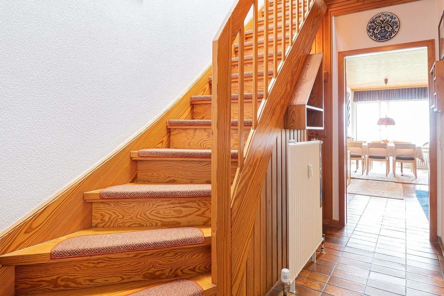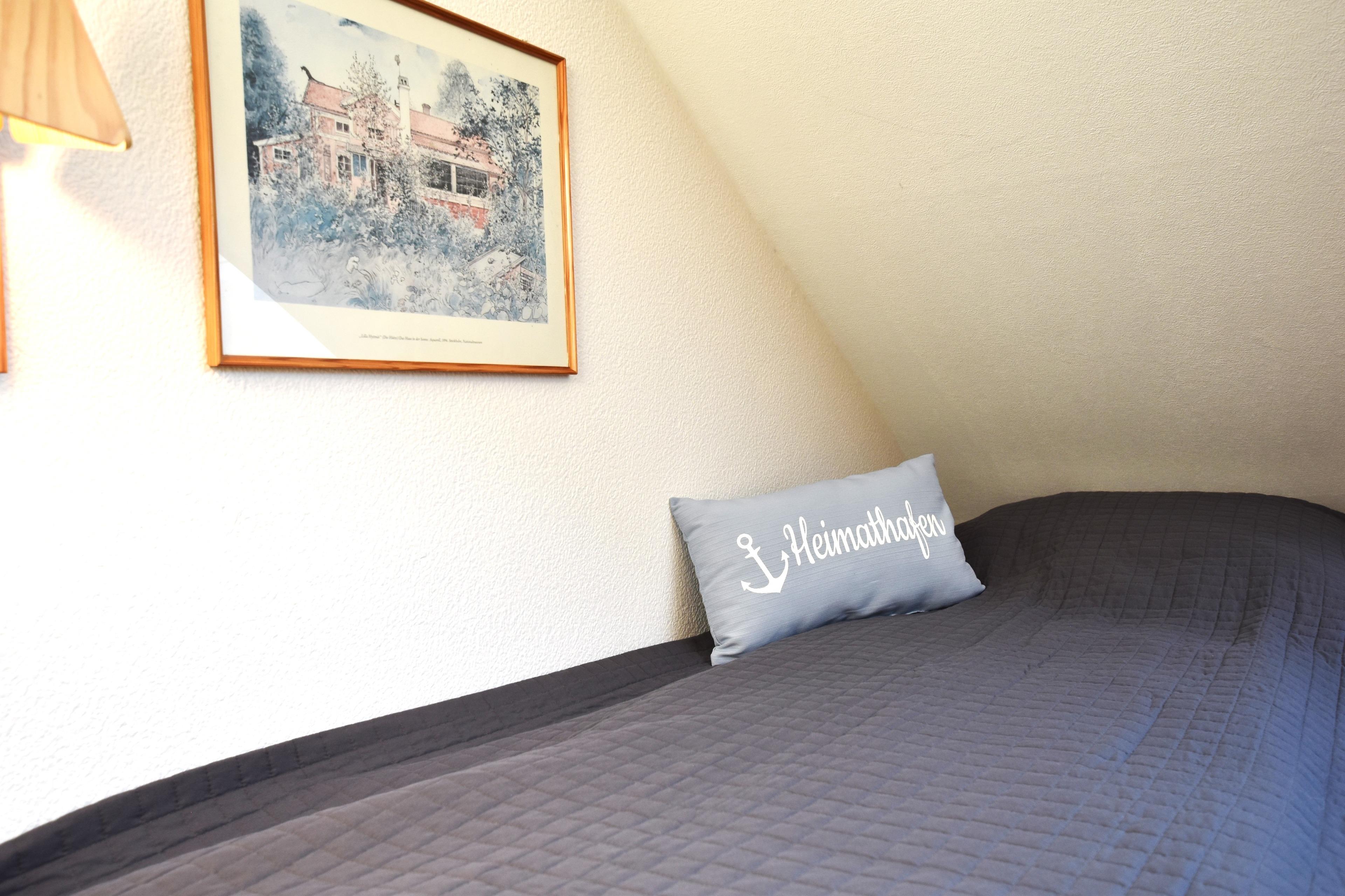 Auf derselben Etage befinden sich die platzsparende Küche mit Induktionsherd und Geschirrspüler sowie das zweckmäßige Duschbad. Zum Schlafen geht es innerhalb der Wohnung mit einer Treppe ins Dachgeschoss. Hier stehen Ihnen zwei separate Schlafzimmer zur Verfügung. Beide verfügen jeweils über 2 getrennt stehenden Betten (je 90x200 cm) und einem TV-Gerät. Hier kann man wunderbar von den Urlaubserlebnissen des Tages träumen.