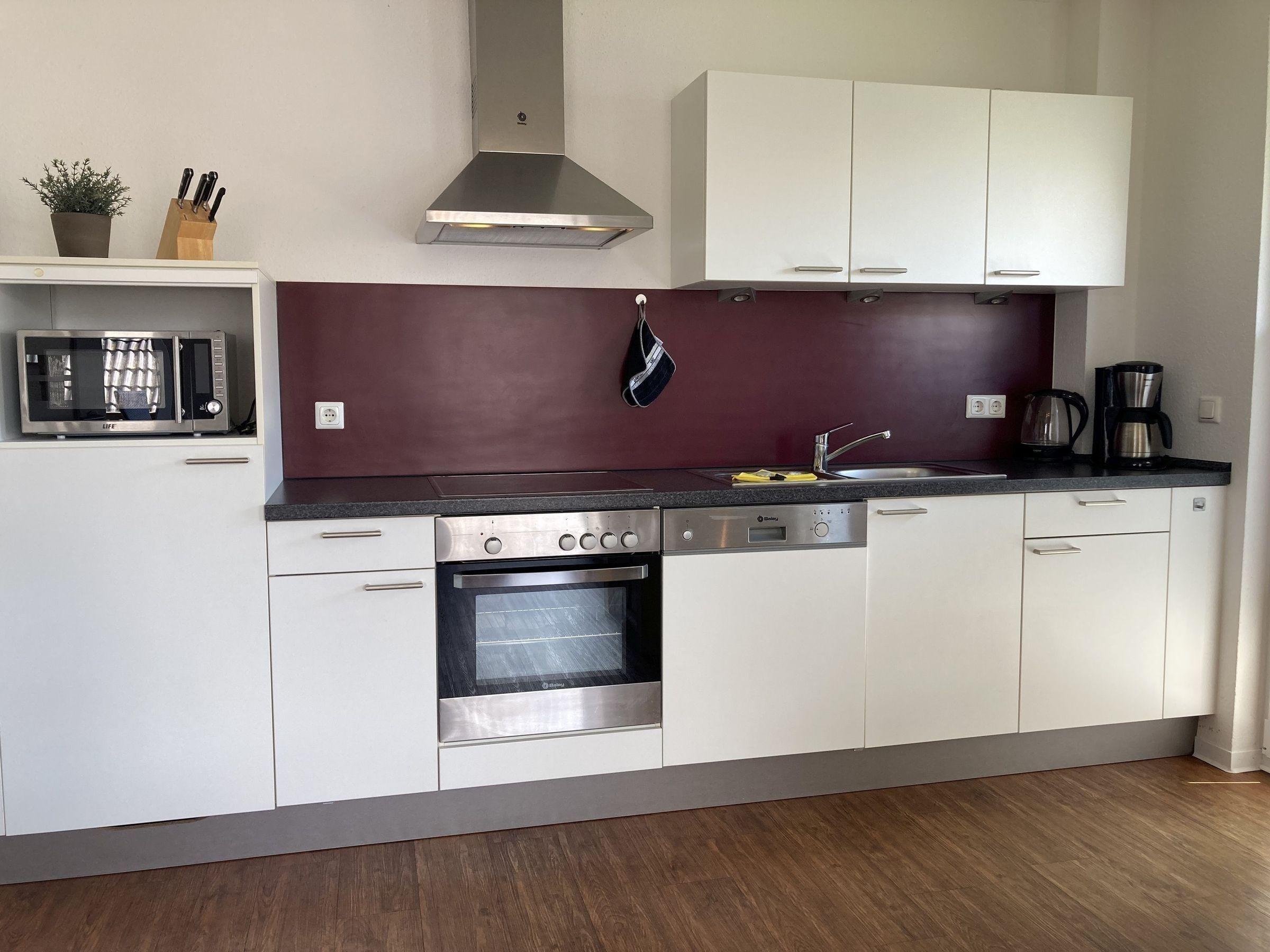 - zum Wohnzimmer offene voll ausgestattete Küche mit Geschirrspüler und Essplatz