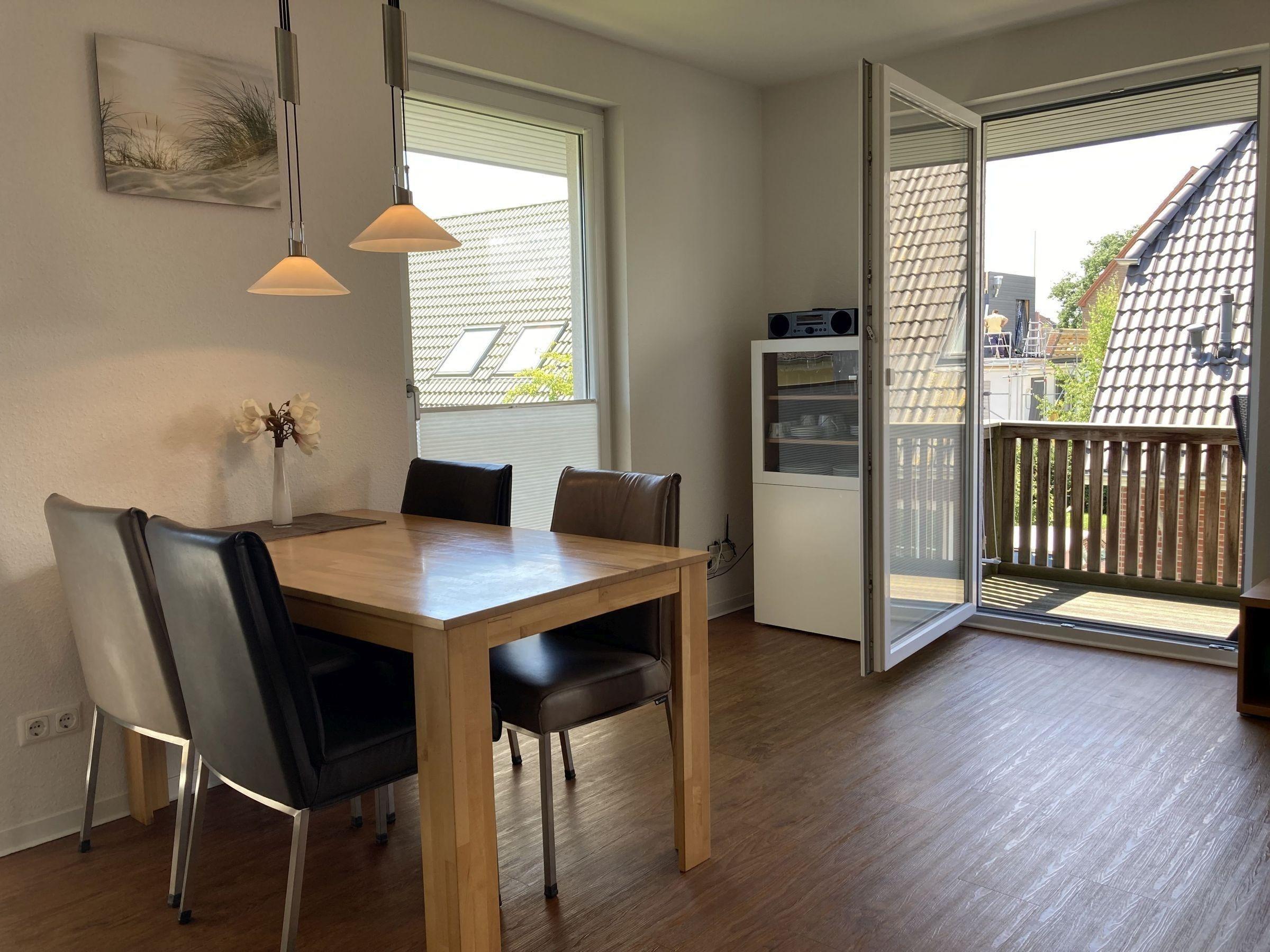 - Wohn-, Esszimmer mit Sitzecke und TV, direkter Zugang zum möbliertem Balkon