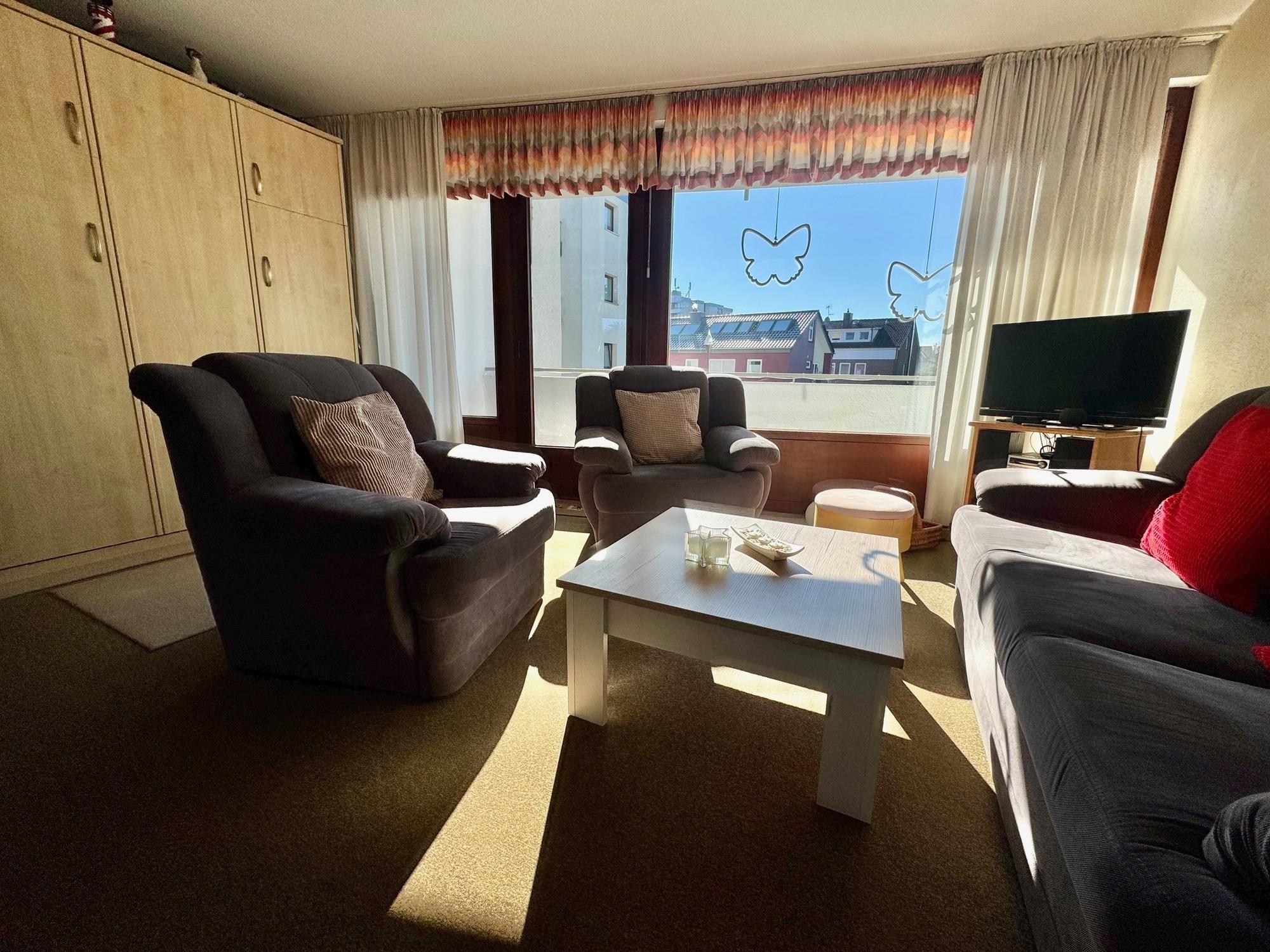 Die sonnige und gemütliche 2- Raum Ferienwohnung, die für 4 Personen Platz hat und 42m² groß ist, liegt nicht weit vom Nordstrand entfernt.