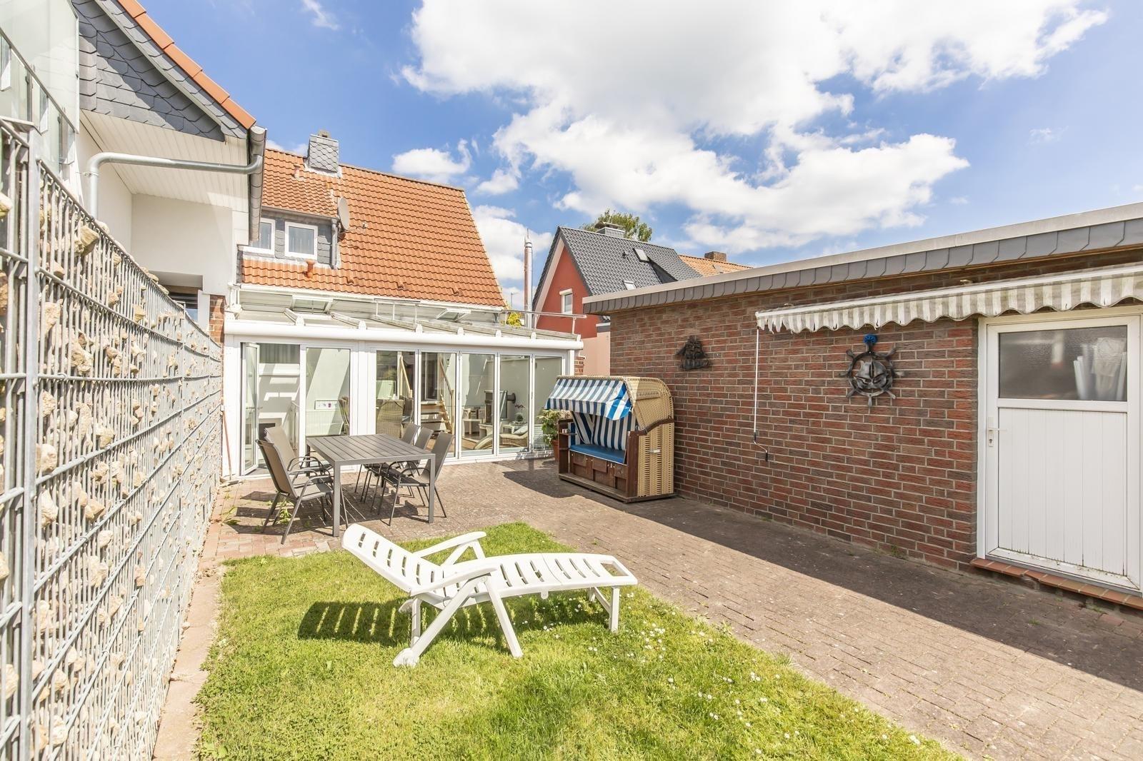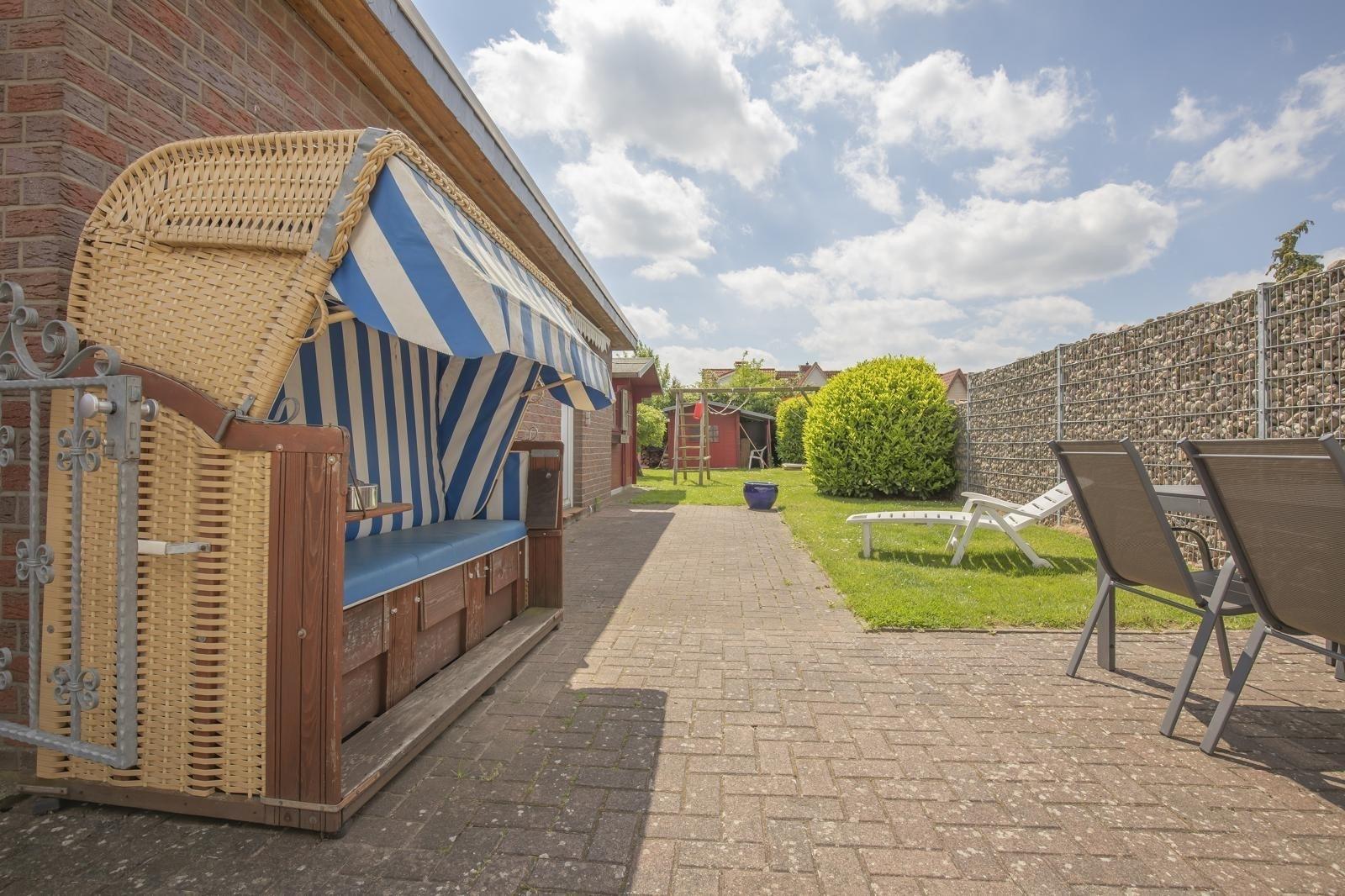 Gemütliches Ferienhaus mit Wintergarten, eingezäuntem Garten und Strandkorb in Kellenhusen, ideal für Familien und Hundebesitzer.