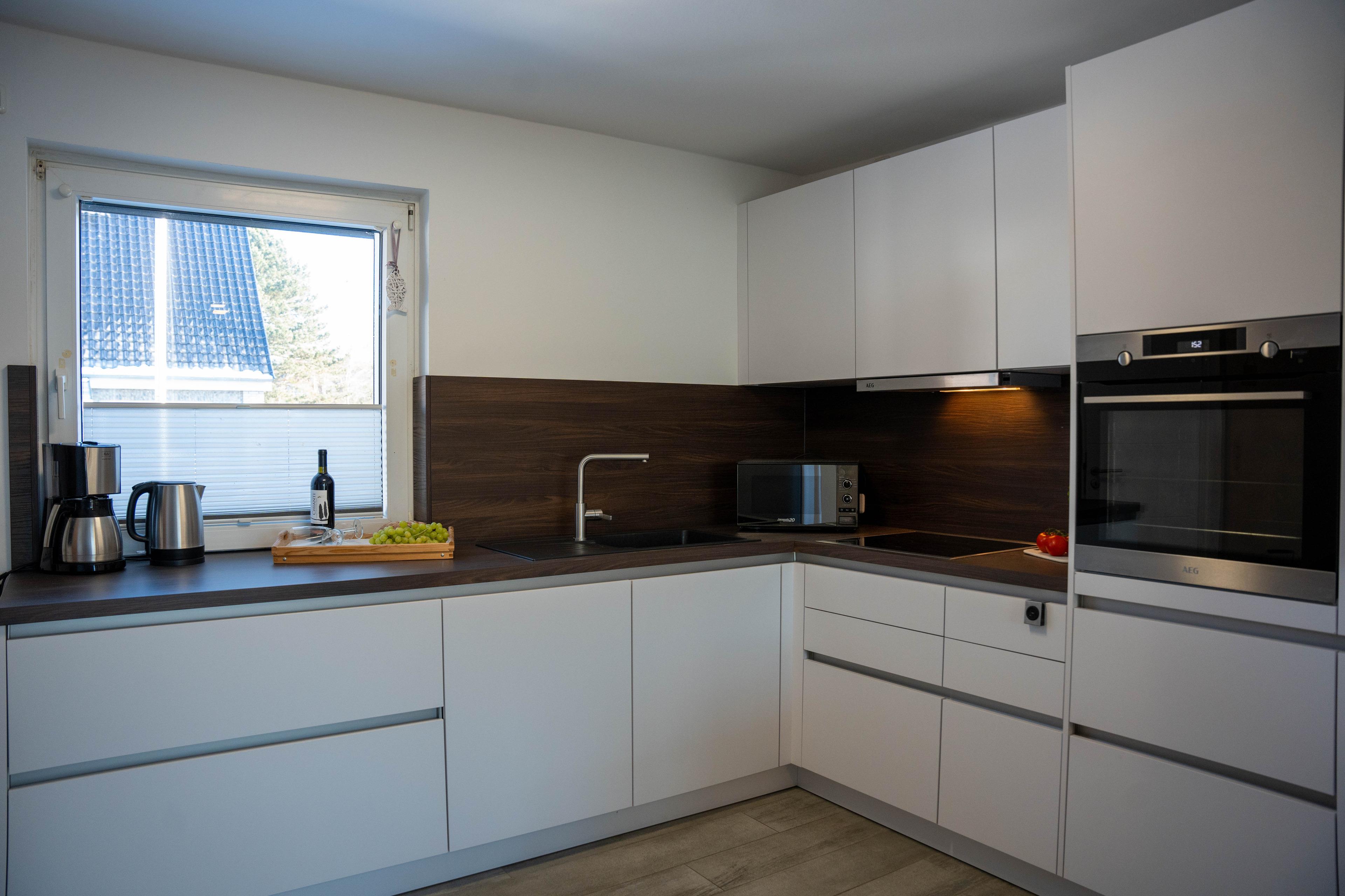 Die moderne, voll ausgestattete Küche und der Essbereich im Wintergarten bieten eine angenehme Atmosphäre zum Kochen und Essen. Der Holzofen sorgt für Gemütlichkeit, während die Schlafräume und das Wohnzimmer mit TV ausgestattet sind, was für Unterhaltung sorgt.