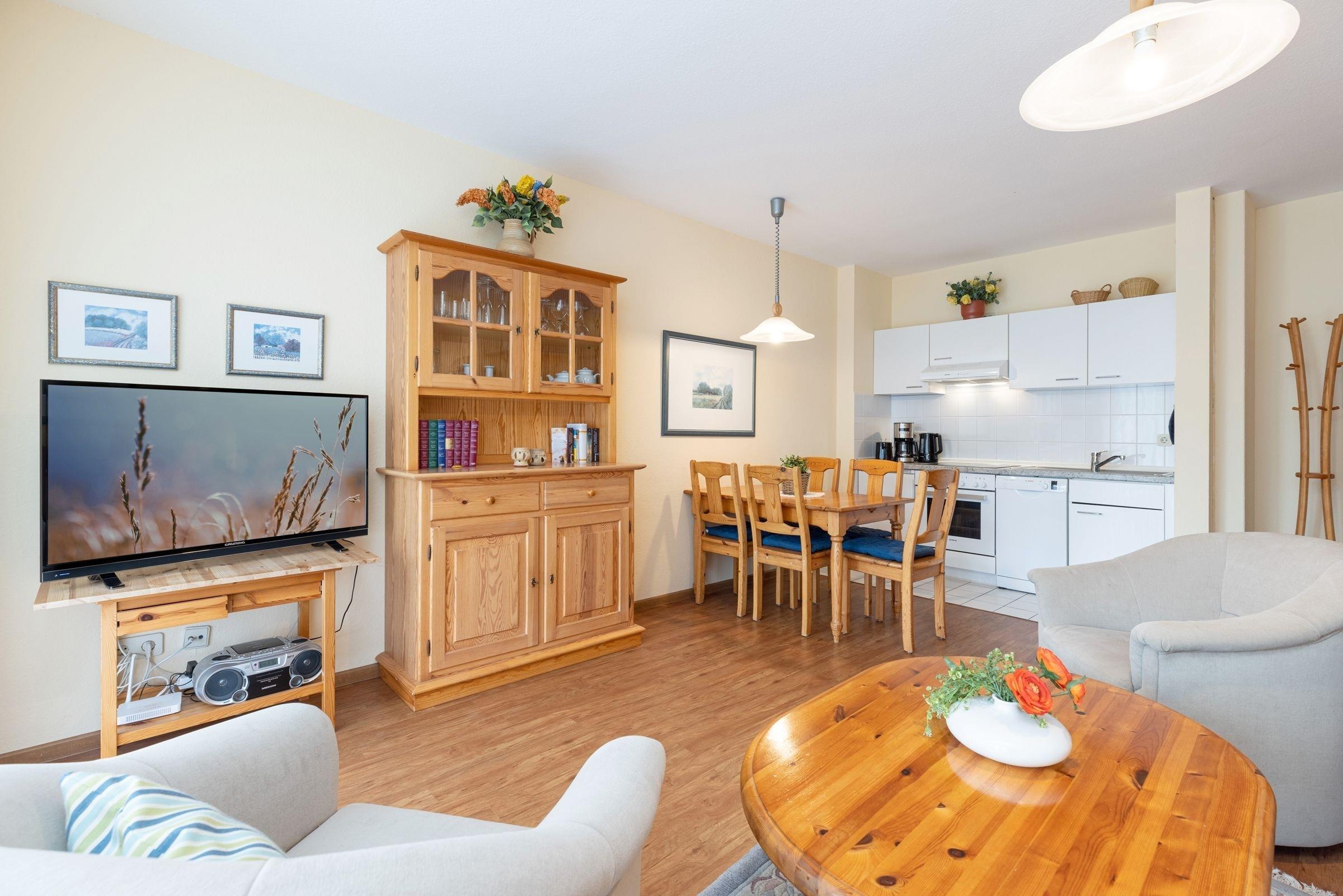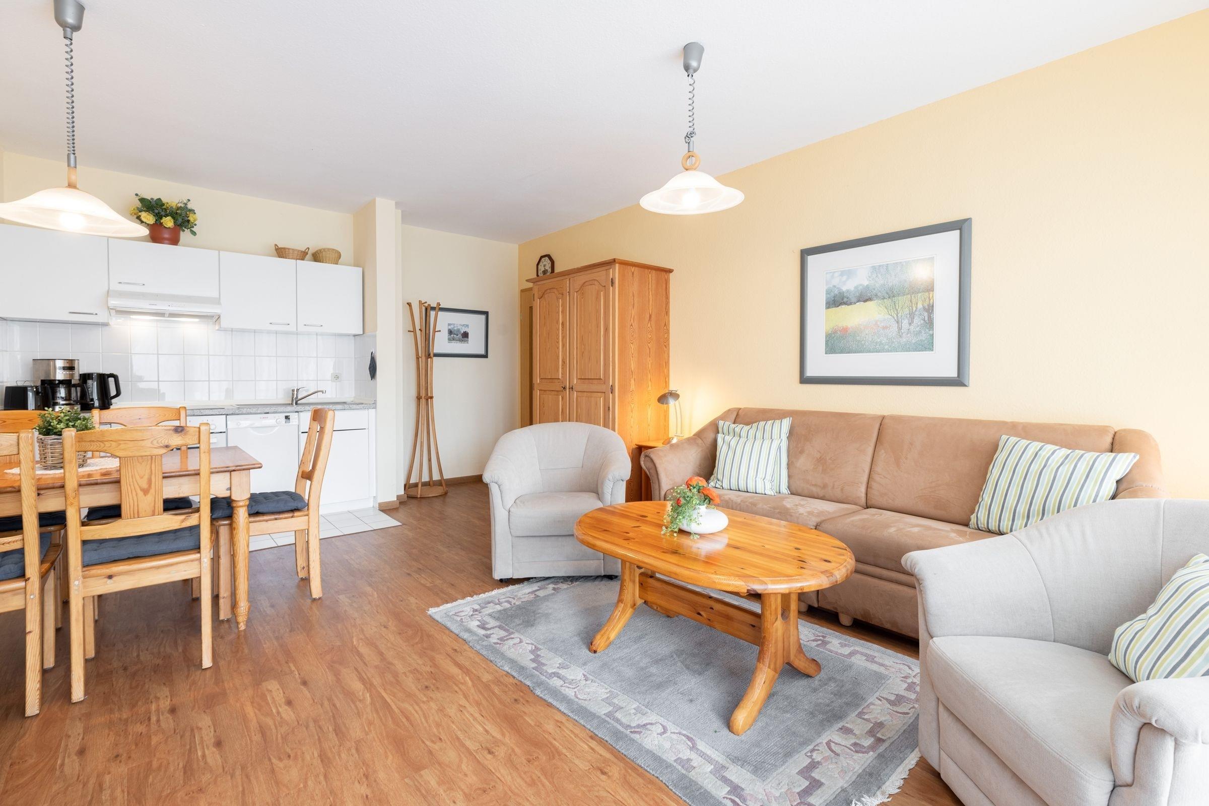 Urlaub in der 1. Reihe von Kellenhusen: Gemütliche 2-Zimmer-Ferienwohnung im Erdgeschoss mit Terrasse und einer Wohnfläche von ca. 48 m² für bis zu 4 Personen.