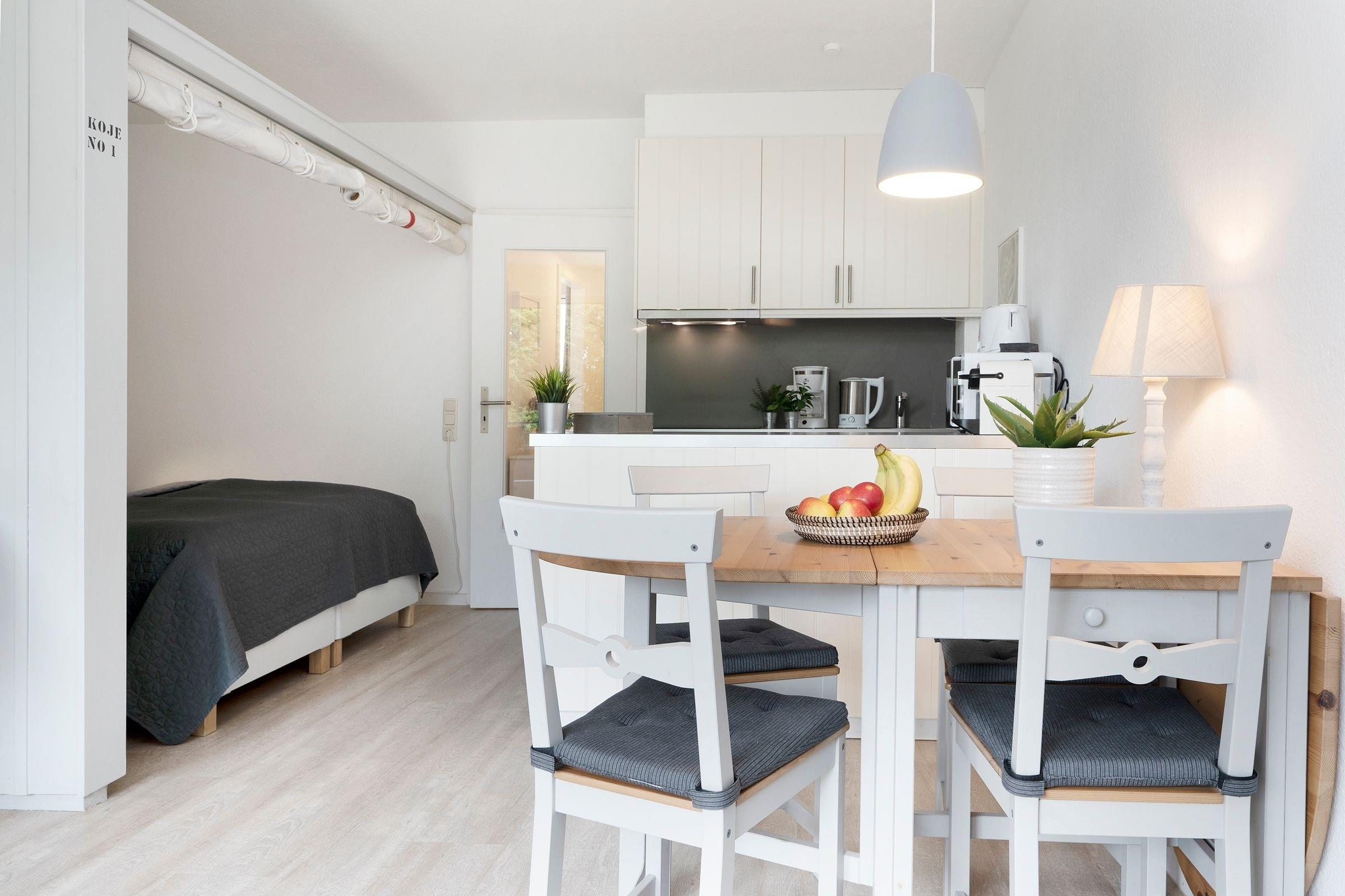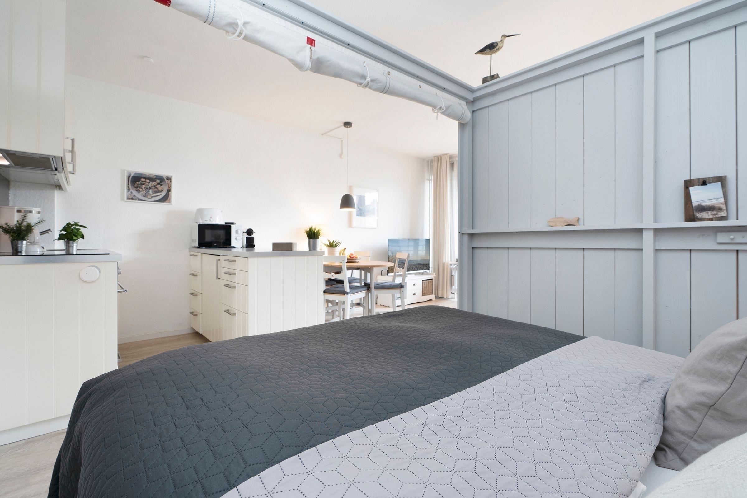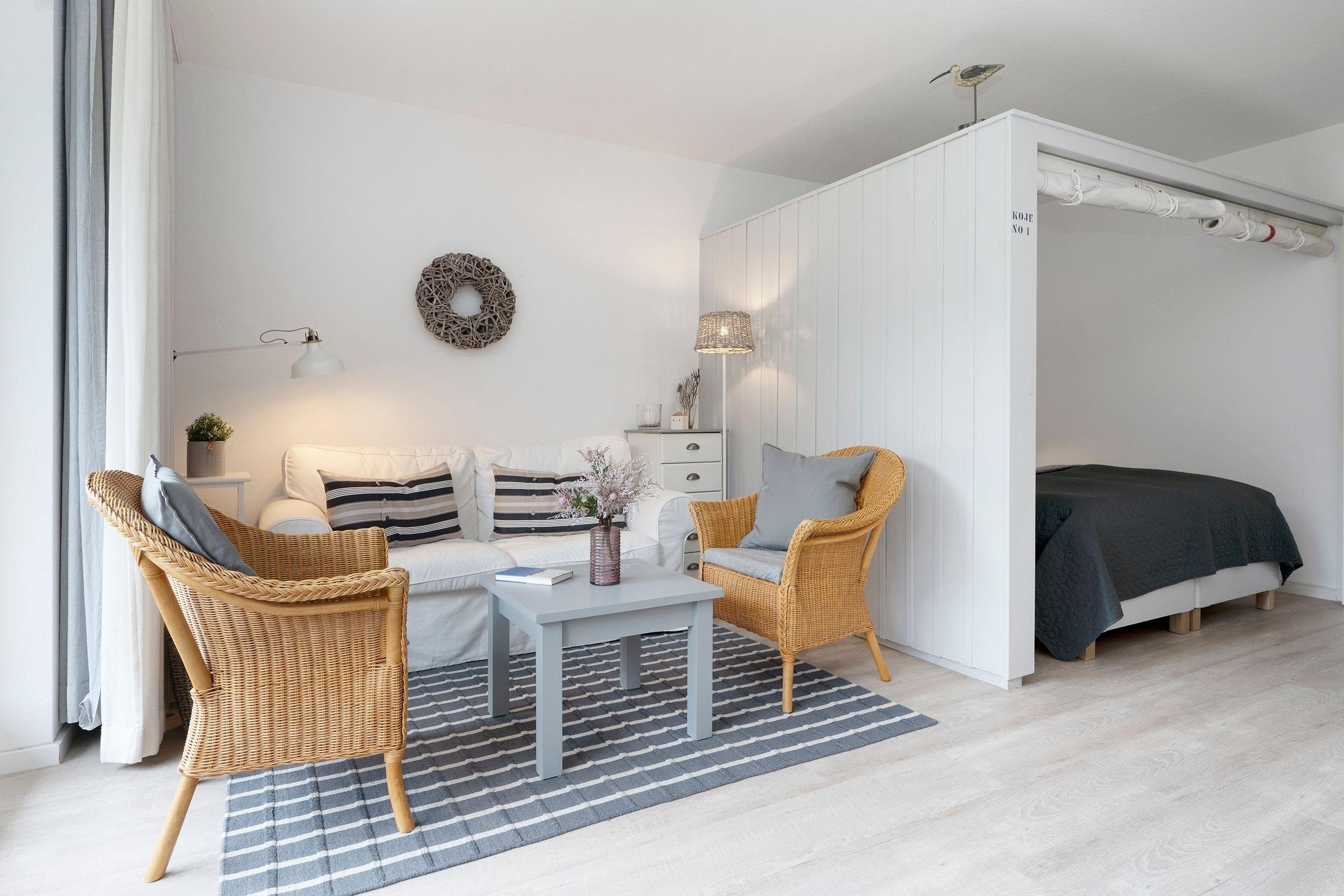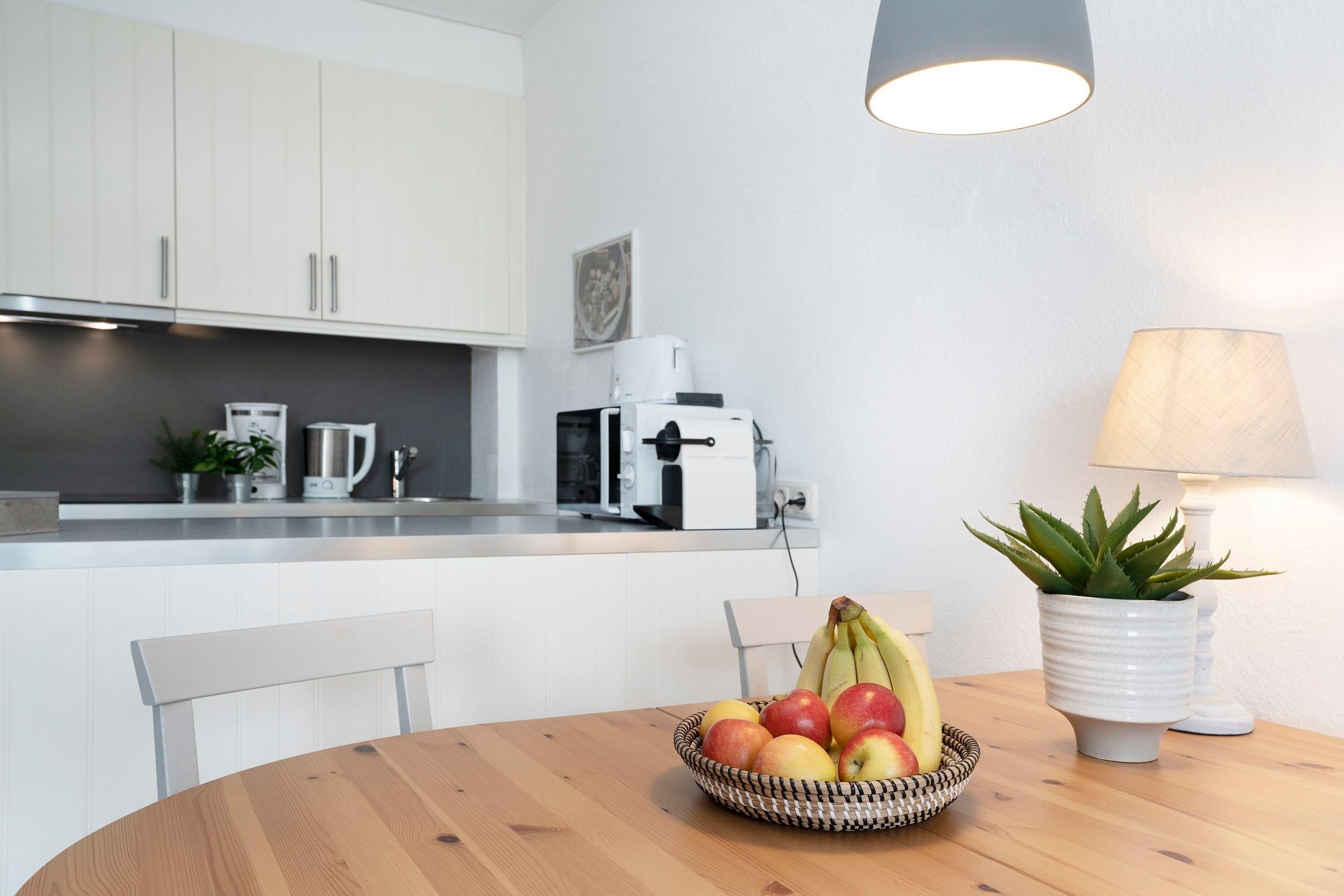 Verbringen Sie Ihre Urlaubstage in dieser strandnahen Wohnanlage. Die liebevoll gestaltete Wohnung begrüßt Sie mit einem großzügigen Wohn- und Essbereich mit gemütlicher Sofaecke, der zu geselligen Koch- und Spieleabenden einlädt. Ein Flachbild-TV sowie eine Stereoanlage sorgen für unterhaltsame Stunden. Die offen gestaltete Küche ist mit Ceranfeld, Backofen, Geschirrspüler, Kaffeemaschine, Toaster etc. voll ausgestattet. Praktisch - nach einem ereignisreichen Urlaubstag können Sie direkt in das maritime Kojenbett (160x200 cm) fallen. Auf dem sonnigen Balkon mit Südausrichtung und schönem Gartenblick lädt zum Verweilen ein - hier können Sie die Sonne bis in die Abendstunden hinein genießen. Das separate Schlafzimmer ist mit 2 bequemen Einzelbetten (je ca. 90x200 cm) ausgestattet. Das helle, moderne Duschbad mit WC rundet das Angebot ab und sorgt für einen frischen Start in Ihre Urlaubstage.
