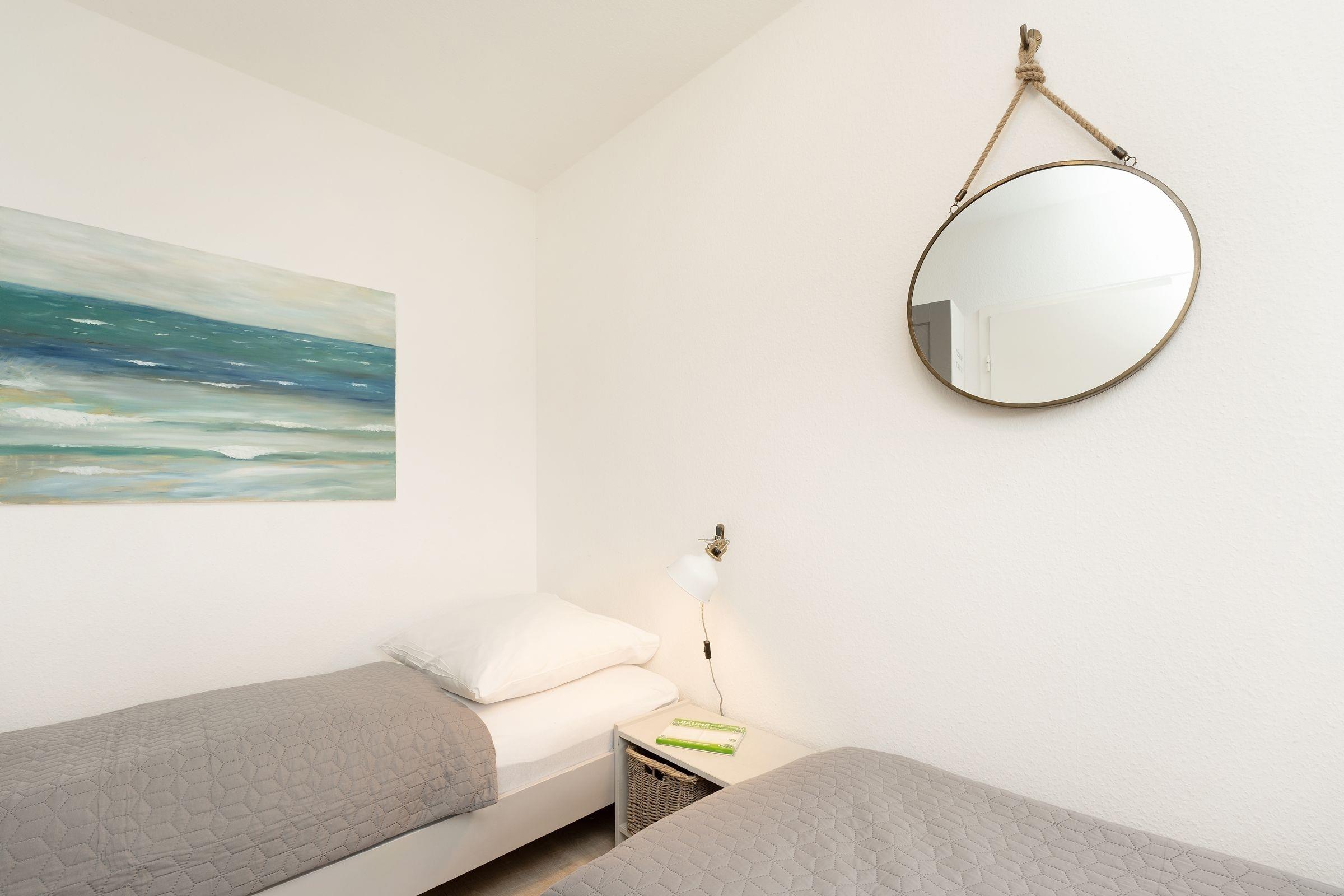 Schlafzimmer: 2 Einzelbetten (2x 90x200 cm), Kleiderschrank, Verdunkelungsmöglichkeit