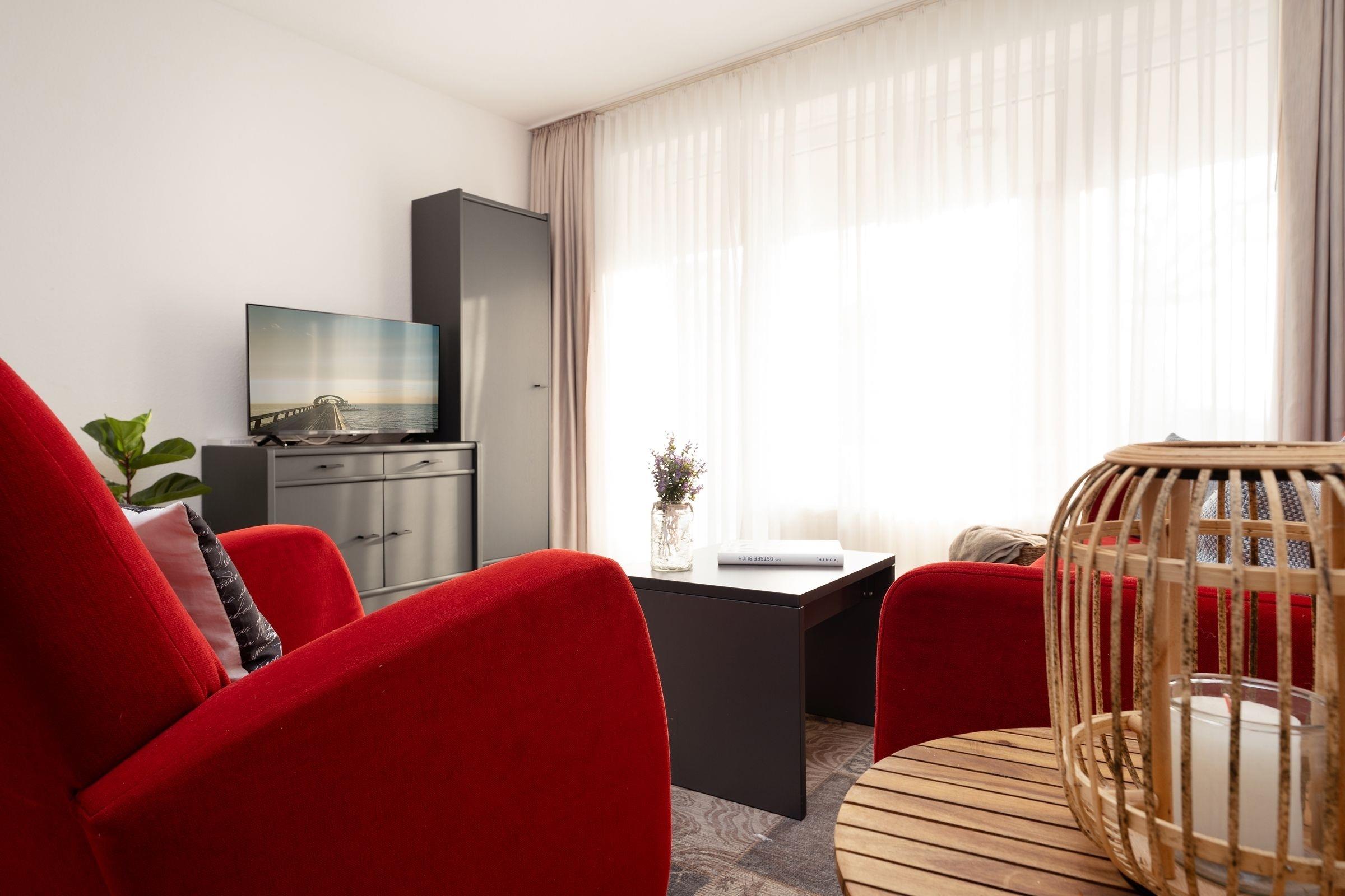 Ankommen, auspacken und wohlfühlen ... die Ferienwohnung Ostseeoase heißt Sie herzlich willkommen. Sie befindet sich im gepflegten Ferien-Wohnpark Kaiserhof – nur rund 100 Meter vom Ostseestrand entfernt. Insgesamt bietet die helle Wohnung mit der charmanten Einrichtung viel Stauraum. Das Wohnzimmer ist mit einer schicken Couch ausgestattet, die sich für die Nacht in ein bequemes Doppelbett verwandeln lässt. Direkt daneben befindet sich der Zugang zur möblierten Terrasse. Hier können Sie geschützt und gemütlich zusammensitzen und Ihre Auszeit genießen – und vielleicht den Abend bei einem Glas Wein ausklingen lassen. Die moderne Küche im zeitlosen Grau bietet sämtliche Annehmlichkeiten, die ein Hobby-Koch im Urlaub braucht. Genießen Sie Ihre Menüs anschließen in der schicken Ess-Ecke. Für die Nacht steht Ihnen ein Doppelbett (2x 90x200 cm) im geräumigen Schlafzimmer zur Verfügung. Wie wäre es hier noch mit einem guten Buch vor dem Einschlafen? Das Duschbad ist hell gefliest und hat Tageslicht.