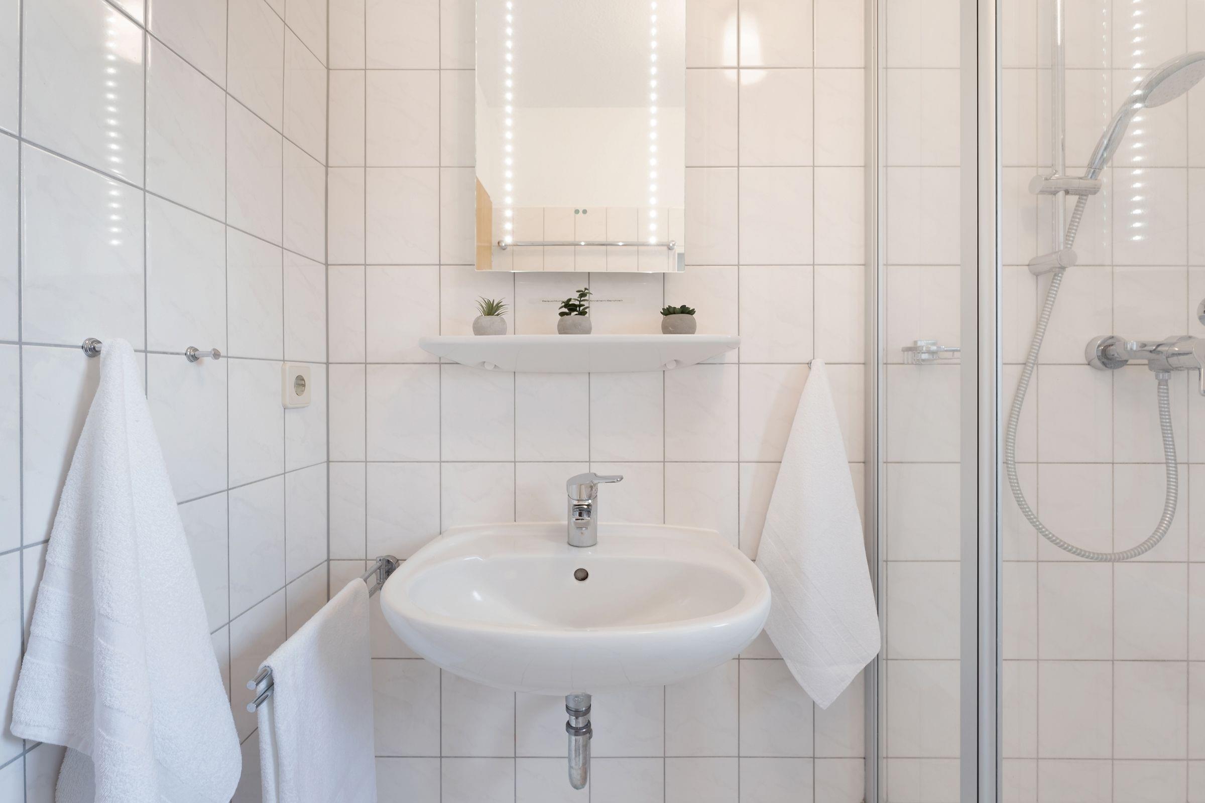 Ein PKW-Außenstellplatz ist für Sie reserviert. Außerdem stehen Ihnen ein Fahrradabstellraum sowie Waschmaschine und Trockner (Münzautomaten) im Keller von Haus 18 zur Verfügung. WLAN ist ebenfalls vorhanden.