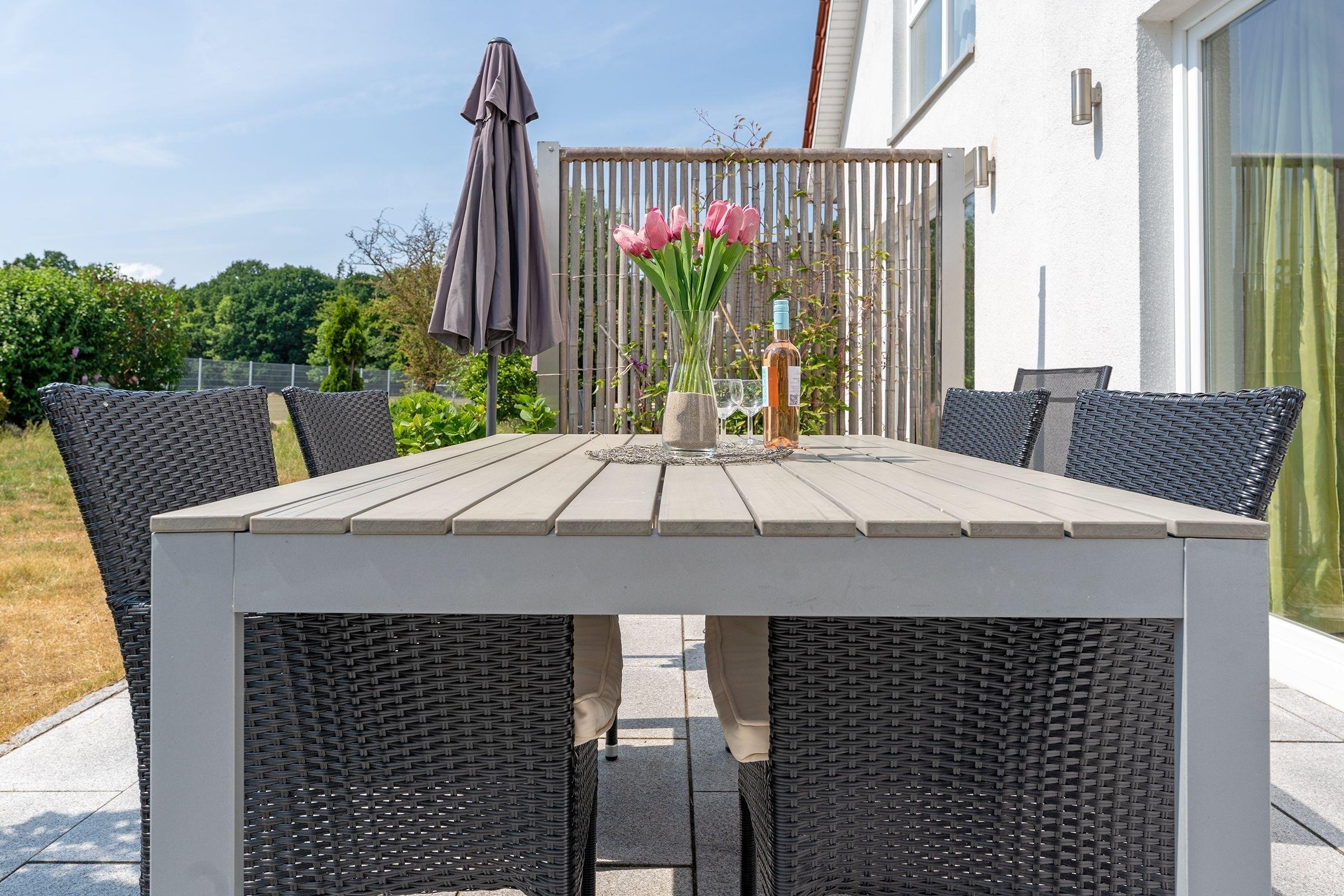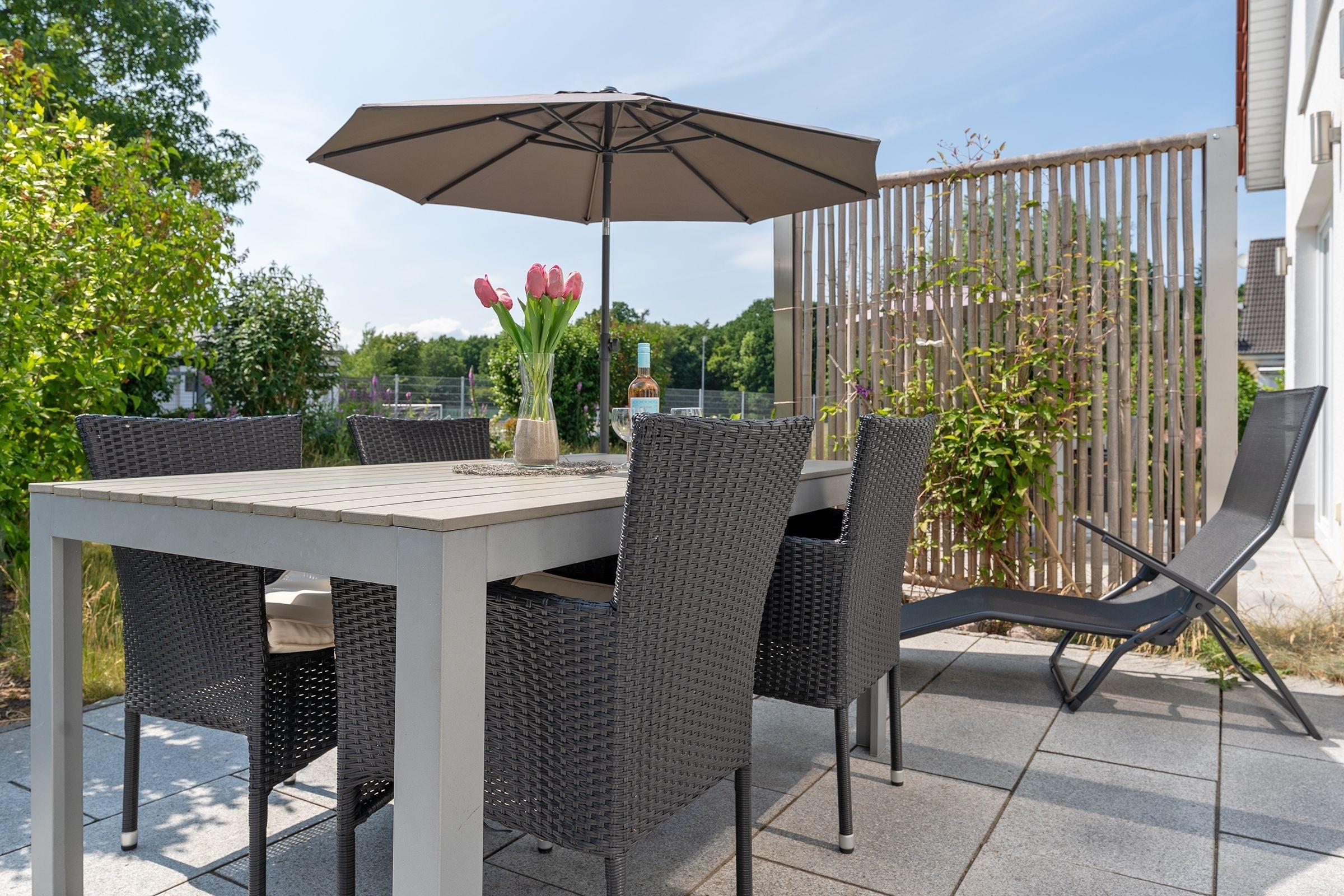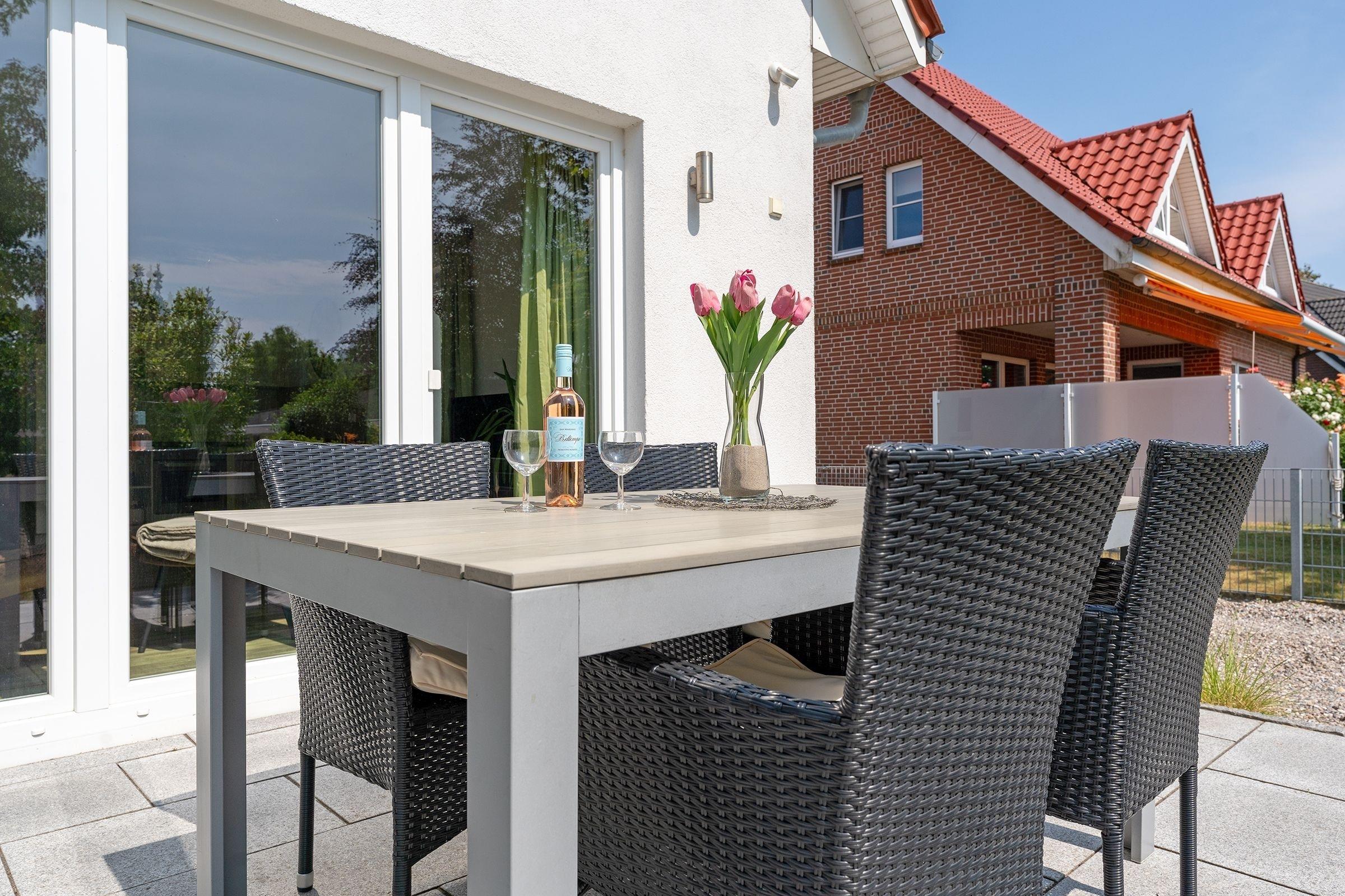 Gemütliche Doppelhaushälfte mit Terrasse und Garten in Kellenhusen nahe Strand und Wald für erholsamen Familienurlaub.