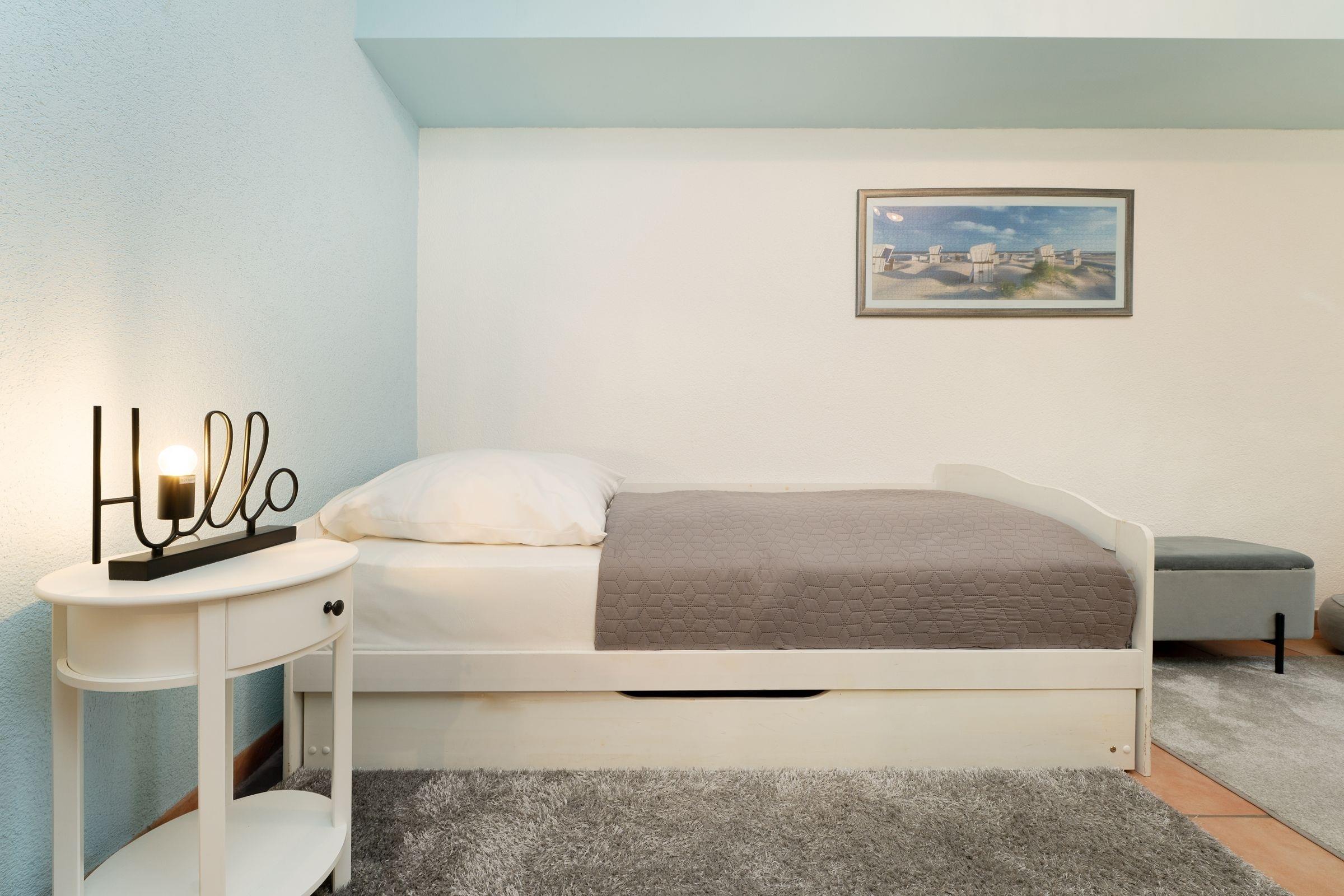 Ein PKW-Außenstellplatz ist direkt am Haus für Sie reserviert. Für Ihre Fahrräder sind Fahrradständer im Außenbereich vorgesehen. Eine Münz-Waschmaschine und ein Münz-Trockner befinden sich im Haus. Der WLAN-Anschluss ist inklusive. Für die kleinen Gäste stehen ein Kinderbett und ein Kinderhochstuhl bereit.