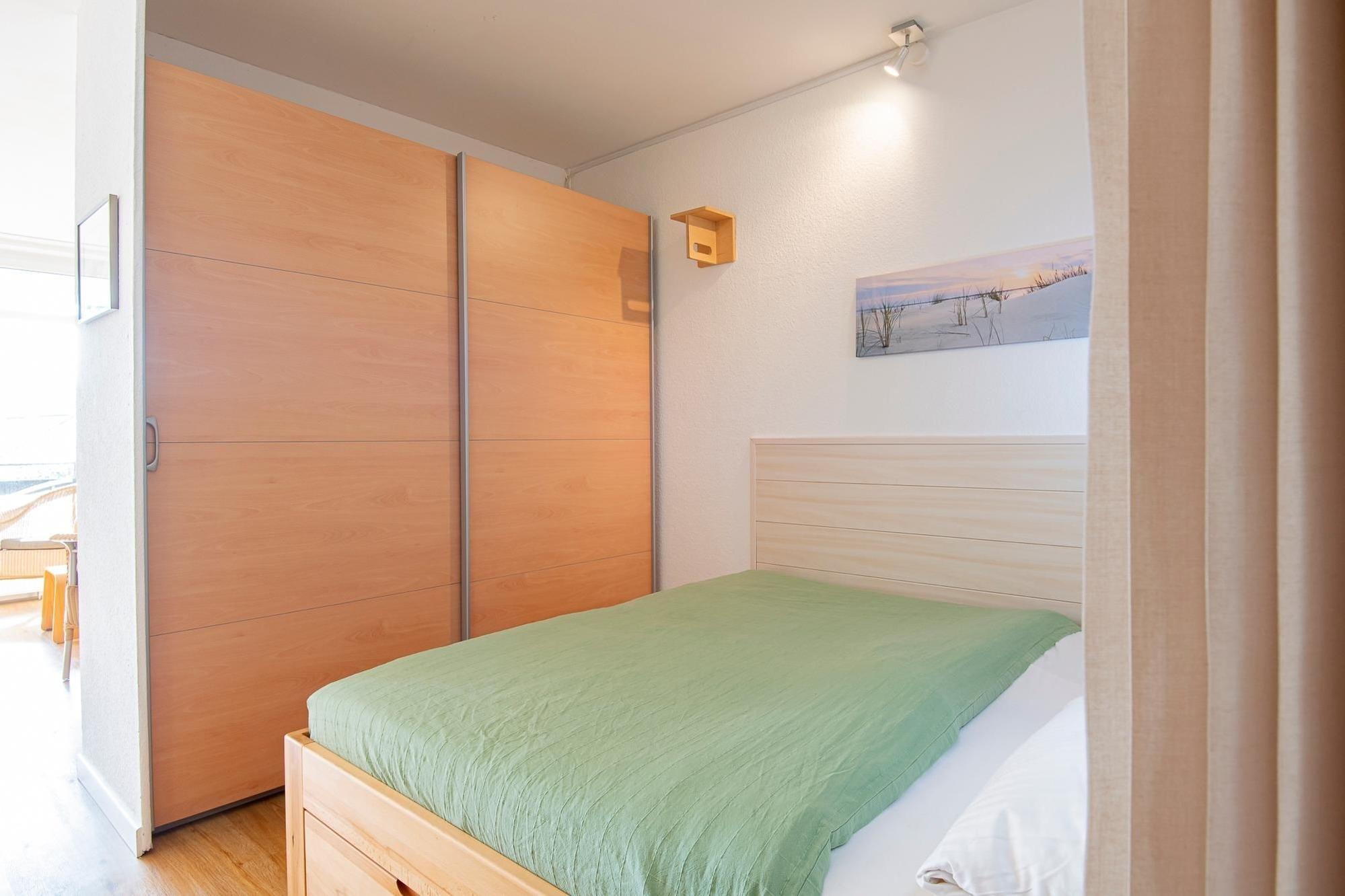 Wohnzimmer: 1 Doppelbett (ca. 160x200 cm), Kleiderschrank, Verdunkelungsmöglichkeit