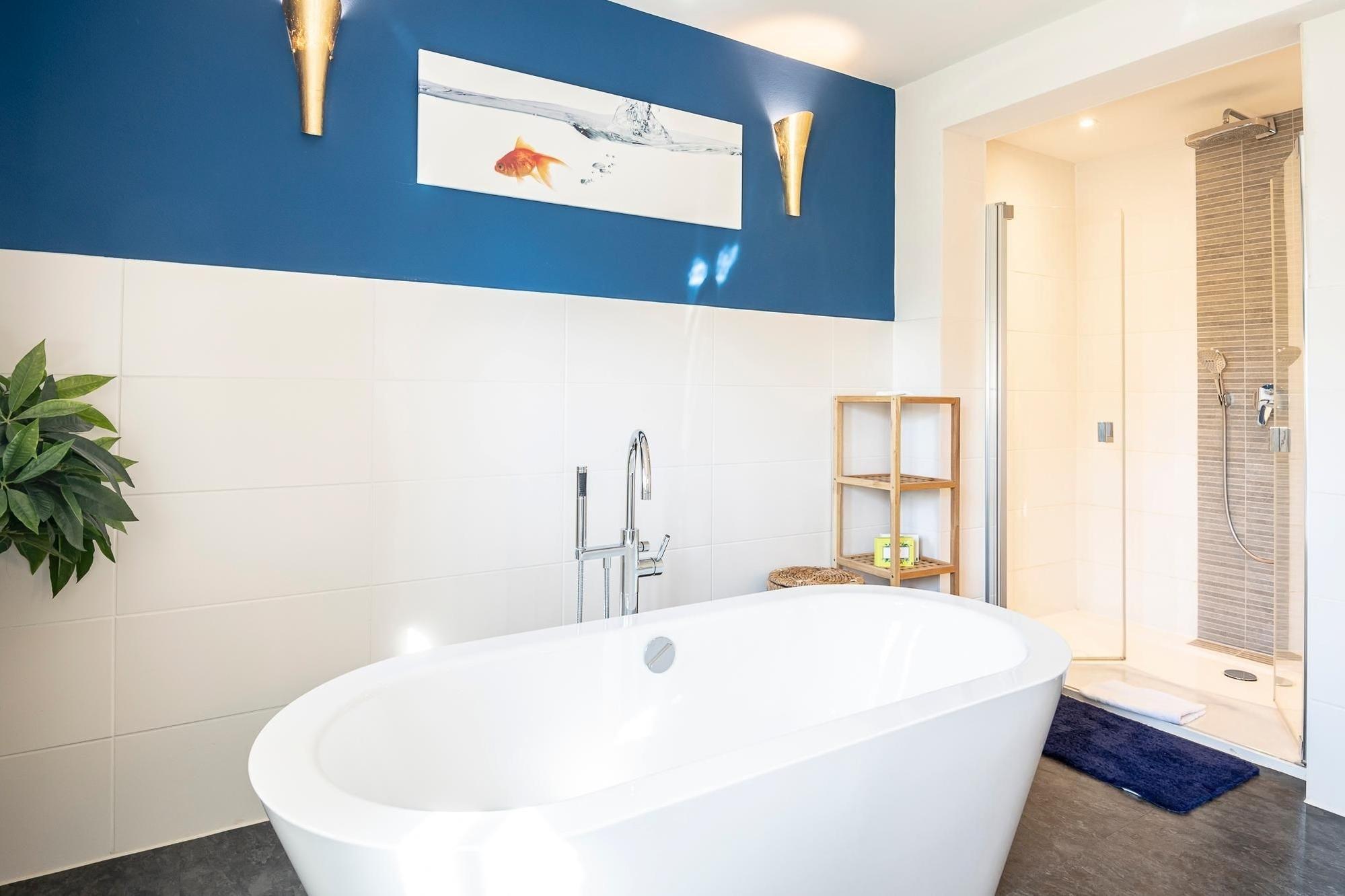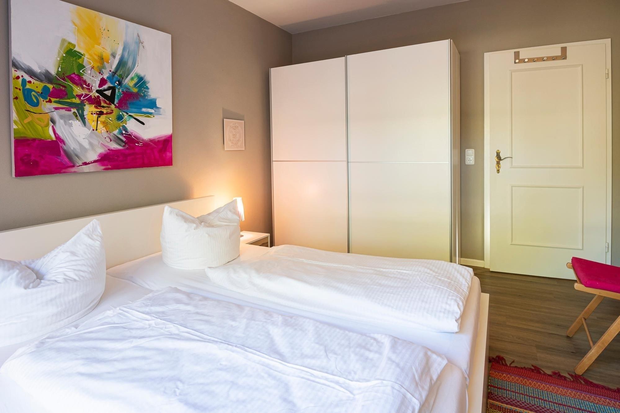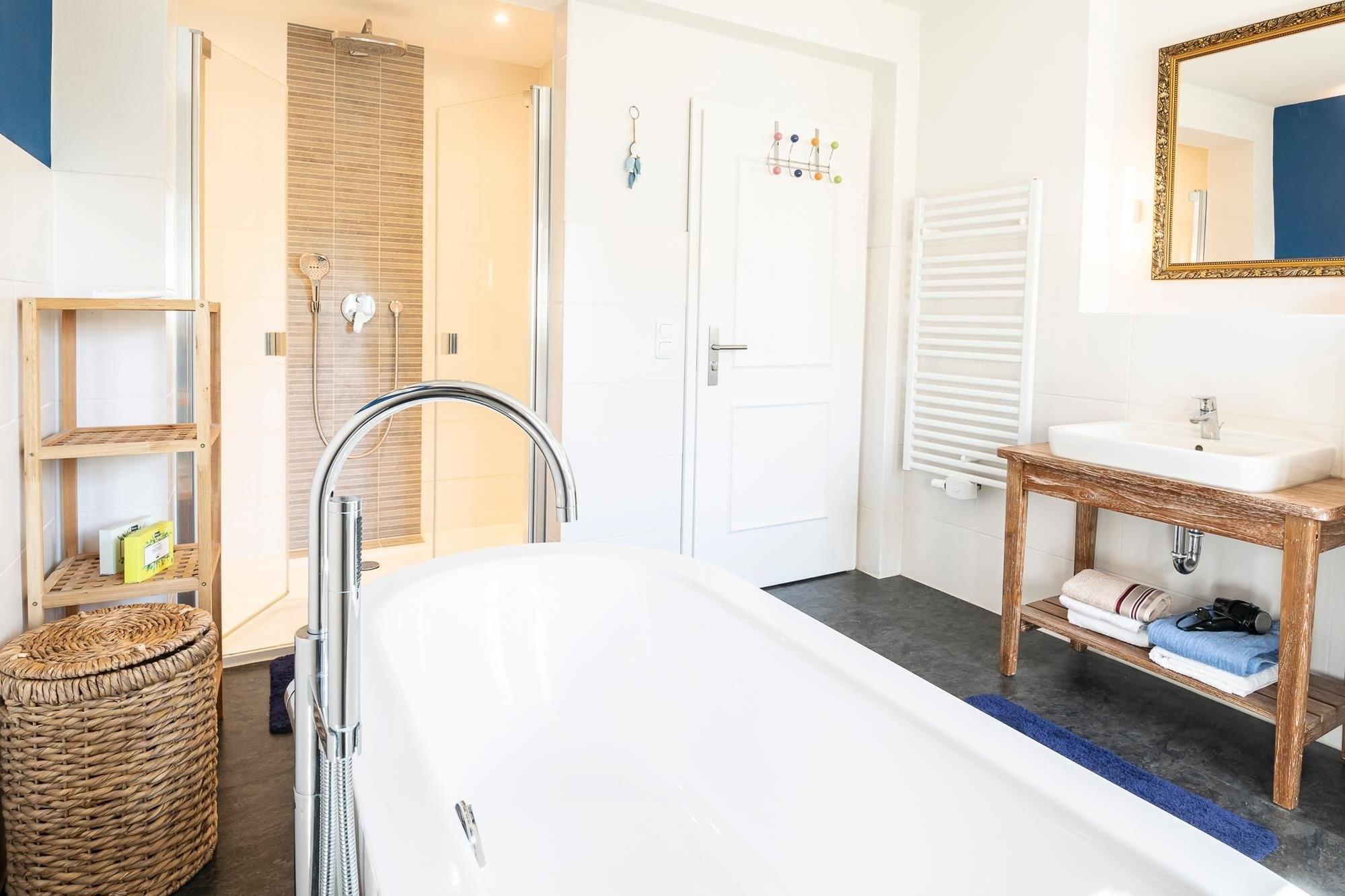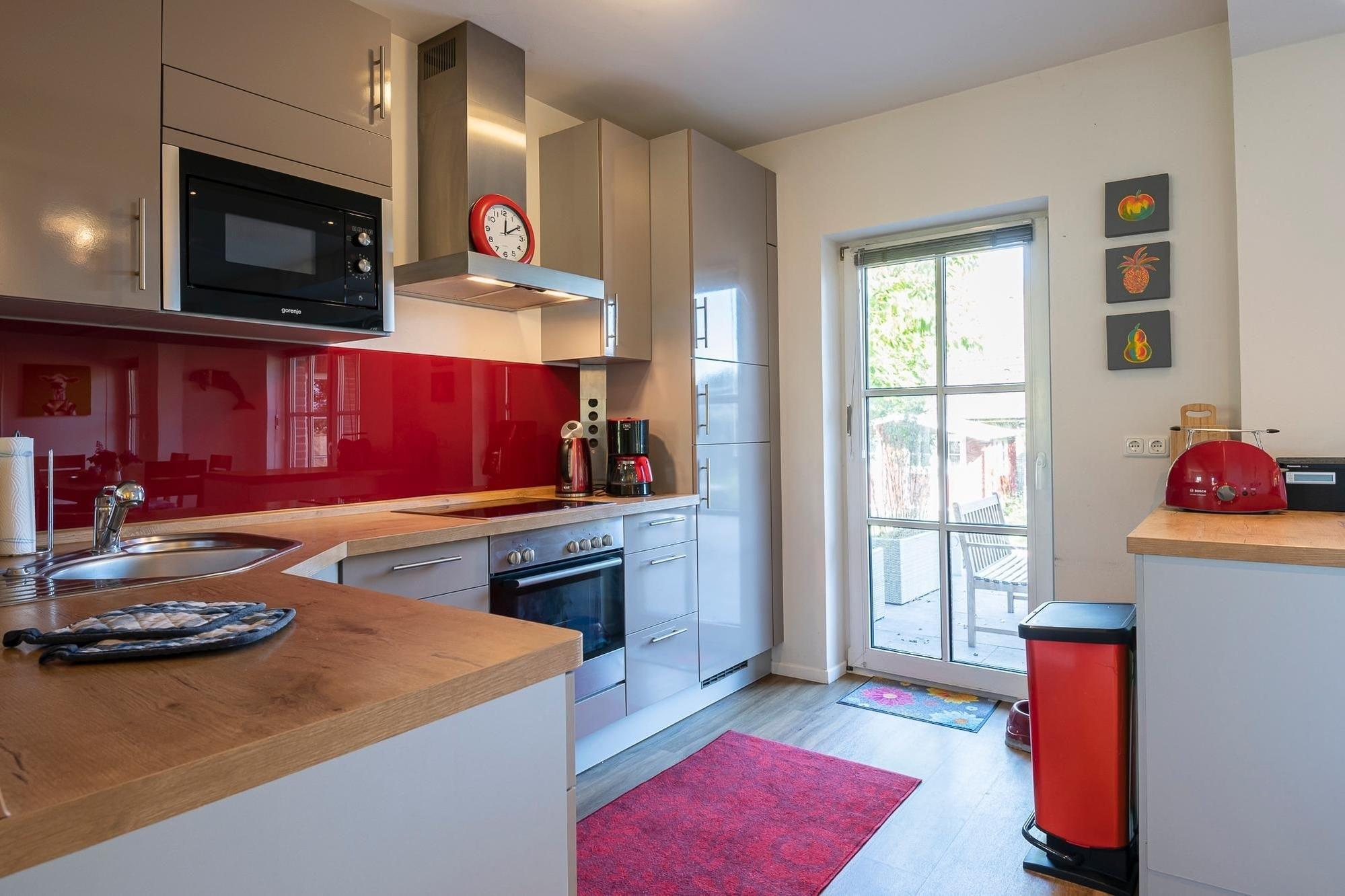Diese Wohnung besticht durch ihre großzügige Aufteilung und hochwertige Ausstattung. Beim Betreten der Wohnung führt Sie ein offener Wohnbereich direkt in das Herz der Wohnung, wo Ihnen die moderne Küche mit Induktionsherd, Spülmaschine, Kühl-Gefrier-Kombi etc. alle kulinarischen Möglichkeiten bietet. Im angrenzenden Essbereich können Sie gesellige Stunden mit ihren Liebsten verbringen. Das große Wohnzimmer mit Echtleder-Couch garantiert mit einem Smart-TV inklusive Streaming-Diensten (eigene Accounts erforderlich), einem 5.1 Raumklang-Soundsystem und ein DVD/BluRay-Player jede Menge Unterhaltung. Zu den Highlights dieser Wohnung gehört außerdem das Billardzimmer mit 8-Fuß Turnier-Poolbillardtisch mit Profi-Zubehör, das Ihnen zur freien Verfügung steht. Totale Entspannung verspricht der 600m² Garten mit großer Süd-Terrasse, auf der Ihnen eine Sitzgruppe sowie Sonnenschirm und -liegen zur Verfügung stehen. Genießen Sie die Ruhe bei einem ausgiebigem Grillabend oder dem ersten Kaffee am Morgen. Erholsame Stunden verbringen Sie in den zwei Schlafzimmern mit King-Size-Doppelbetten (je 2x 100x200 cm). In einem der Schlafzimmer finden Sie zusätzlich eine umfassende Home-Office-Ausstattung mit 4K-Bildschirm und USB-Tastatur. Weitere mitreisende Gäste nächtigen in einem zusätzlichen Schlafzimmer mit Etagenbett (2x 90x200 cm). Abgerundet wird diese Wohnung durch das luxuriöse Badezimmer mit freistehender Badewanne und großer Regendusche. Zudem gibt es ein weiteres Gäste-WC mit Dusche, um Stau am Morgen vorzubeugen.