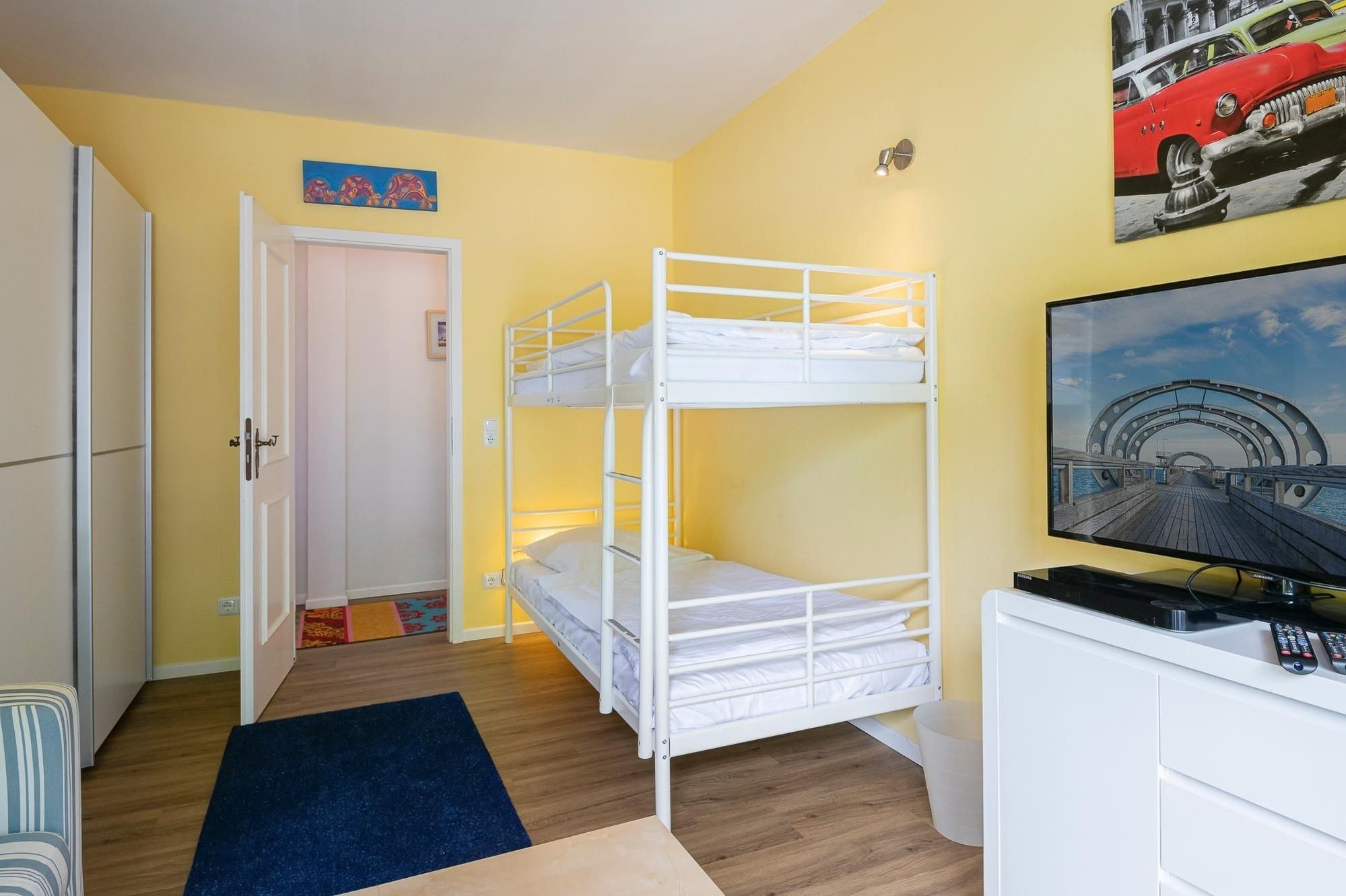 Schlafzimmer 1: 1 Etagenbett (2x 90x200 cm), Kleiderschrank