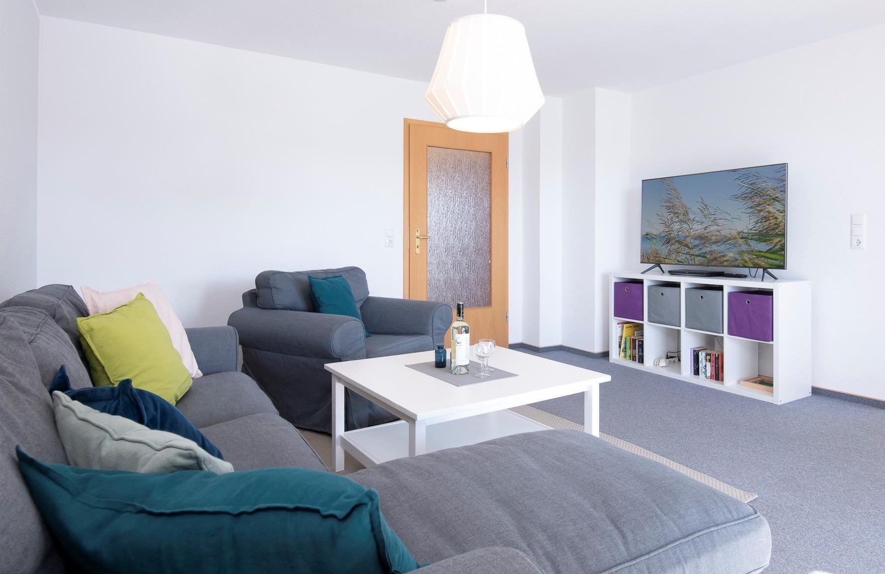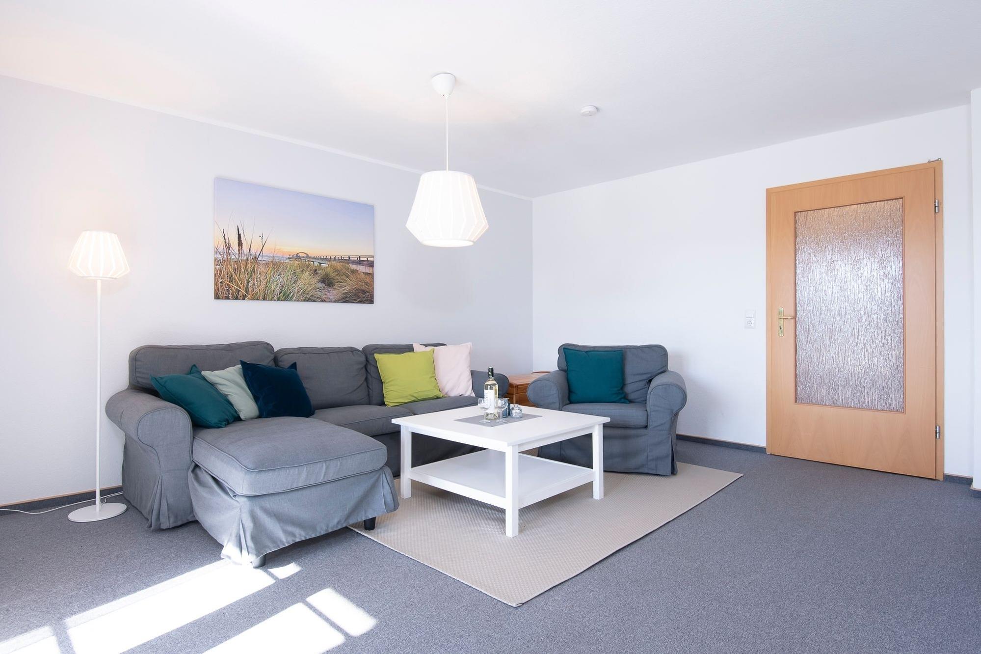 Sonnige 3-Zimmer-Ferienwohnung im Obergeschoss für bis zu 4 Personen mit 2 separaten Schlafzimmern, Balkon und einer Wohnfläche von ca. 64 m².