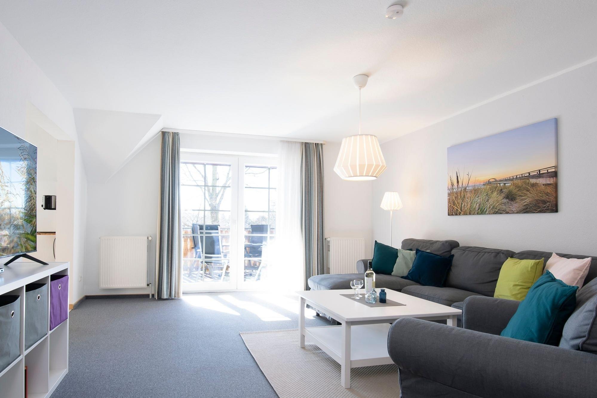 Moderne 3-Zimmer-Ferienwohnung mit Balkon und Meerblick in Kellenhusen, ideal für erholsame Strandurlaube.