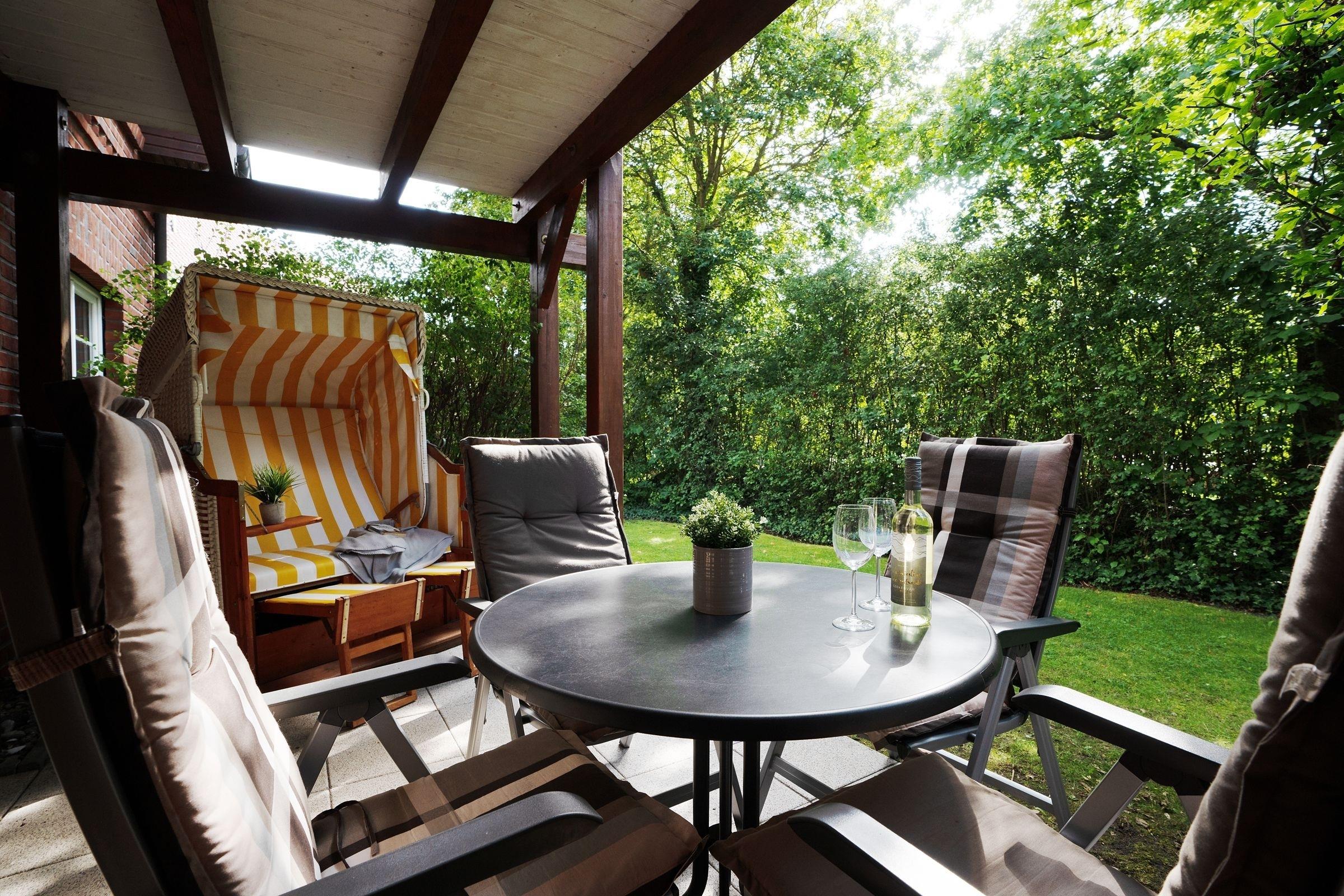 In Ihrem Zuhause auf Zeit werden Sie sich auf Anhieb wohlfühlen: Die hochwertige, moderne Ausstattung verspricht Urlaub mit Niveau. In der bequemen Sofalandschaft mit großem Flachbildschirm können Sie gemütlich entspannen. Von hier aus kommen Sie direkt auf die große Terrasse – eine schöne Sitzecke, ein Strandkorb sowie ein Elektrogrill stehen hier für Sie bereit. Lassen Sie Ihren Alltag hinter sich und genießen Sie die Urlaubssonne. Ein Sichtschutz sichert die nötige Privatsphäre. Die Küche ist offen gestaltet und bietet vom Induktionsherd über eine Nespresso-Maschine bis hin zur Mikrowelle und Spülmaschine alle Annehmlichkeiten, die man sich im Urlaub wünschen kann. Für geruhsame Nächte stehen Ihnen zwei separate Schlafzimmer zur Verfügung, in denen sich jeweils ein Doppelbett (2x 90x200 cm) befindet. Hier lässt es sich wunderbar träumen. Eins der Schlafzimmer verfügt zudem über ein TV-Gerät. Gemütlich abgedunkelt werden die Zimmer jeweils mit Gardienen. Das Duschbad ist schick, freundlich und modern eingerichtet.