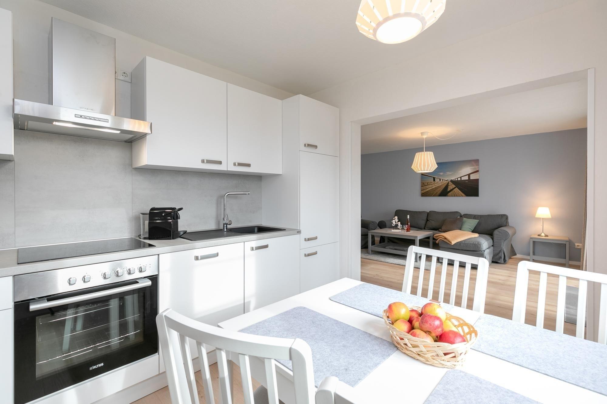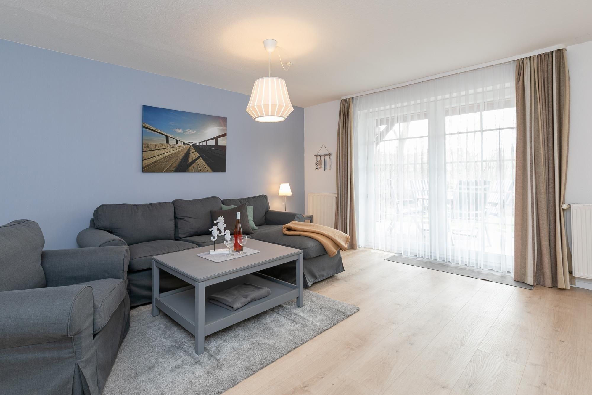 Moderne 3-Zimmer-Ferienwohnung im Erdgeschoss für bis zu 4 Personen mit 2 separaten Schlafzimmern, Terrasse und einer Wohnfläche von ca. 66 m².