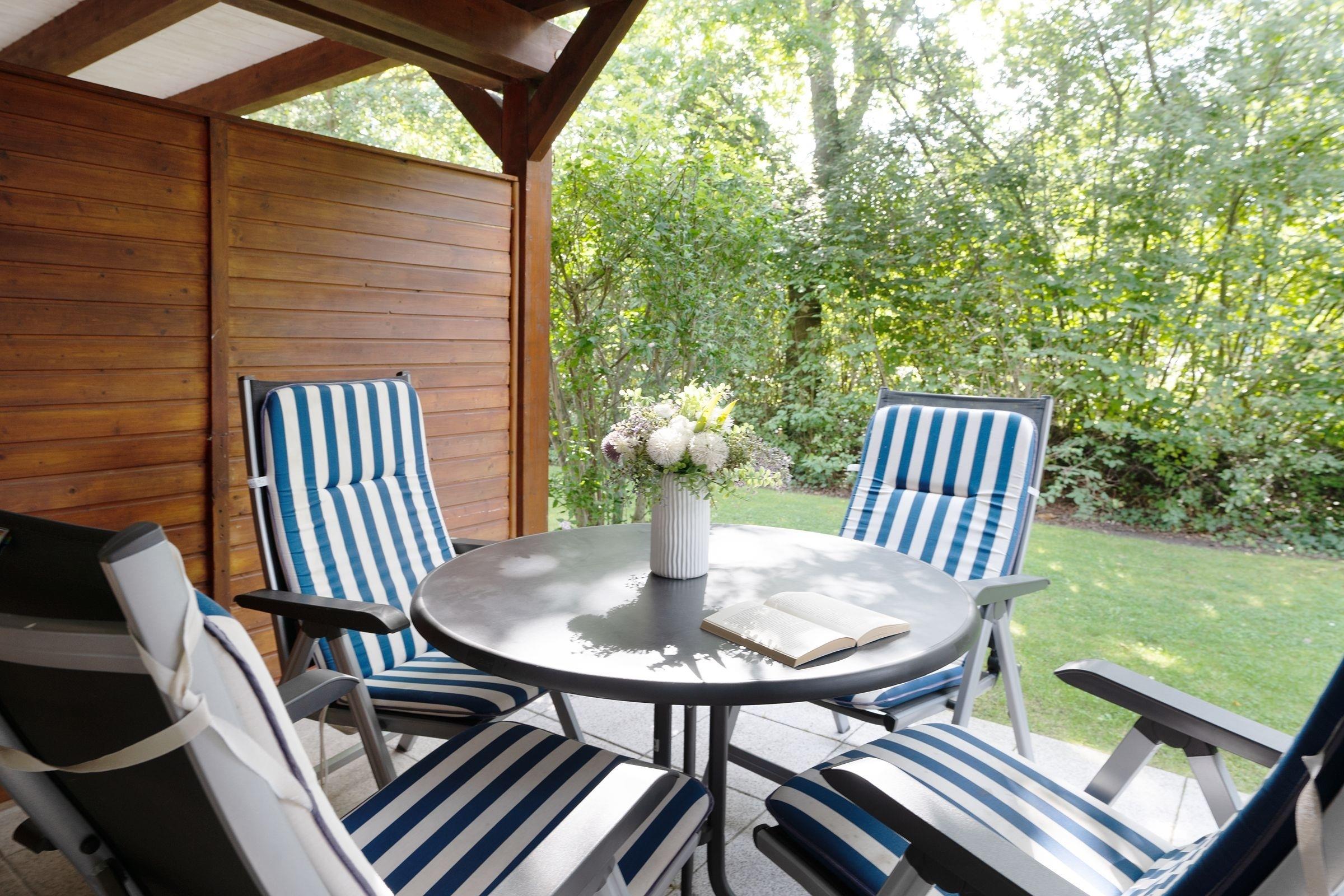 Ankommen und Wohlfühlen. Nehmen Sie Platz in der gemütlichen Sofalandschaft – und wenn es das Wetter zulässt, geht es natürlich gleich raus auf die geschützte, überdachte Terrasse. Hier kann man seine Zeit wunderbar genießen. Die zum Wohnraum offene Küche mit Essplatz ist gut ausgestattet und lässt keine Wünsche offen – zaubern Sie hier gemeinsam Ihre leckeren Urlaubs-Menüs. Die beiden separaten Schlafräume bieten genügend Abstellmöglichkeiten und eine wunderbare Nachtruhe. In dem einen Zimmer steht ein Doppelbett (2x 90x200 cm) und in dem anderen befinden sich zwei Einzelbetten (je 90x200 cm), die zusammen gestellt wurden. Das Badezimmer ist modern und komfortabel. Ein Kinderbettchen und ein Hochstuhl können frei genutzt werden.