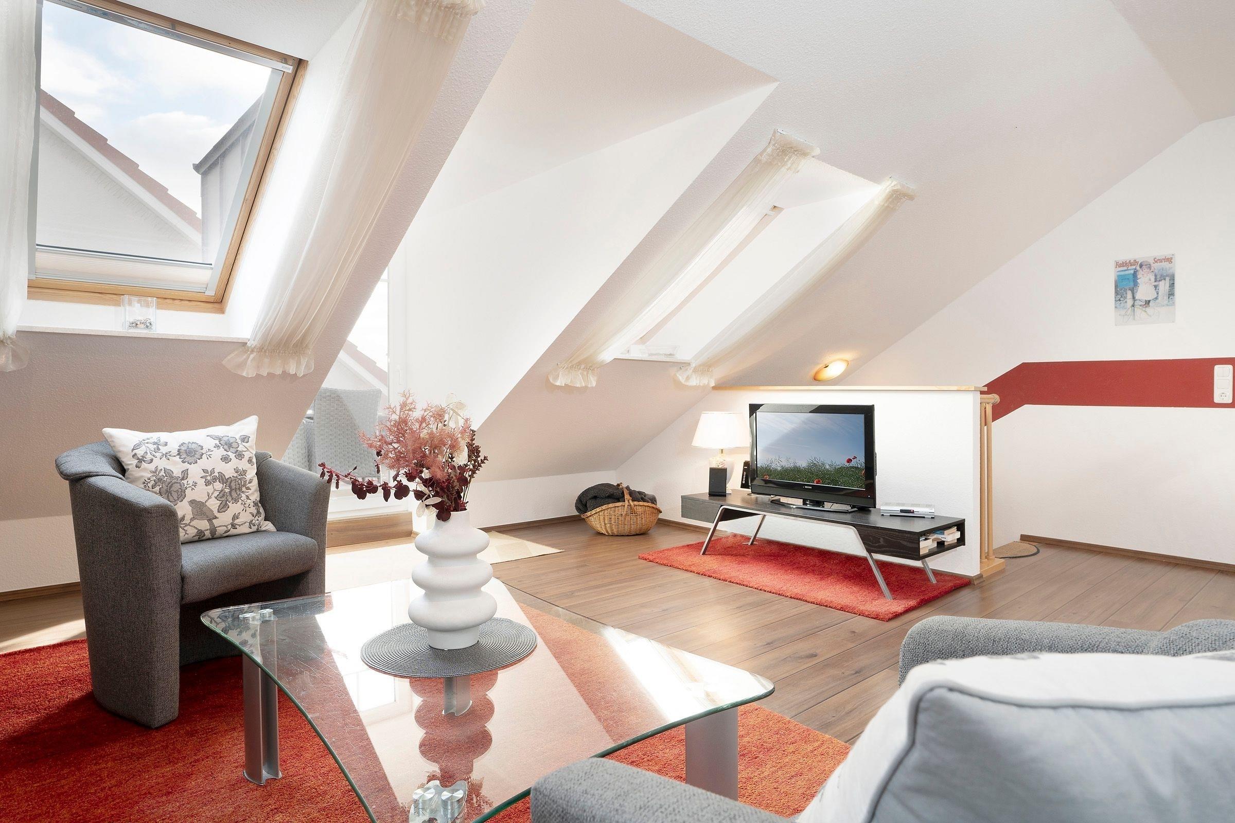 Wohnzimmer (Dachgeschoss) mit Schlafsofa (ca. 140x200cm)