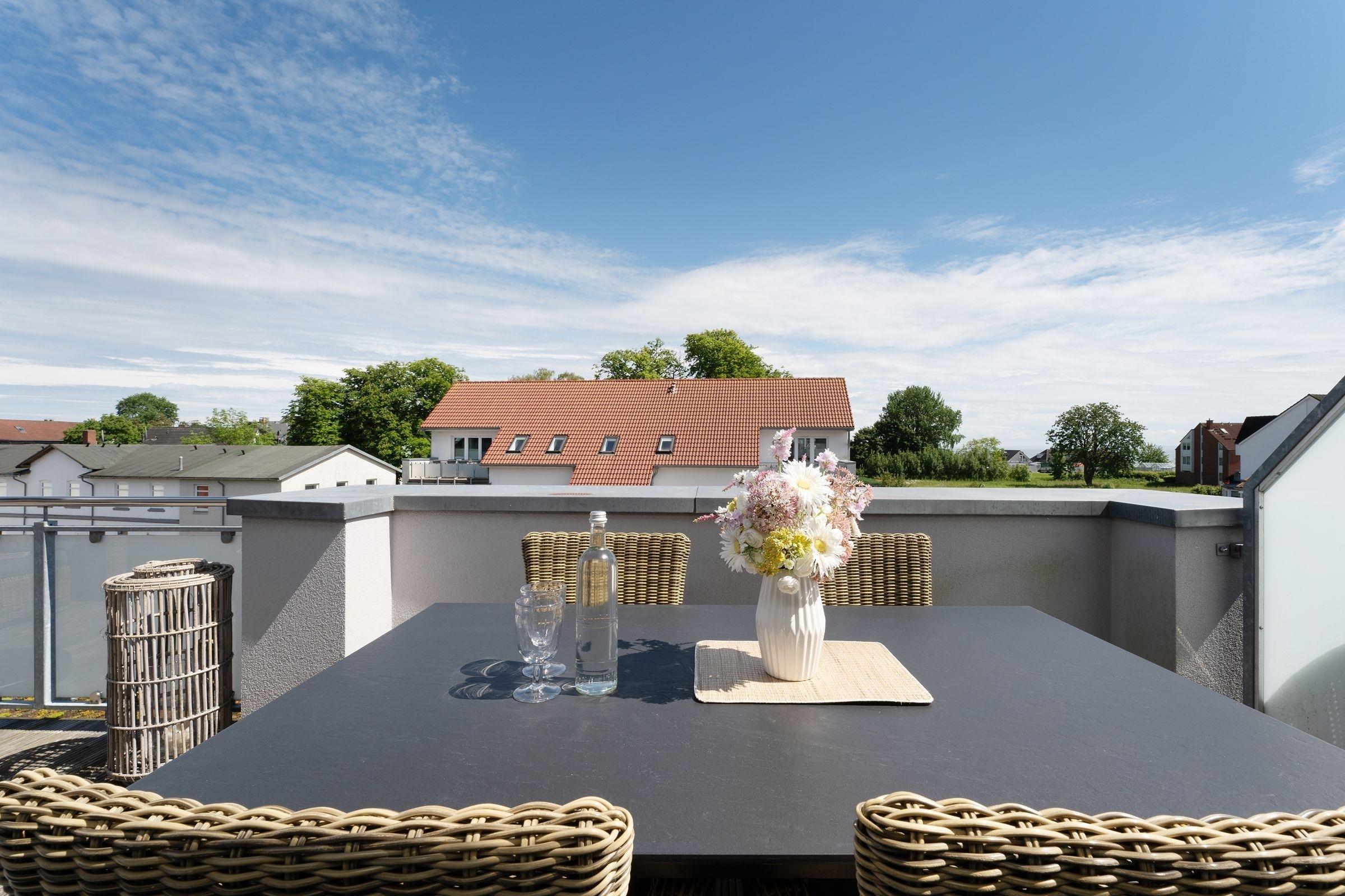 Modernes Beachloft mit Balkon und Ostseeblick in Kellenhusen, ideal für entspannte Strandtage und gesellige Abende.