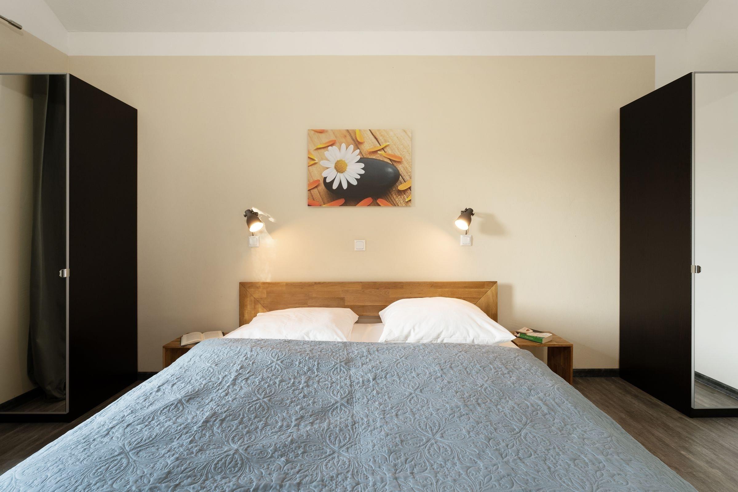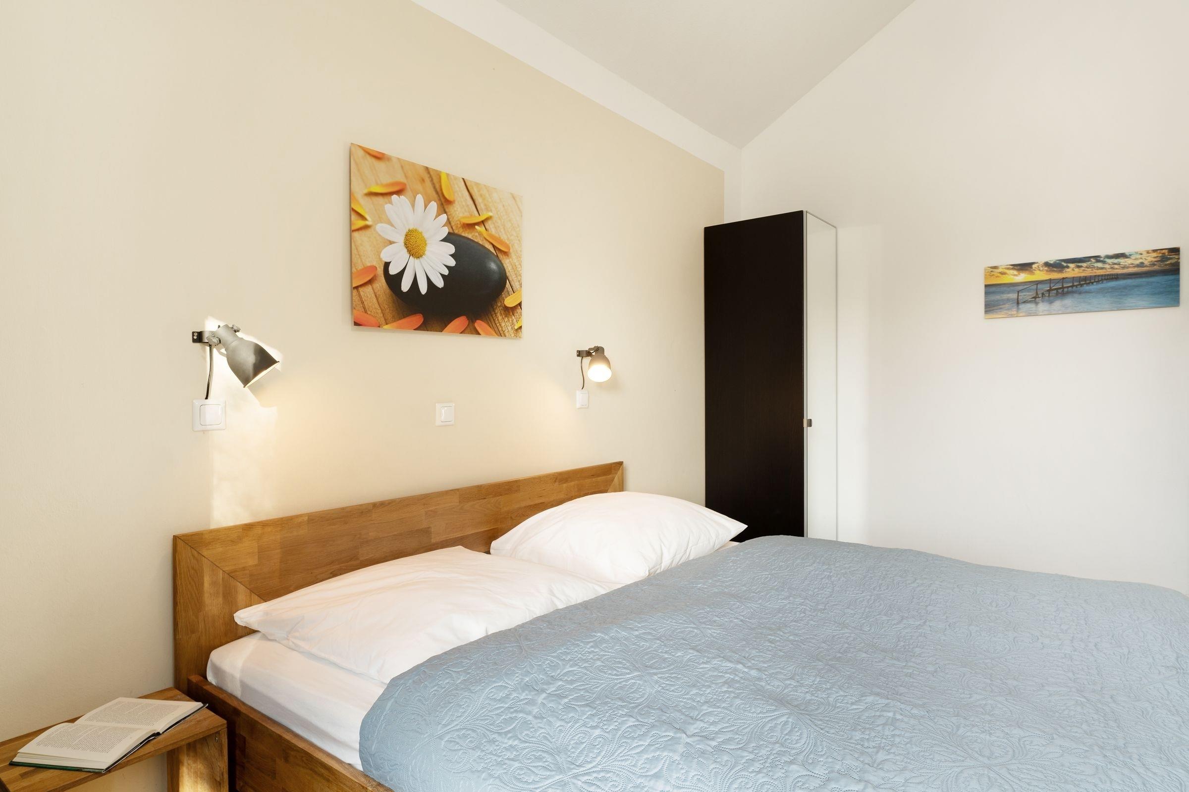 Schlafzimmer 1: 1 Doppelbett (2x 90x200cm), Kopfteile der Lattenroste = verstellbar, Höhe Bett inkl. Matratze = 46 .