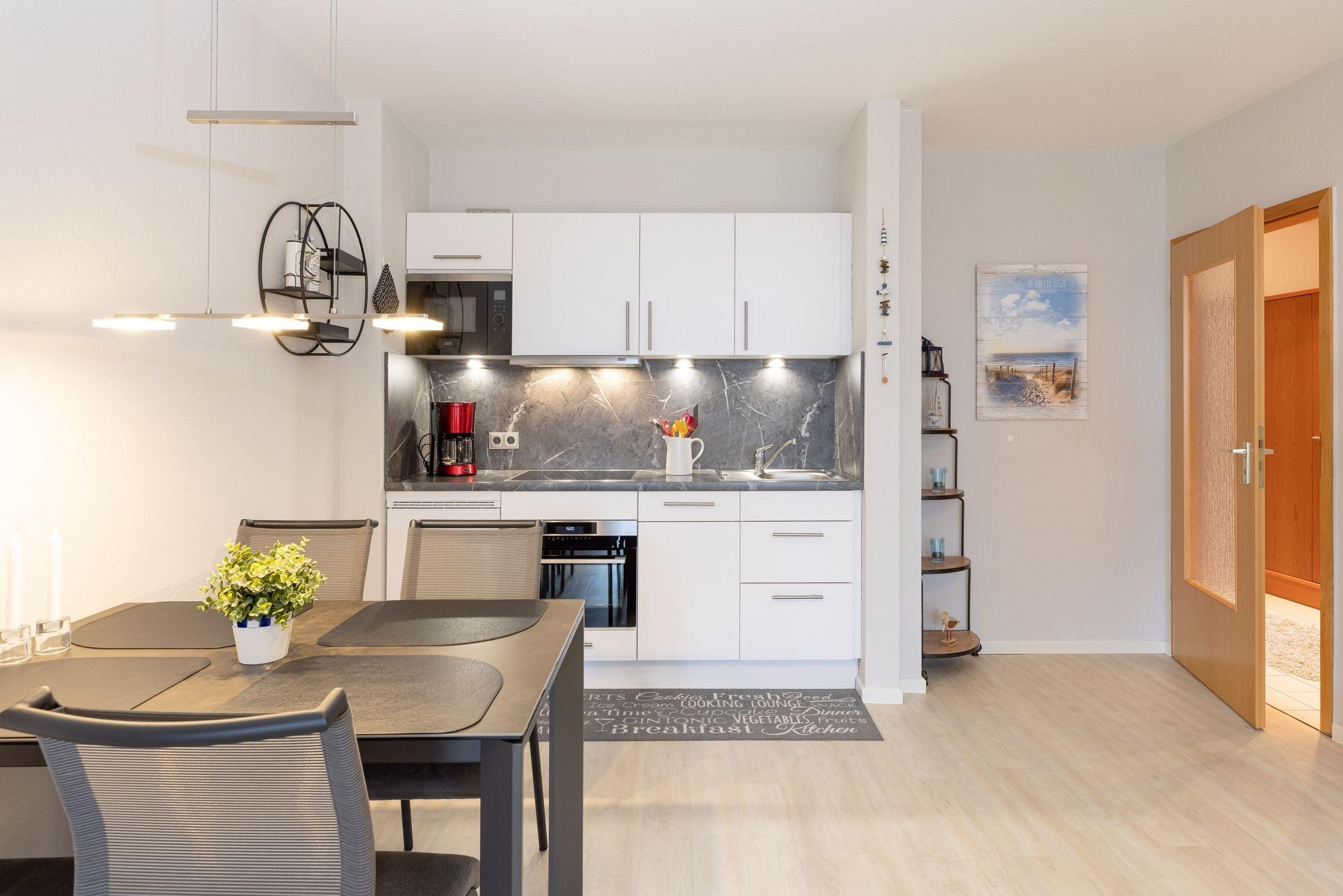 Moderne Ferienwohnung Wellenrauschen in Kellenhusen, strandnah mit Terrasse und komfortabler Ausstattung.