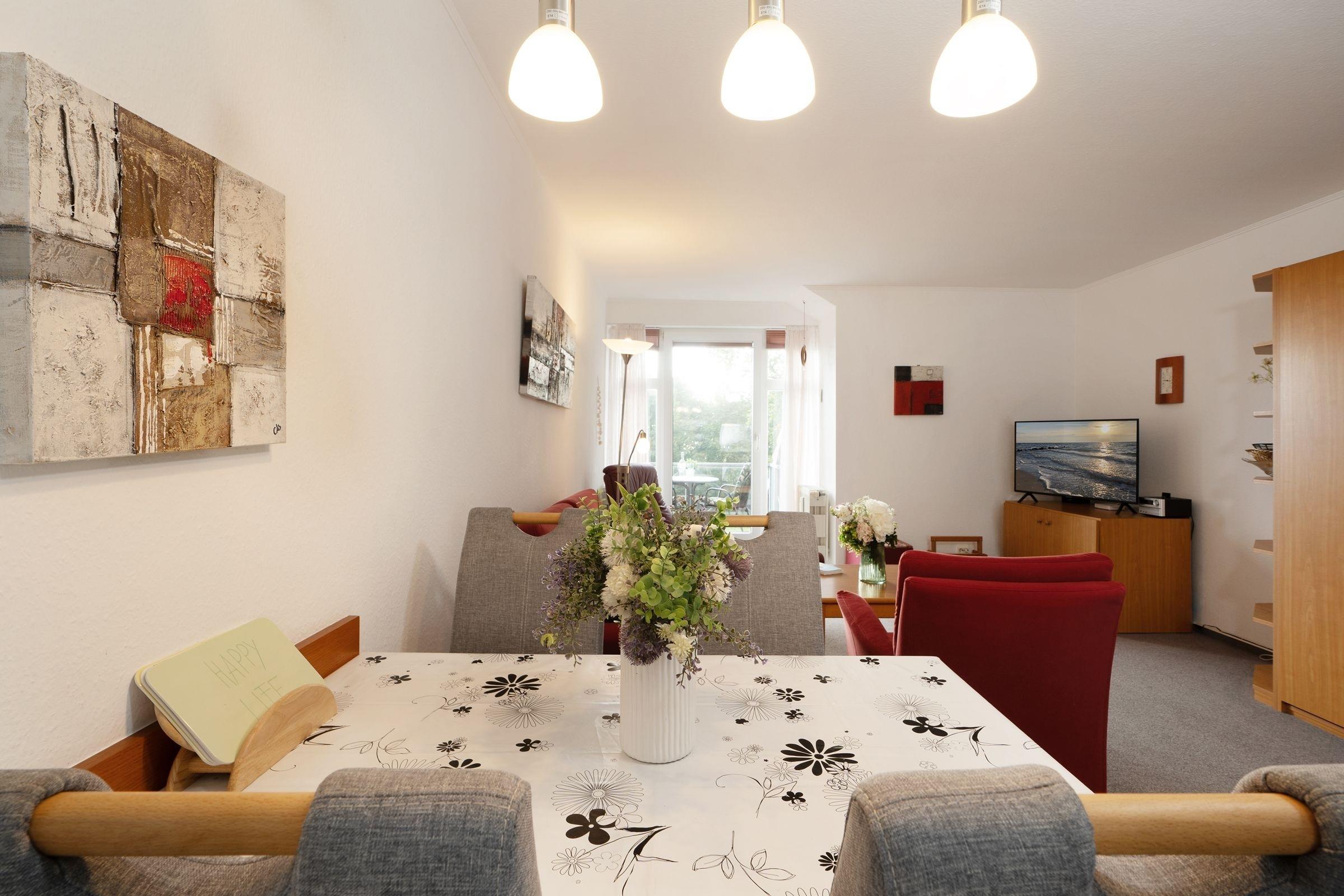 Urlaub in der 1. Reihe von Kellenhusen: Die freundliche 2-Zimmer-Ferienwohnung im Dachgeschoss (2. Stock) ist für bis zu 4 Personen ausgelegt und verfügt über einen Balkon mit saisonal eingeschränktem Teilmeerblick sowie einer Wohnfläche von ca. 48 m².
