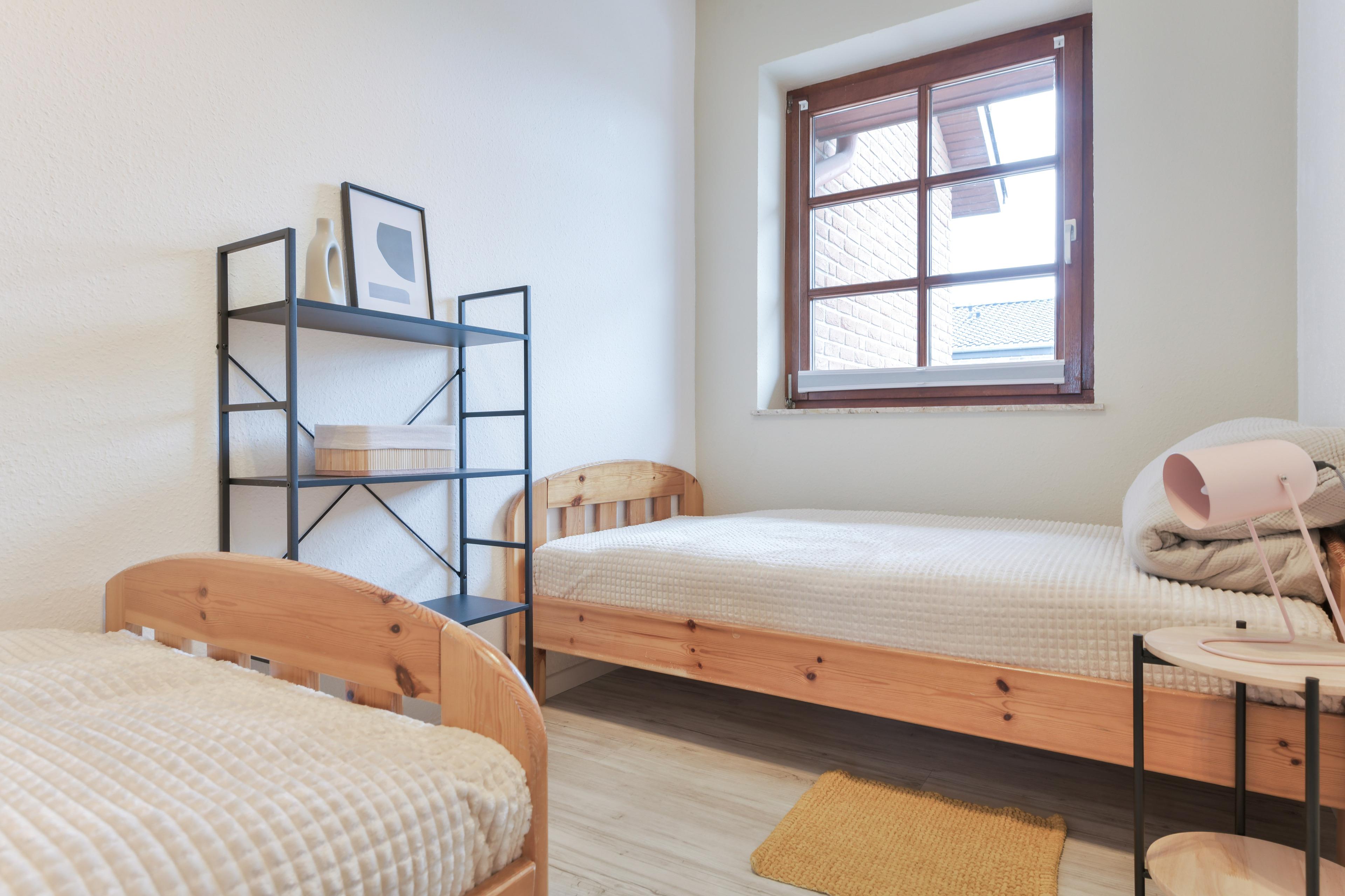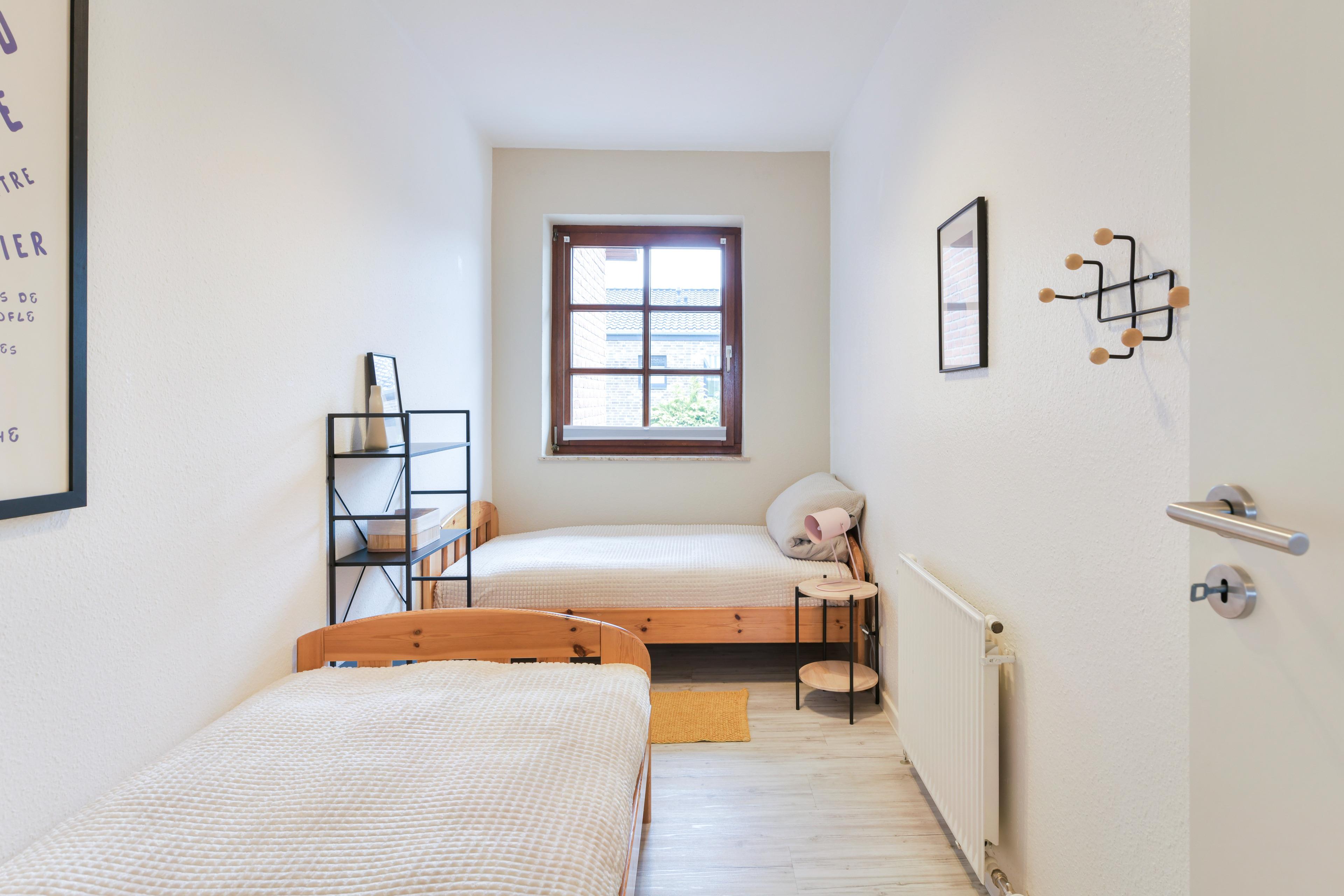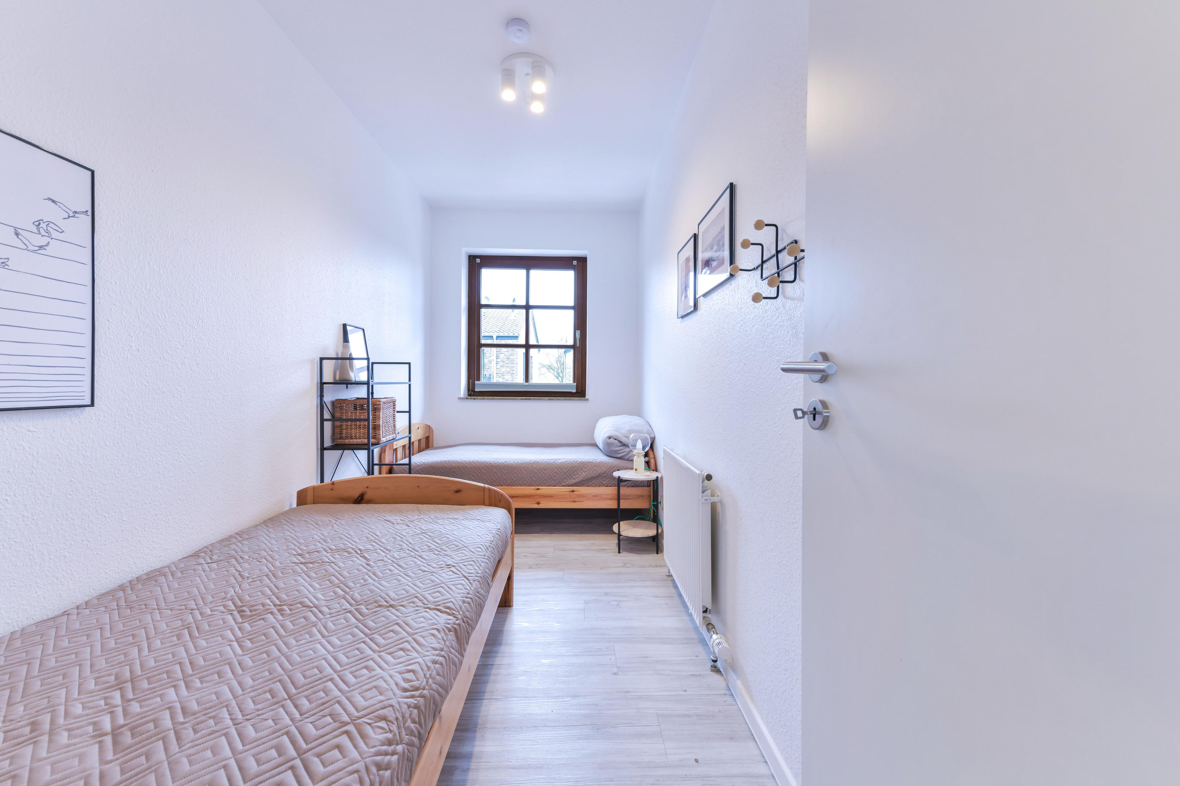 Schlafzimmer 2: 1 Einzelbett (90x200cm), 1 Einzelbett (90x170cm), Kleiderschrank, Verdunkelung (Rollo)