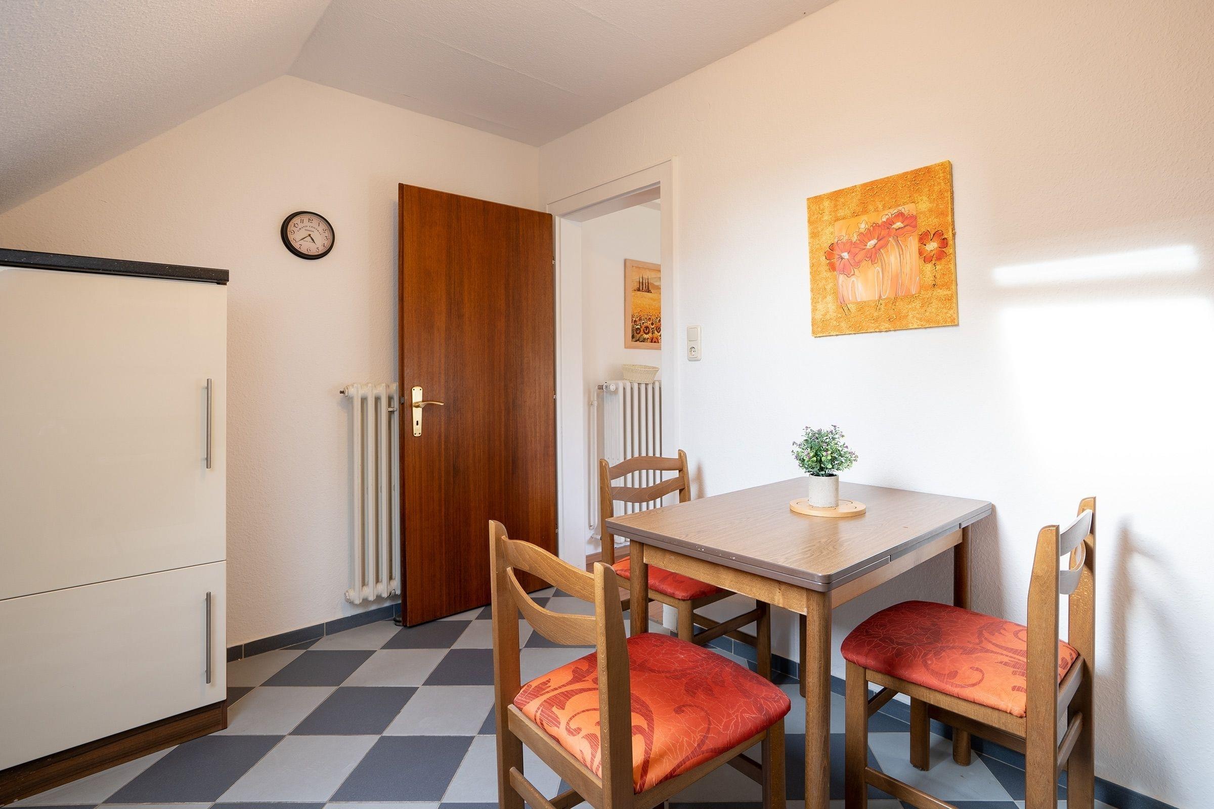 Urlaub in der 1. Reihe von Kellenhusen: strandnahe 3-Zimmer-Ferienwohnung für bis zu 4 Personen im 1. Stock (Dachgeschoss) mit Balkon und einer Wohnfläche von ca. 43 qm.