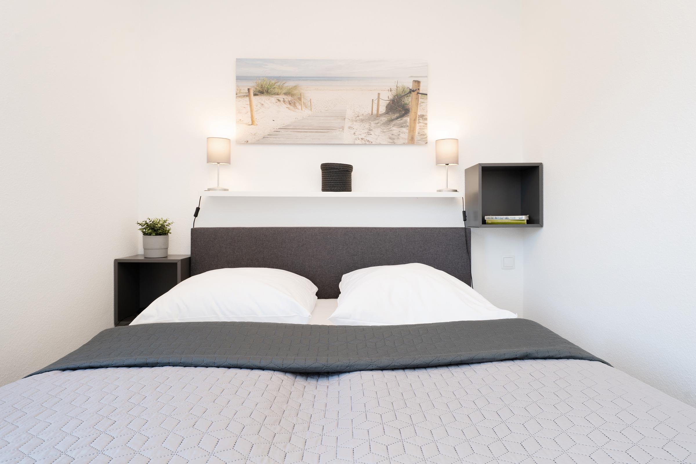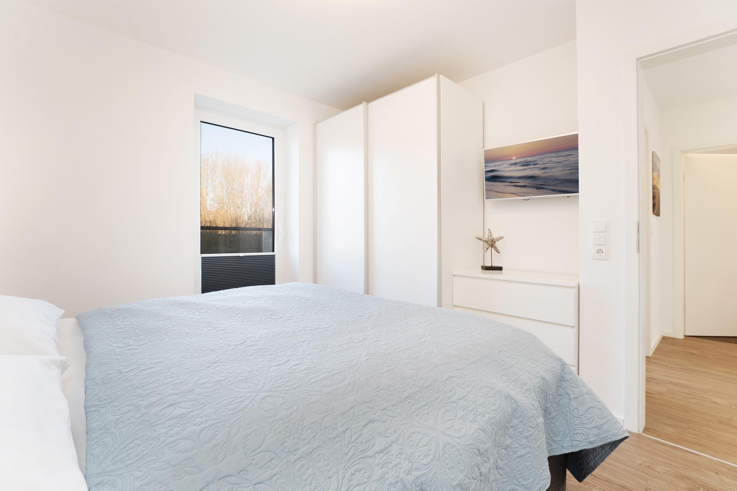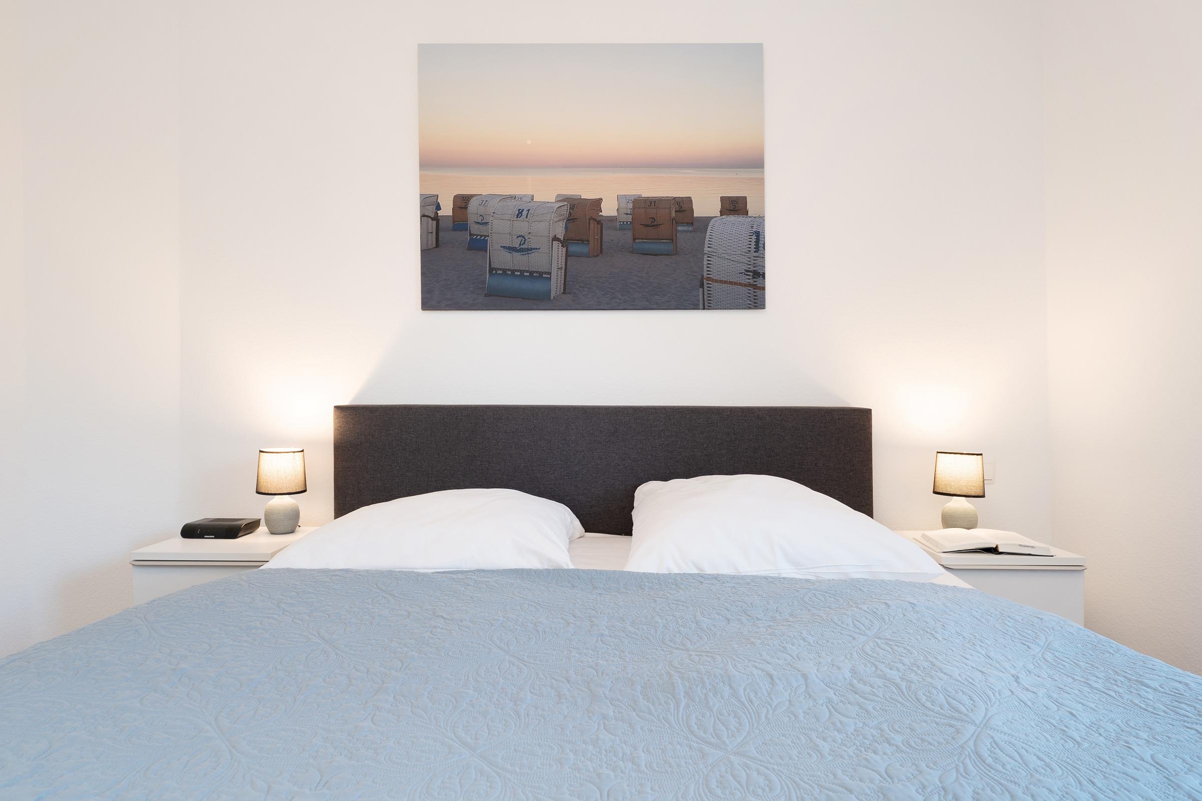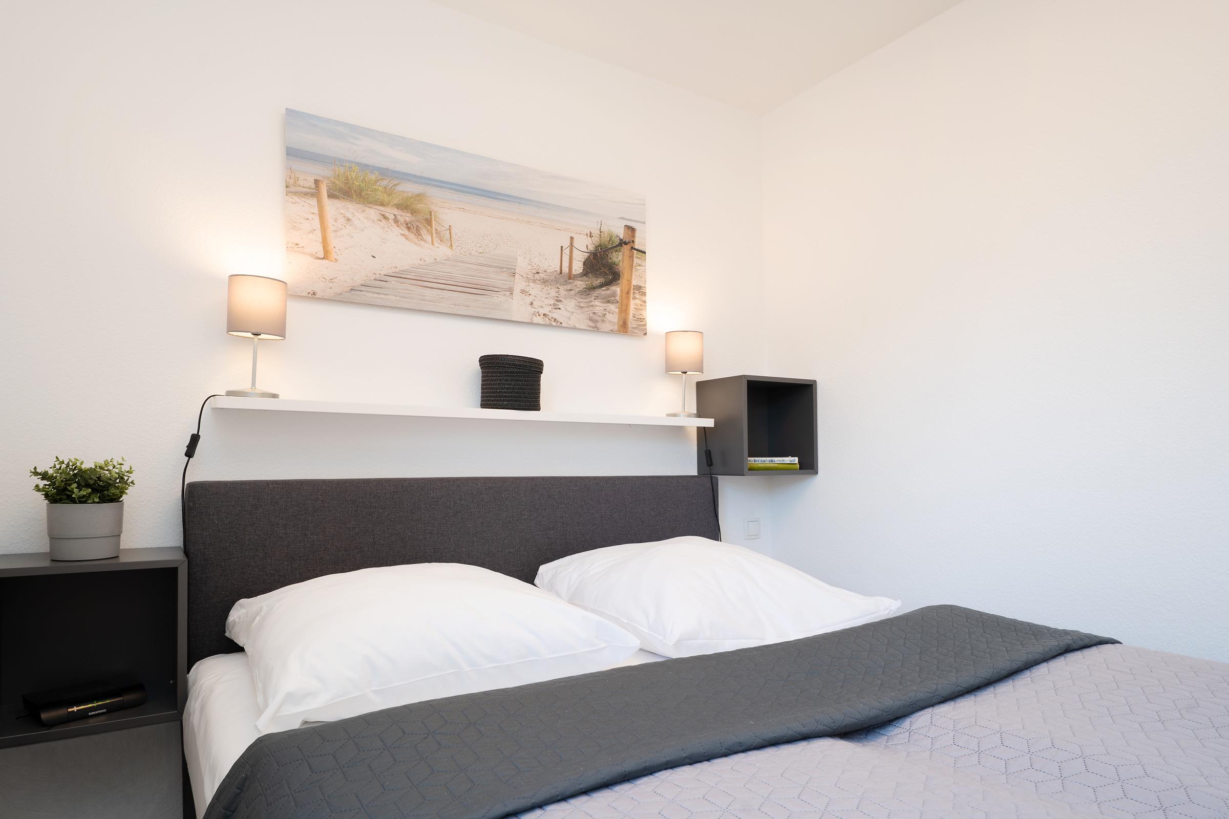 Die Wohnung verfügt über einen großzügigen Wohn-/Essbereich mit Kaminofen. Für Unterhaltung sorgen SAT-TV in Ultra HD, Bluray-Player, Stereoanlage mit CD-Player, kostenfreier WLAN-Anschluss sowie Bücher, DVDs, CDs und Gesellschaftsspiele. Die angrenzende, offene Einbauküche ist ausgestattet mit 4-Platten-Ceranfeld, Backofen, Geschirrspüler, Kühlschrank mit 3*Gefrierfach, Stabmixer, Kaffeemaschine etc. Die beiden Schlafzimmer sind jeweils mit hochwertigen Boxspringbetten und Kleiderschränken möbliert. Das große Schlafzimmer (Liegefläche 180x200 cm) verfügt über ein zusätzliches TV-Gerät, im kleinen Schlafzimmer beträgt die Liegefläche ca. 160x200 cm. Das großzügige Duschbad mit bodengleicher Dusche und Sauna bietet auch für kältere Tage Wärme und Entspannung - hier stehen Ihnen Waschmaschine und Trockner zur Verfügung. Für wohlige Wärme in der Wohnung sorgt die Fußbodenheizung. An allen Fenstern und Außentüren sind Fliegengitter angebracht.