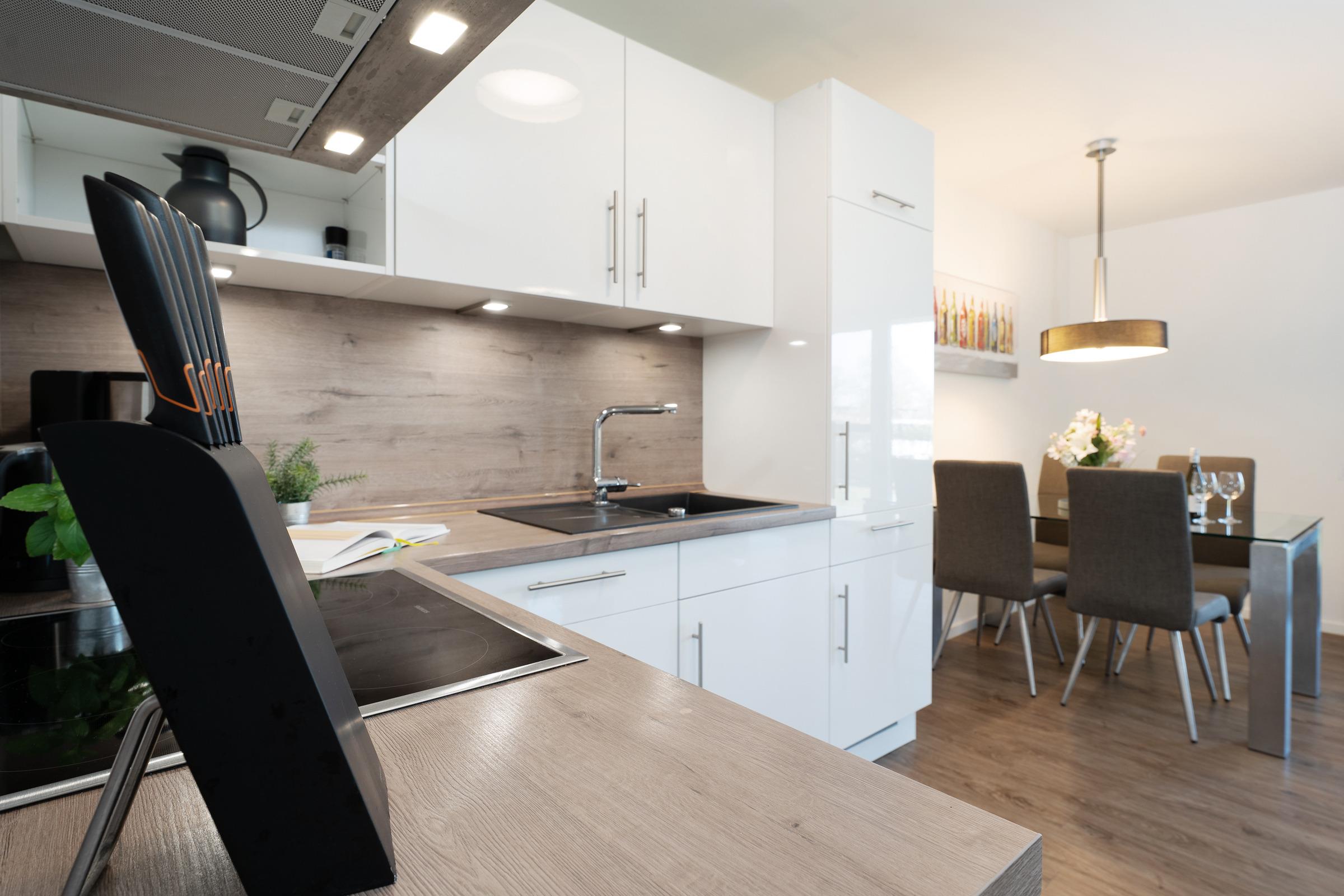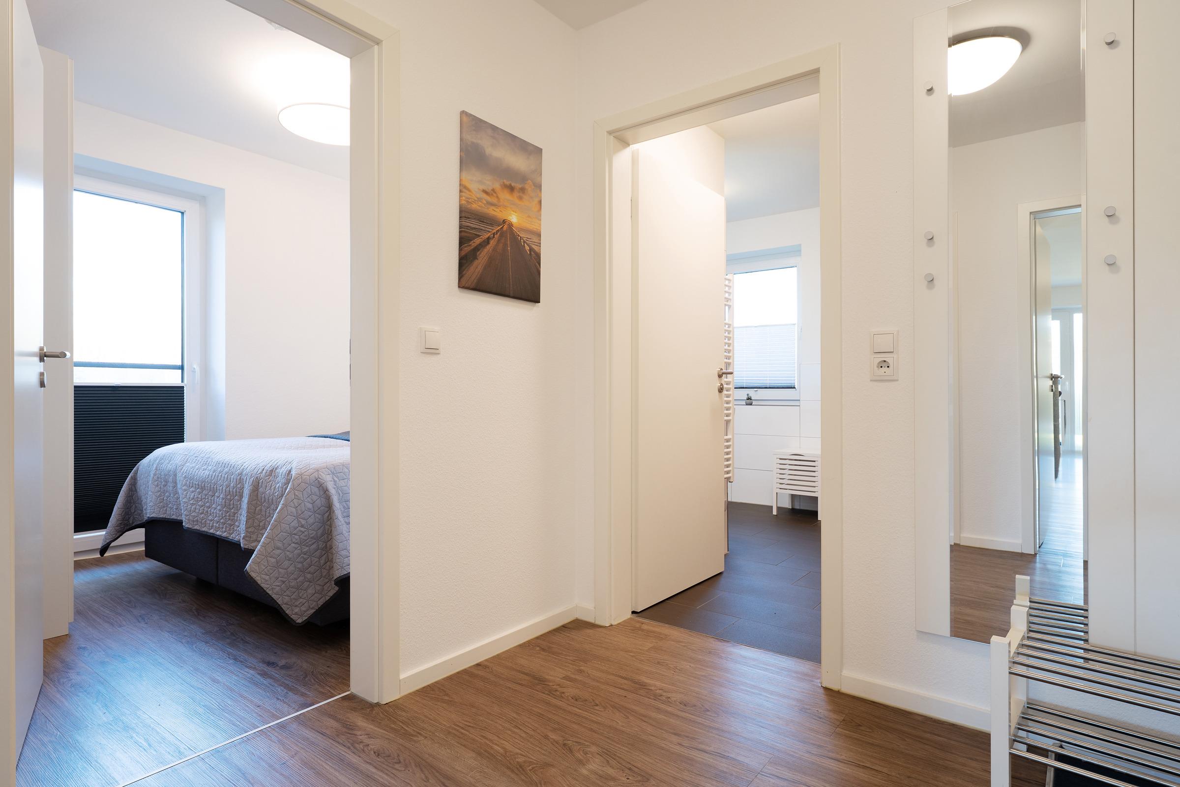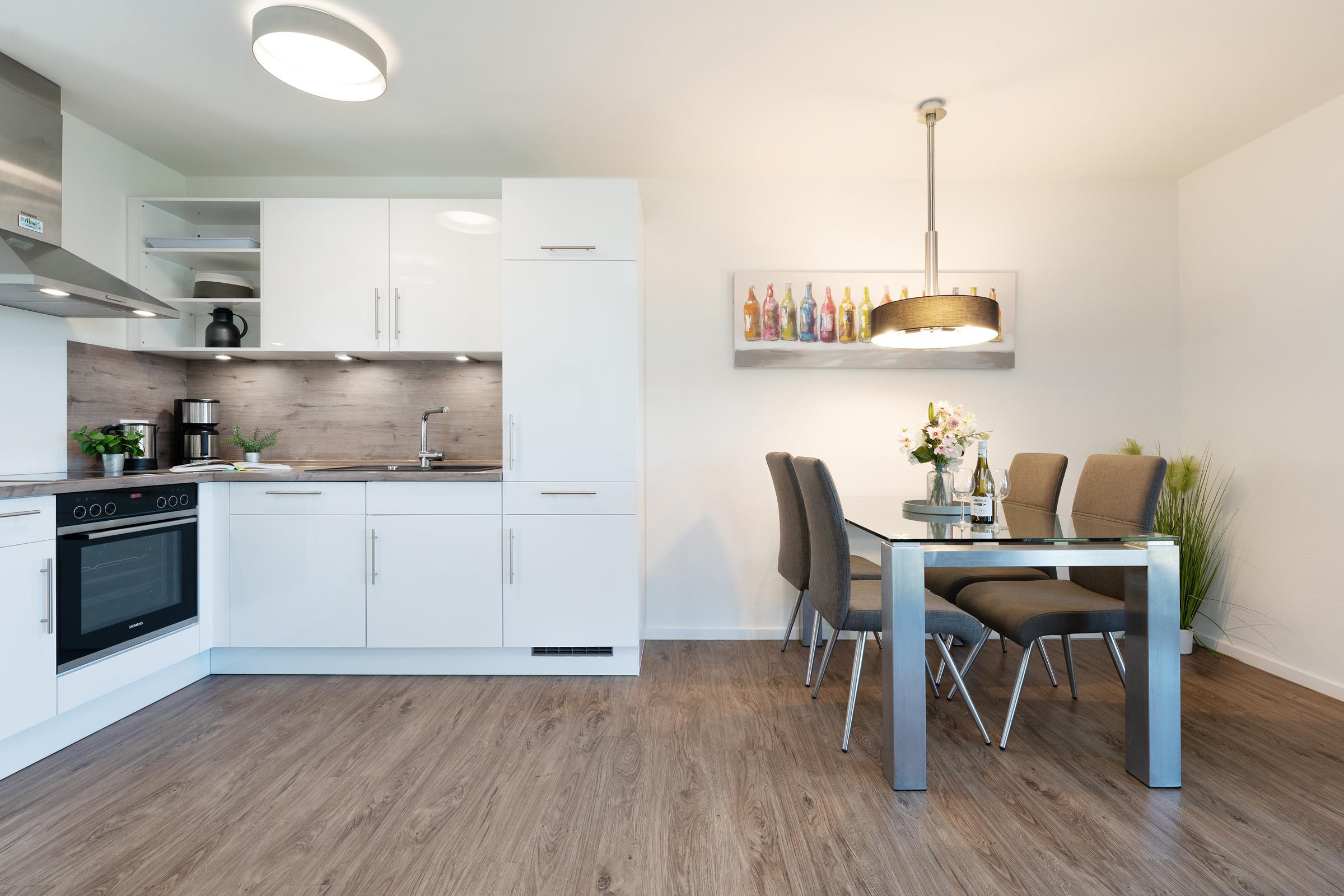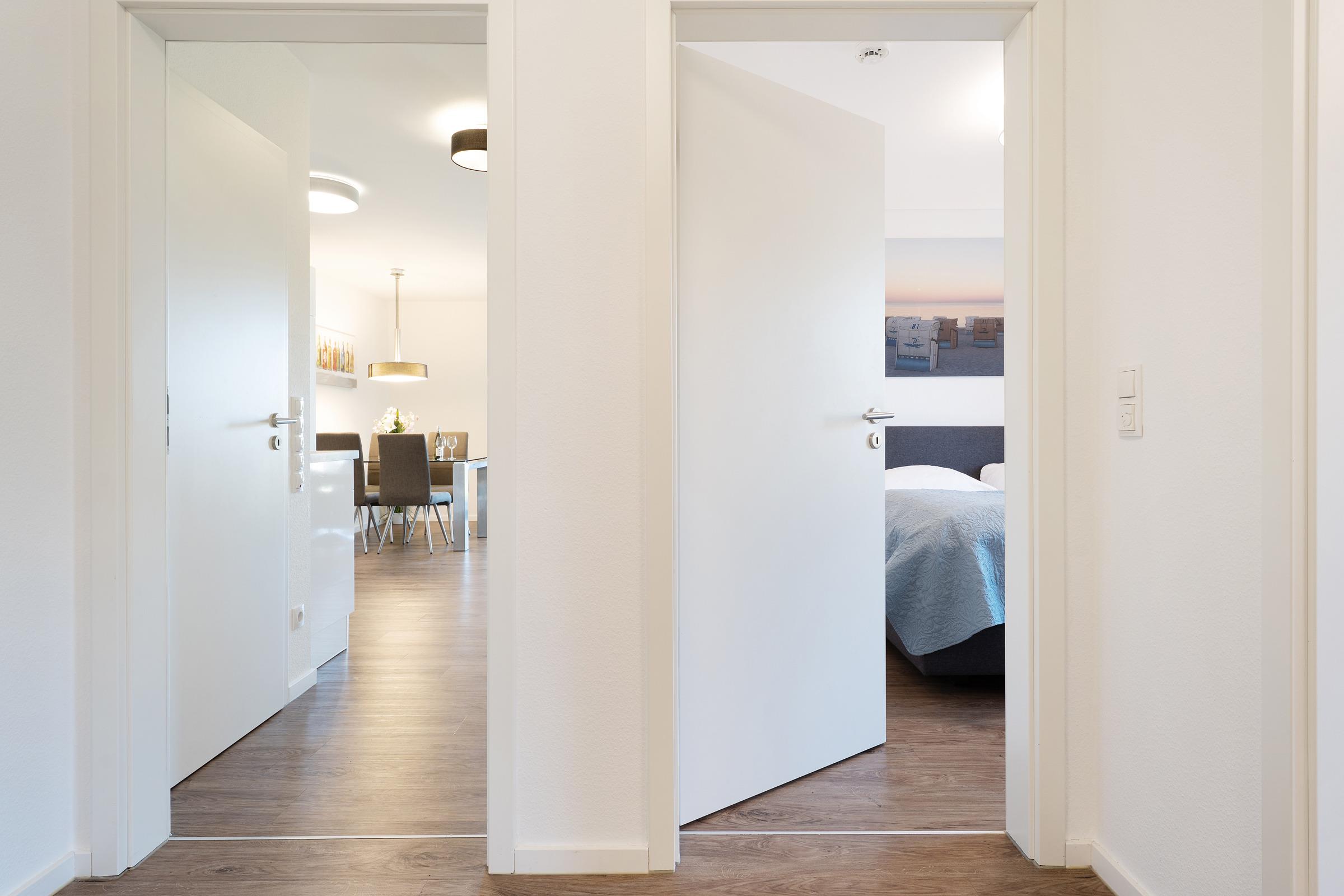 Die Wohnung verfügt über einen großzügigen Wohn-/Essbereich mit Kaminofen. Für Unterhaltung sorgen SAT-TV in Ultra HD, Bluray-Player, Stereoanlage mit CD-Player, kostenfreier WLAN-Anschluss sowie Bücher, DVDs, CDs und Gesellschaftsspiele. Die angrenzende, offene Einbauküche ist ausgestattet mit 4-Platten-Ceranfeld, Backofen, Geschirrspüler, Kühlschrank mit 3*Gefrierfach, Stabmixer, Kaffeemaschine etc. Die beiden Schlafzimmer sind jeweils mit hochwertigen Boxspringbetten und Kleiderschränken möbliert. Das große Schlafzimmer (Liegefläche 180x200 cm) verfügt über ein zusätzliches TV-Gerät, im kleinen Schlafzimmer beträgt die Liegefläche ca. 160x200 cm. Das großzügige Duschbad mit bodengleicher Dusche und Sauna bietet auch für kältere Tage Wärme und Entspannung - hier stehen Ihnen Waschmaschine und Trockner zur Verfügung. Für wohlige Wärme in der Wohnung sorgt die Fußbodenheizung. An allen Fenstern und Außentüren sind Fliegengitter angebracht.