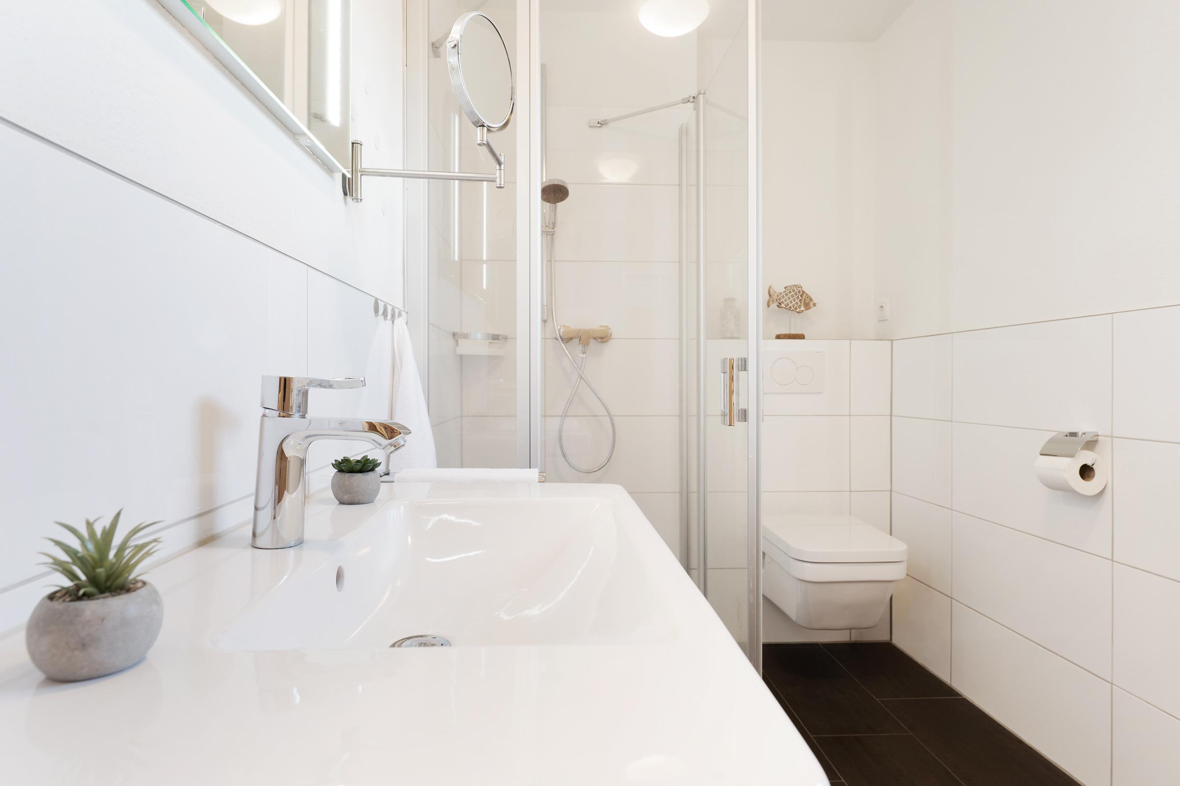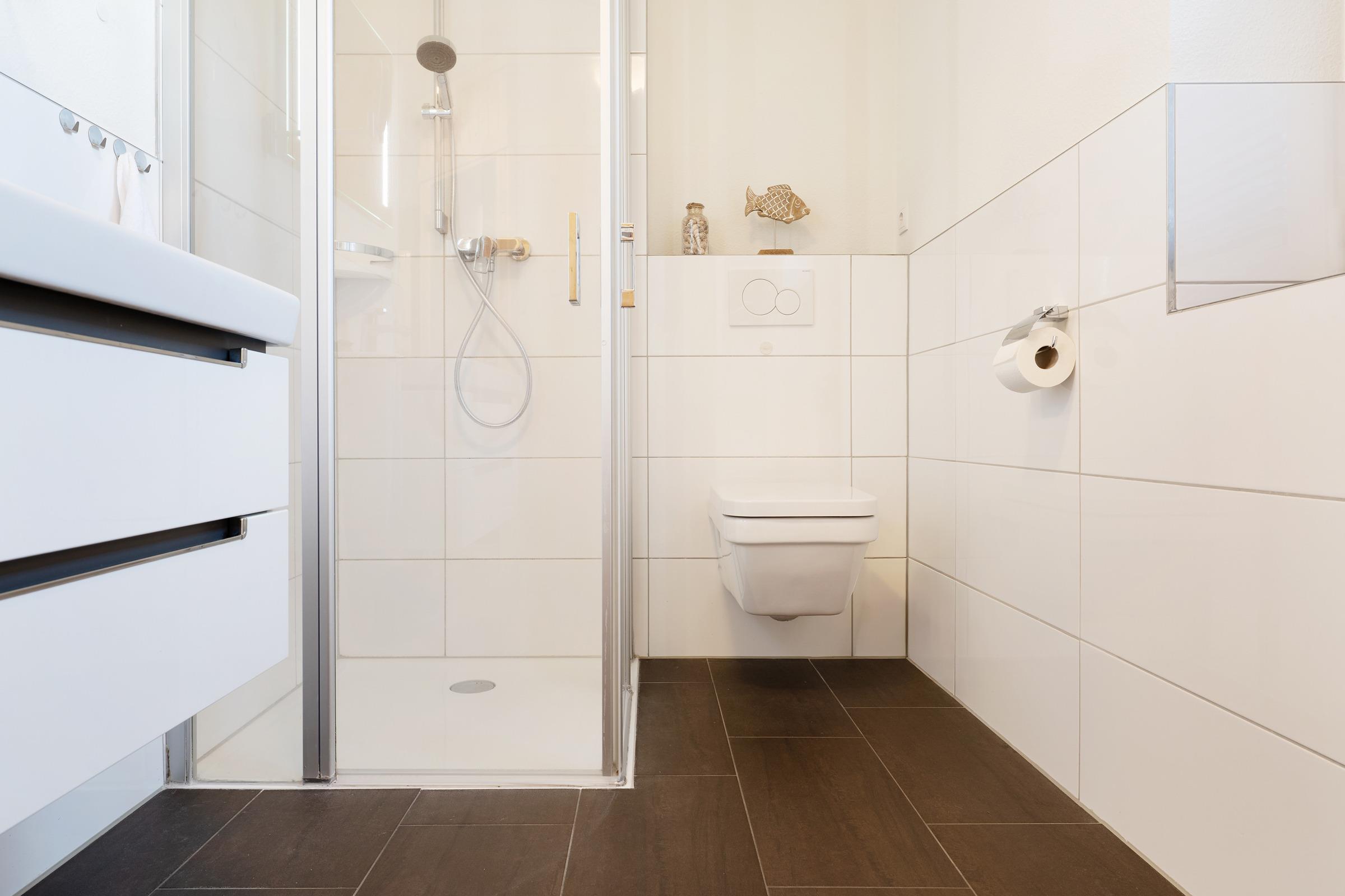 Dieses Ferienobjekt ist ohne Hindernisse erreichbar, die Dusche ist bodengleich, die Türschwelle zur Terrasse ist ca. 5 cm hoch.