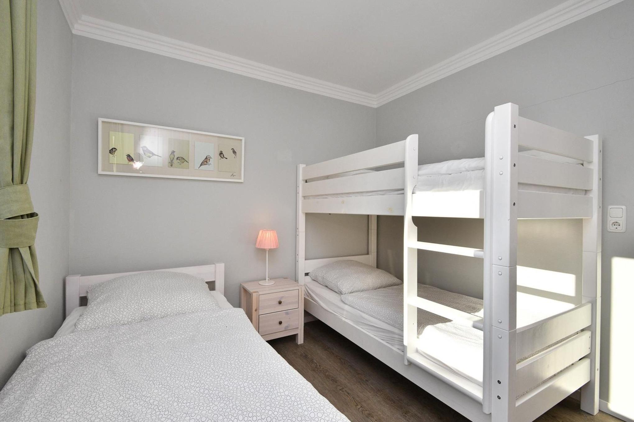 Schlafzimmer 3: 1 Etagenbett (je 90x200 cm), 1 Einzelbett (90x200 cm), Kleiderschrank, Verdunkelung (Außenjalousien)