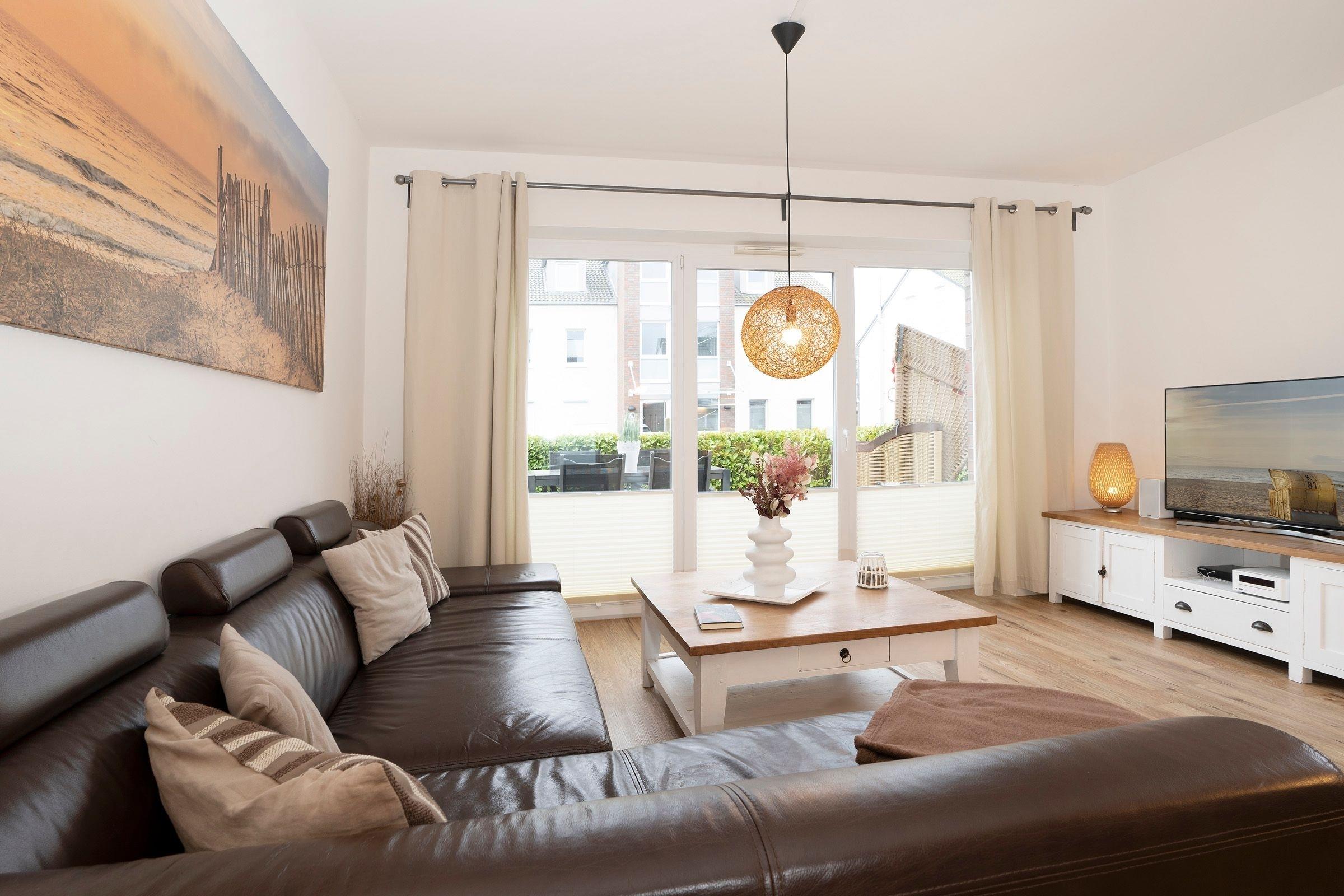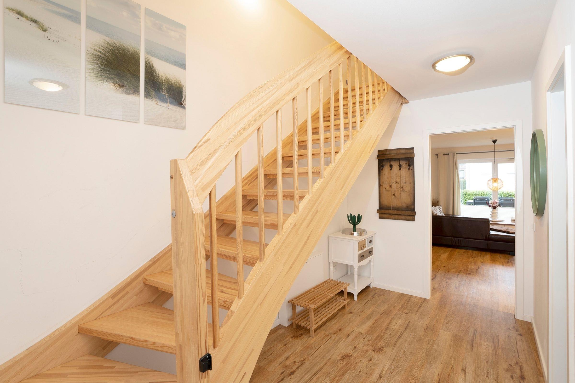 Die Doppelhaushälfte liegt in der 2. Reihe zur Waldstraße und bietet Ihnen im Erdgeschoss ein lichtdurchflutetes Wohnzimmer inklusive gemütlichem Essbereich und integrierter Küche mit Backofen, 4-Platten-Ceranfeld, Mikrowelle, Geschirrspüler, Kühlschrank, Kaffeemaschine, Toaster etc. Zur weiteren Ausstattung gehören Flachbild-TV/DVD-Player/Soundanlage (Mp3, CD, Radio - Iphone, Ipad, Smartphone geeignet), kostenloses WLAN. Genießen Sie Ihre Urlaubsstunden auf der großen Südterrasse mit Strandkorb. Ein geräumiger Flur mit Garderobe, ein Gäste-WC sowie ein Abstellraum mit Waschmaschine und Trockner. Im Obergeschoss erwartet Sie ein großzügiges Schlafzimmer mit Doppelbett (ca. 180x200 cm) und TV sowie ein Kinderzimmer mit 2 Einzelbetten (Bett 1: 140x200cm, Bett 2: 90x200cm). Das Duschbad mit WC ist mit einer ebenerdigen Dusche ausgestattet. Hochstuhl, Kinderreisebettchen sowie Bollerwagen runden das Angebot ab.