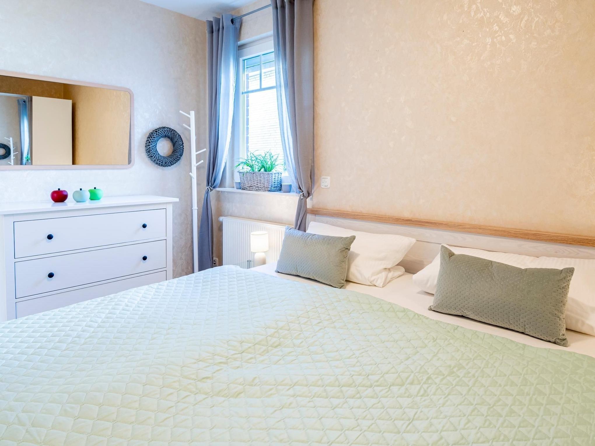 Schlafzimmer: 1 Doppelbett (2x 90x200 cm), Verdunkelung (Außenrollo).