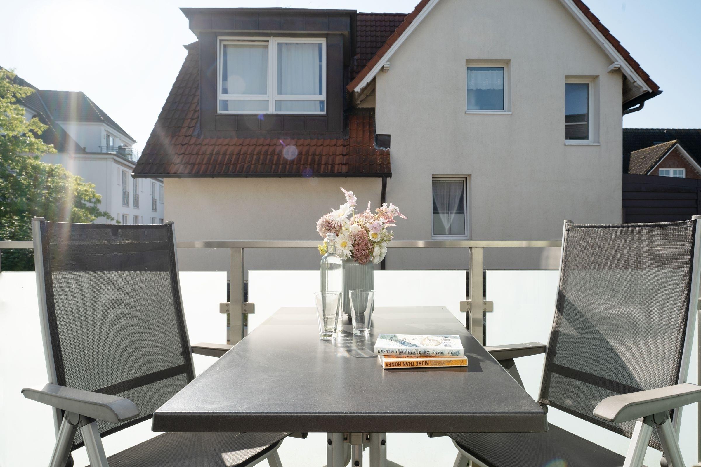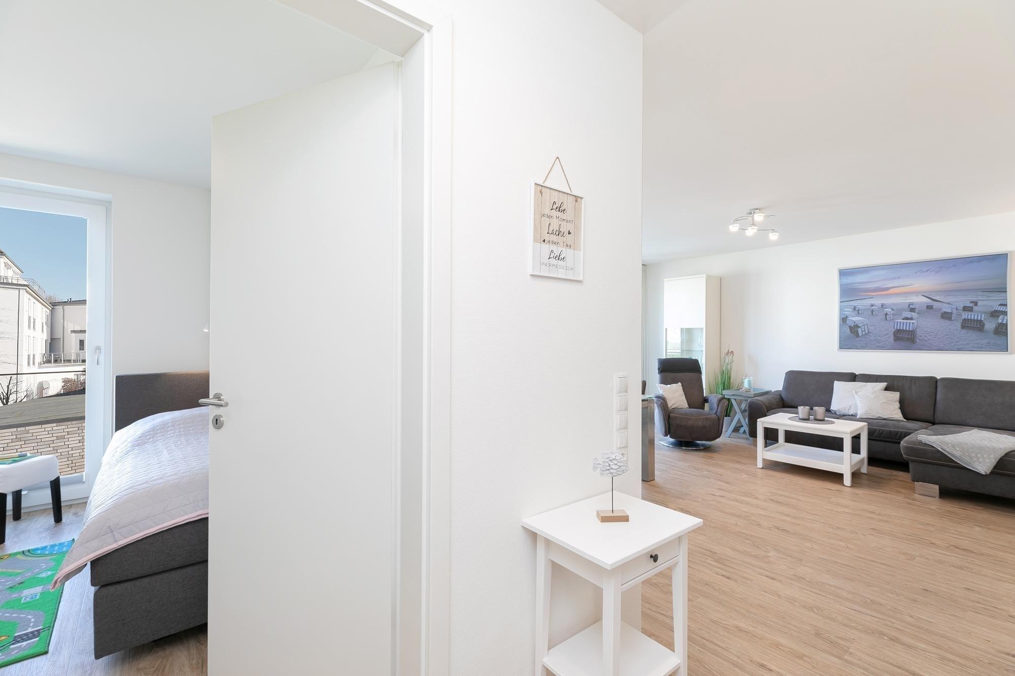 Moderne Ferienwohnung Leuchtfeuer mit Balkon und Sauna in Kellenhusen, nur wenige Schritte vom Strand entfernt.