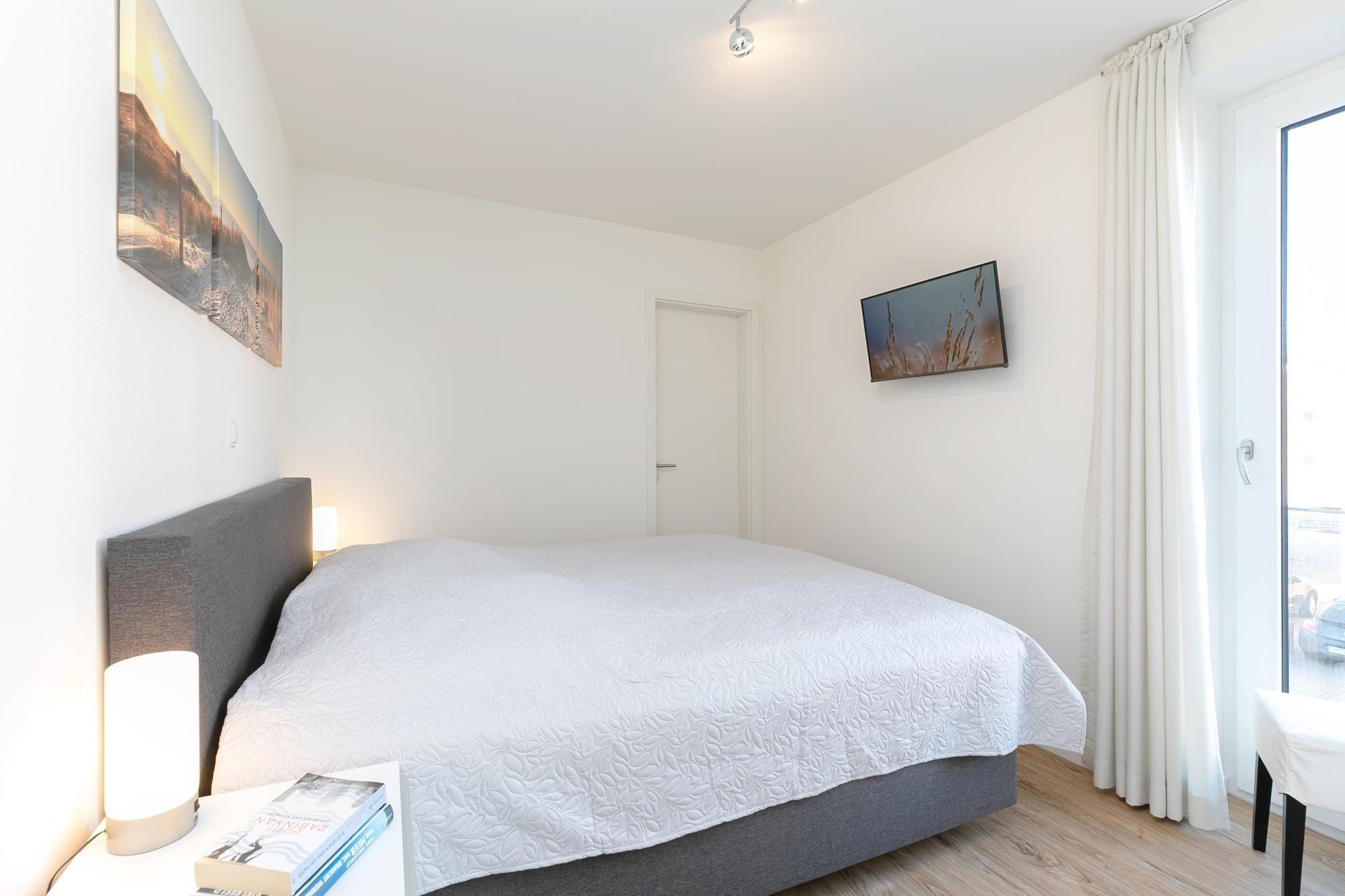 Schlafzimmer 1: 1 Boxspring-Doppelbett (180x200 cm), Verdunkelung (Plissee)