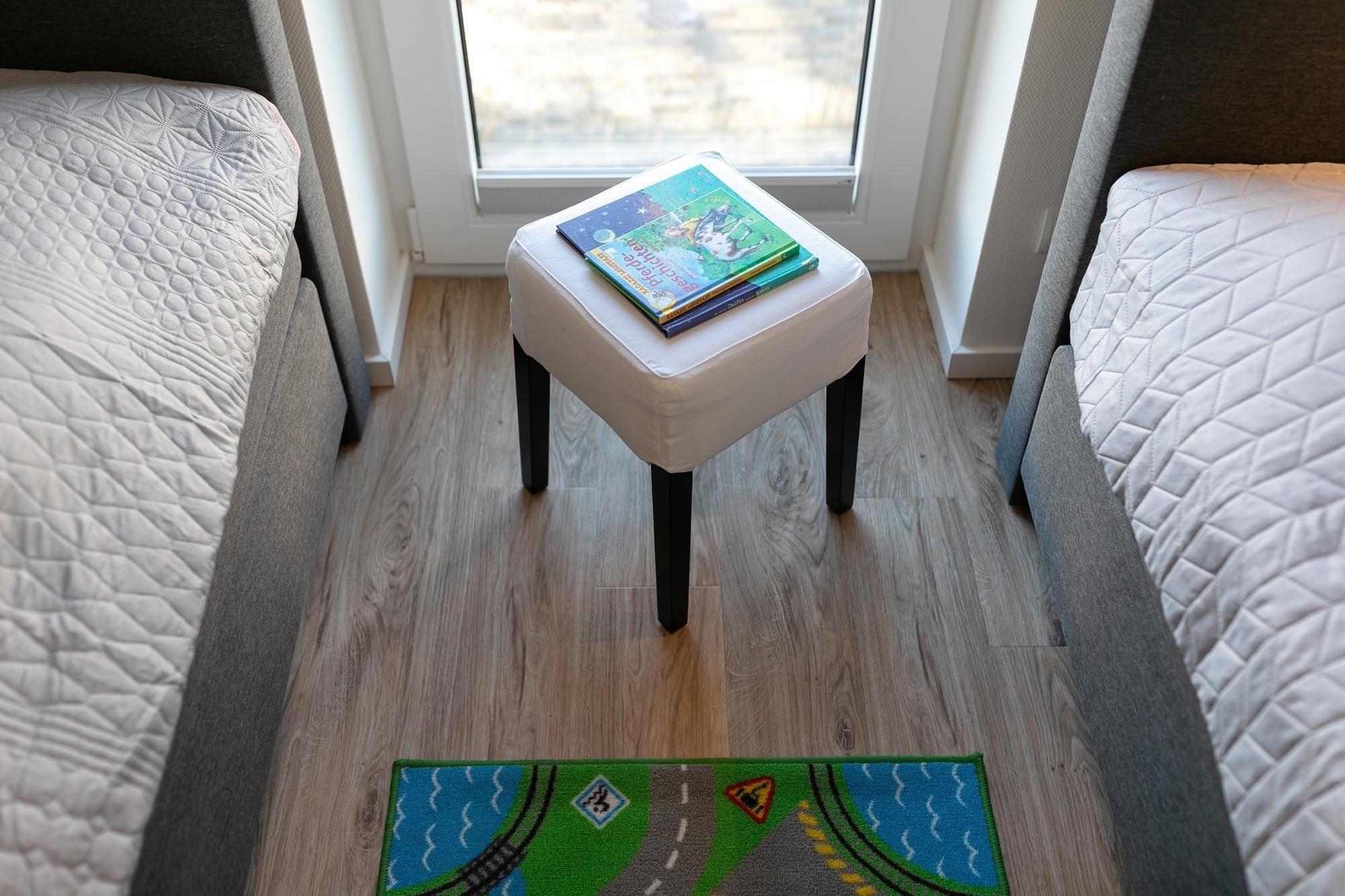 Kinder-Reisebettchen, Hochstuhl und Bollerwagen gehören zur Wohnung dazu.