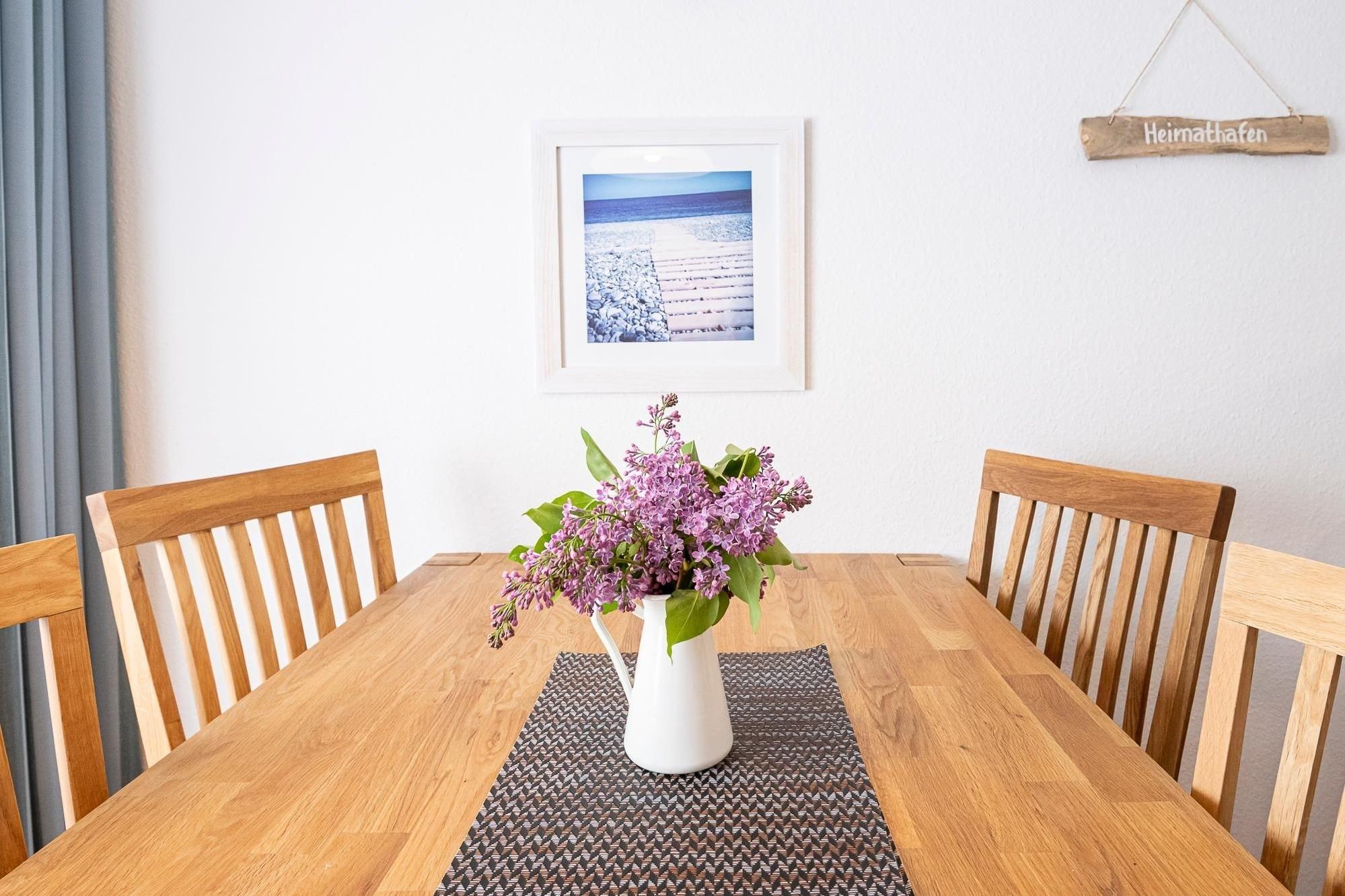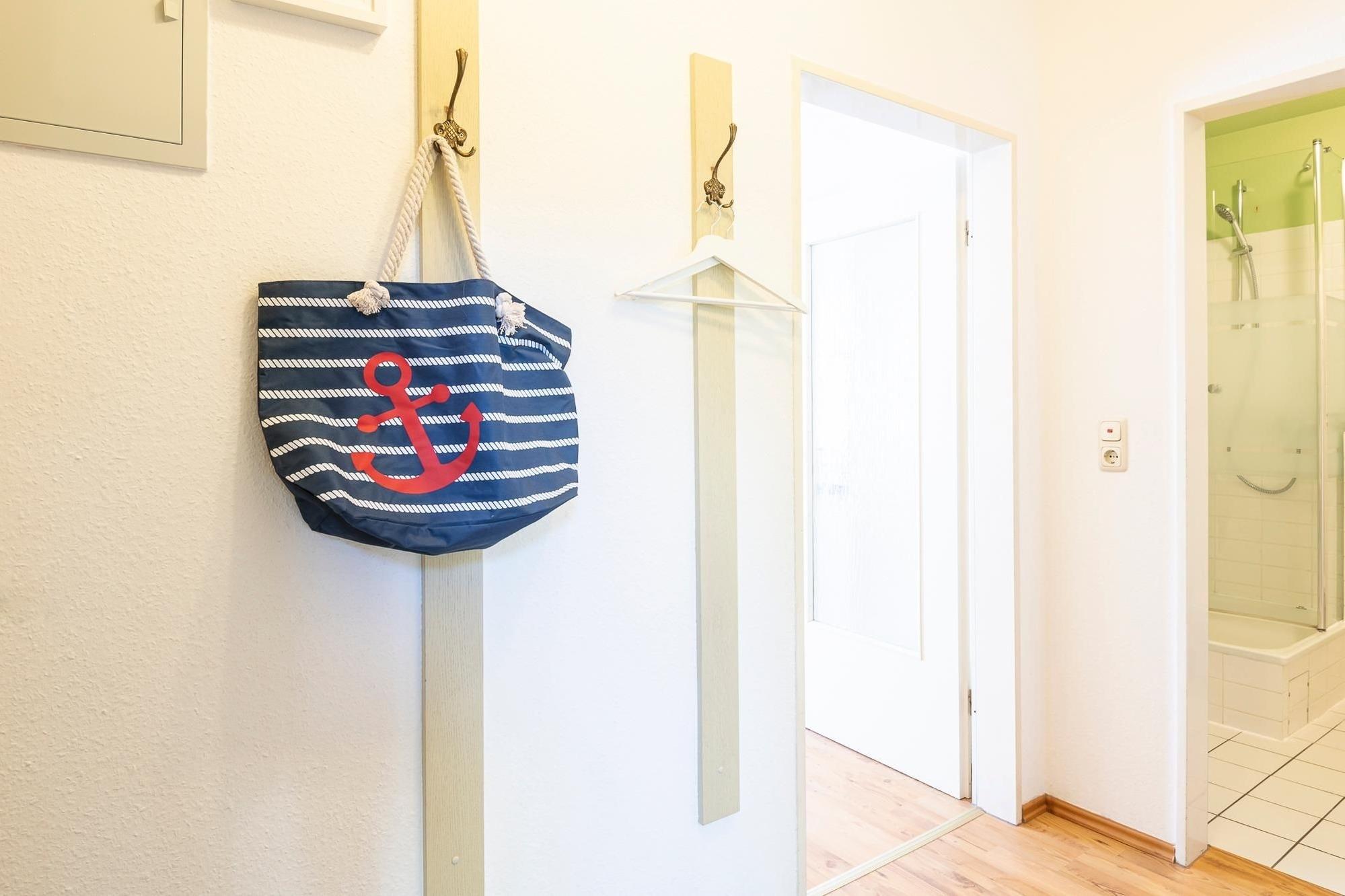 Moderne Ferienwohnung Auster mit Balkon nahe Strand in Kellenhusen, ideal für Familien und Haustierfreunde.