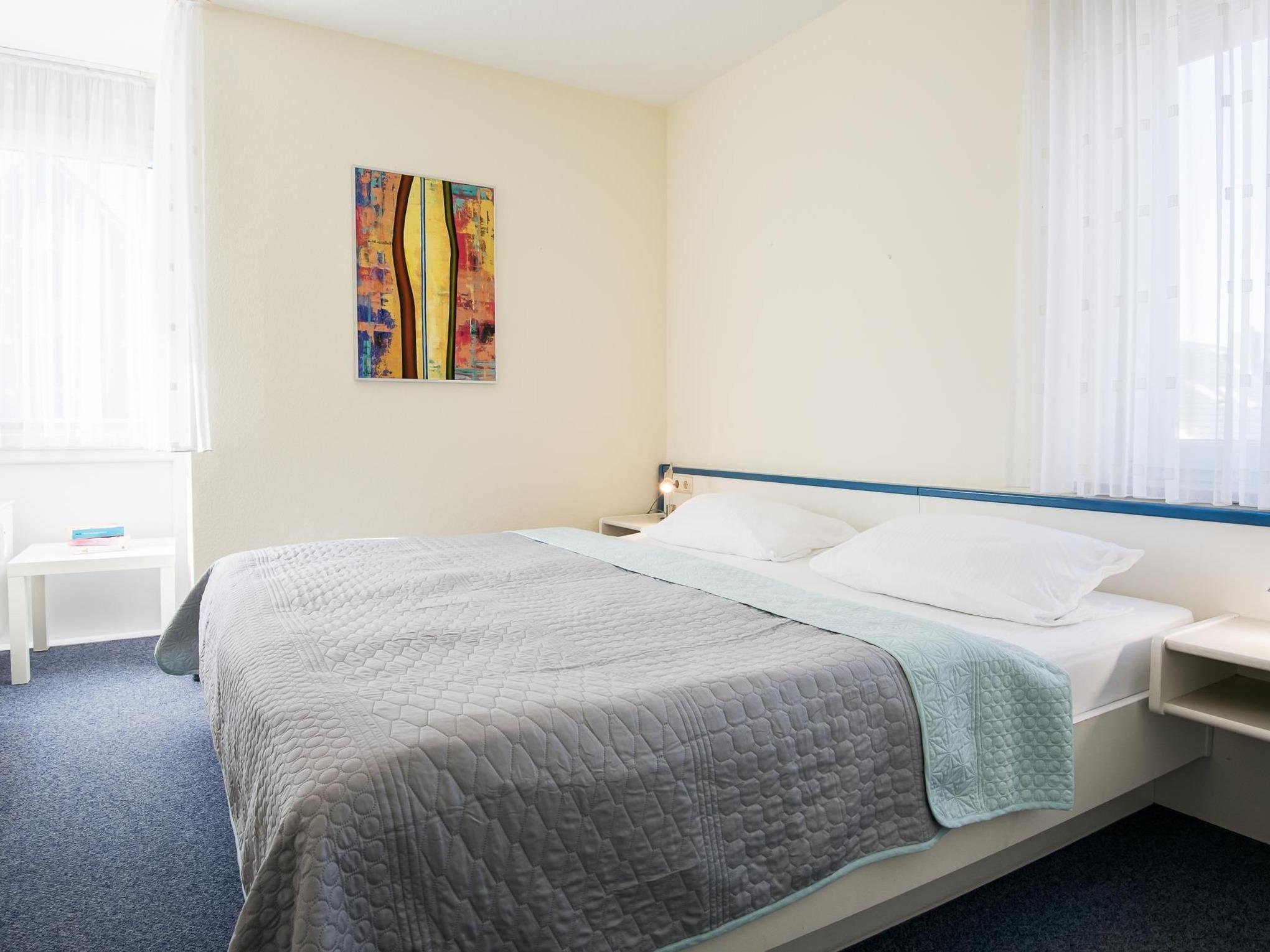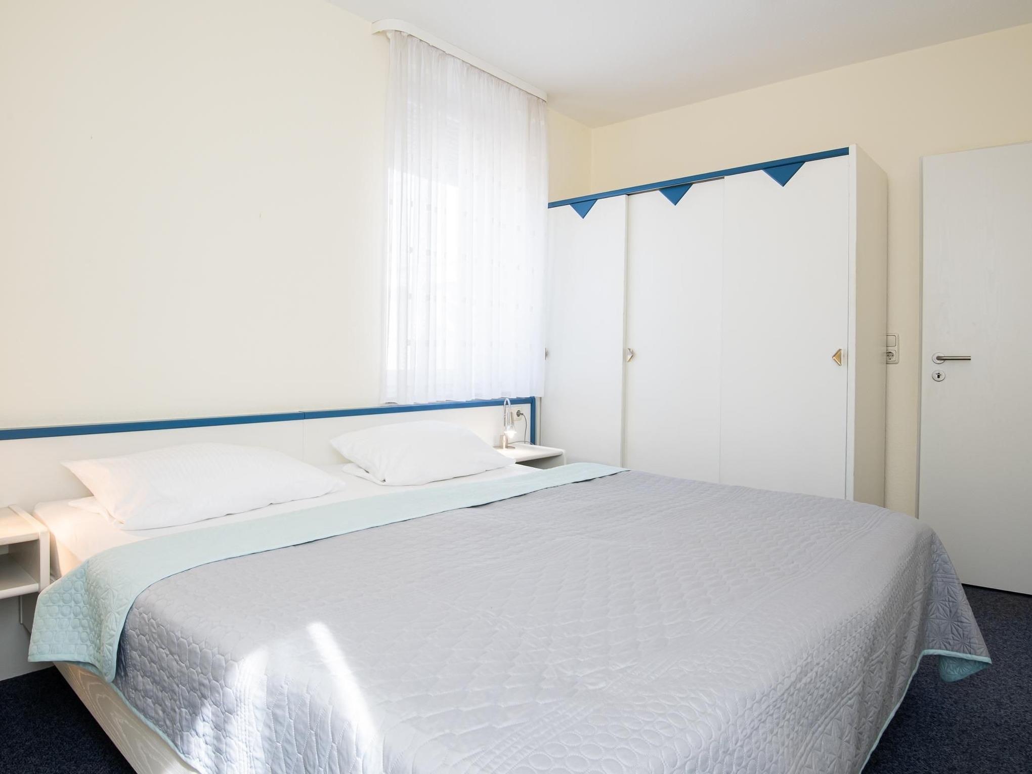 Schlafzimmer: 1 Doppelbett (ca. 180x200 cm), Kleiderschrank, Verdunkelungsmöglichkeit